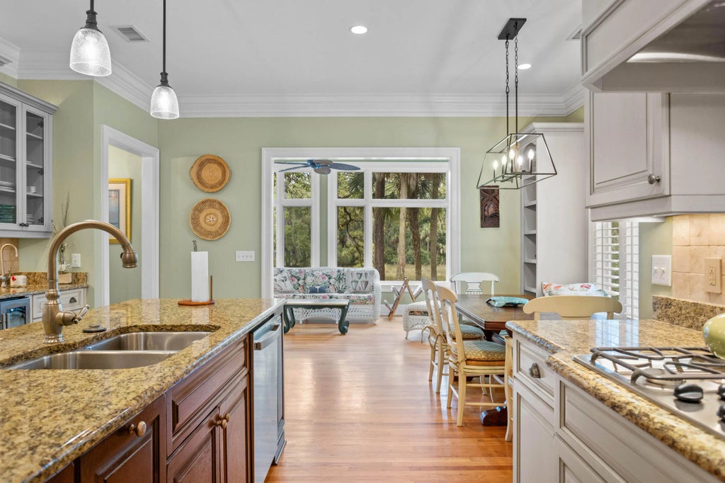 0.50 With many custom, high-end features and quality finishes throughout, this marsh front home offers a thoughtful floor plan where each space flows cohesively into the next, presenting a cozy living experience, while also allowing its residents the privacy to each of their suites. The four-bedroom, four-bath home is located on a .55-acre, corner lot with beautiful landscaping and a ''historical Charleston'' inspired brick front entry. Looking out over the tidal marsh, the great room has custom Pella windows, access to the deck and a fireplace with custom a mantle and built-ins. The spacious granite and stainless kitchen features, a sizable center island, bar area with second sink and beverage refrigerator, a pantry and breakfast room. Convenient to the kitchen, the dining room haswainscoting and a tray ceiling. Adjacent to the breakfast room, the window lined sunroom is the perfect place to enjoy the tranquil marsh views and the large rear deck offers plenty of space for entertaining. The primary bedroom suite offers a sitting room with marsh views with deck access, a large walk-in closet, Jacuzzi tub, double vanity and custom glass and tile shower. Each guest bedroom has an ensuite bathroom. The fourth bedroom is privately tucked over the garage and currently styled as a family room. There are hardwood floors throughout. Furnishings negotiable. Additional highlights include, mid-island location convenient to all amenities, Hardie Plank overlapping shingle exterior, custom crown moldings, two Rinnai water heaters, security system and laundry room. Seabrook Island residents enjoy an unparalleled lifestyle in a tranquil, private, oceanfront community that blends natural beauty with world-class amenities and top-tier security. Here, you'll experience a life filled with abundant social, recreational, and sporting opportunities. Among the many highlights are two renowned championship golf courses: Ocean Winds, designed by Willard Byrd, and Crooked Oaks, created by Robert Trent Jones, Sr. The island also boasts a state-of-the-art tennis center, pickleball courts, a full-service equestrian center, a comprehensive fitness and aquatics complex, and miles of pristine, unspoiled beaches. For dining, residents can indulge in a variety of seasonal indoor and outdoor restaurants, perfect for everything from casual lunches to elegant private events of any size. Conveniently located on Seabrook Island are both Freshfields Village and Bohicket Marina. Nestled between Seabrook and Kiawah Islands, Freshfields Village is a charming hub for upscale shopping, casual and fine dining, and family-friendly outdoor events. Bohicket Marina, a full-service facility, offers 200 wet slips, 114 dry storage slips, a delightful market, and an array of delightful restaurants and boutique shops. Whether you're looking to unwind or stay active, Seabrook Island offers the perfect blend of serenity, luxury, and adventure. Contribution to capital within P.U.D. upon the initial sale and resale is 1/2 of 1% of the sale price. Buyer responsible for a $250 transfer fee at closing. Purchase also requires membership to the Seabrook Island Club.