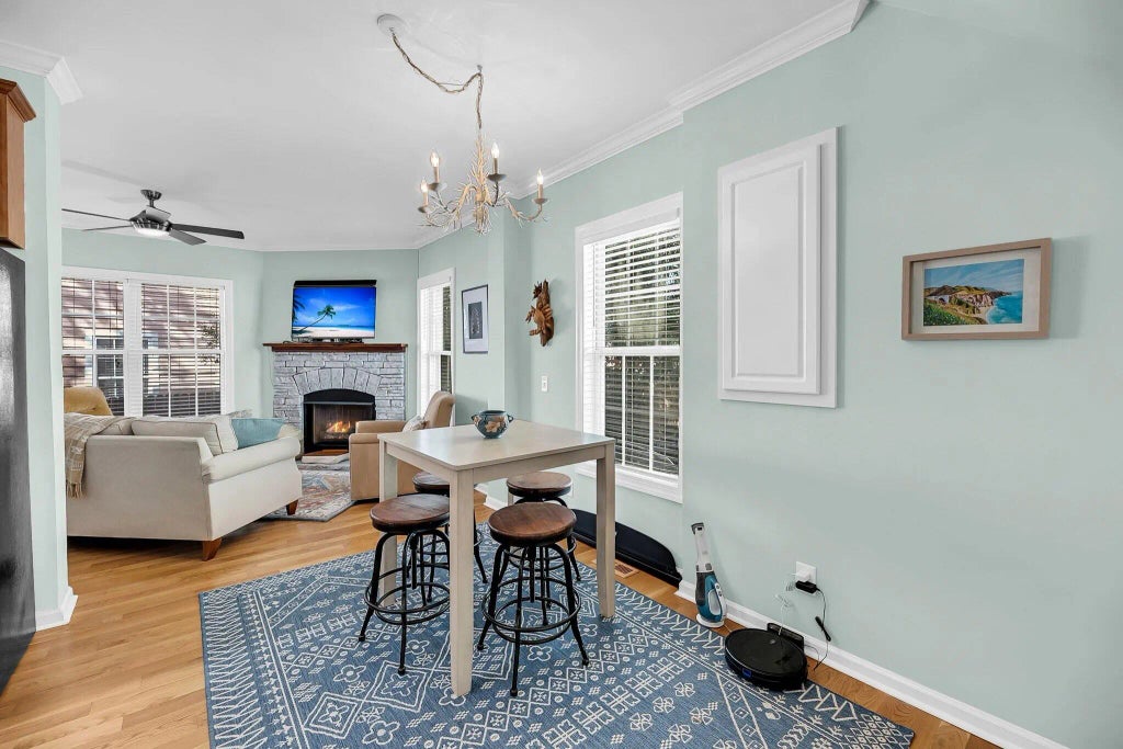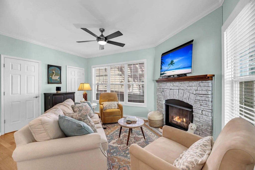 1355 Located in heart of historic downtown! A charming 2-bedroom, 2 1/2-bathroom graciously sized unit! No worries about parking this unit comes with an oversized one car garage and off-street parking is available. Well-designed layout featuring spacious bedrooms and living room with a cozy gas fireplace. The eat-in kitchen is ideal for casual dining, and the spacious foyer welcomes you in with a convenient half bath on the main floor. An abundance of windows fills the home with natural light, creating a bright, airy feel throughout. Upstairs, the primary bedroom has two walk-in closets and spa like tiled shower and double vanity. The second bedroom offers ample space for a sitting area and a walk-in closet, and the second bathroom is just outside the door. The closets have custom shelvingA second-floor laundry room adds thoughtful touches for everyday ease. Enjoy hardwood floors throughout (except the carpeted staircase) and tiled bathrooms. A new HVAC system was installed in 2024 for peace of mind. the HOA covers exterior maintenance, flood insurance, and termite bond. Walk to shopping and restaurants on King Street, Hampton Park, Breweries and more! Don't miss this opportunity to own a low-maintenance, townhome in one of Charleston's most desirable areas, schedule your showing today!