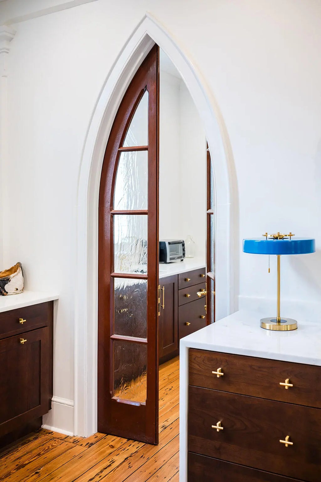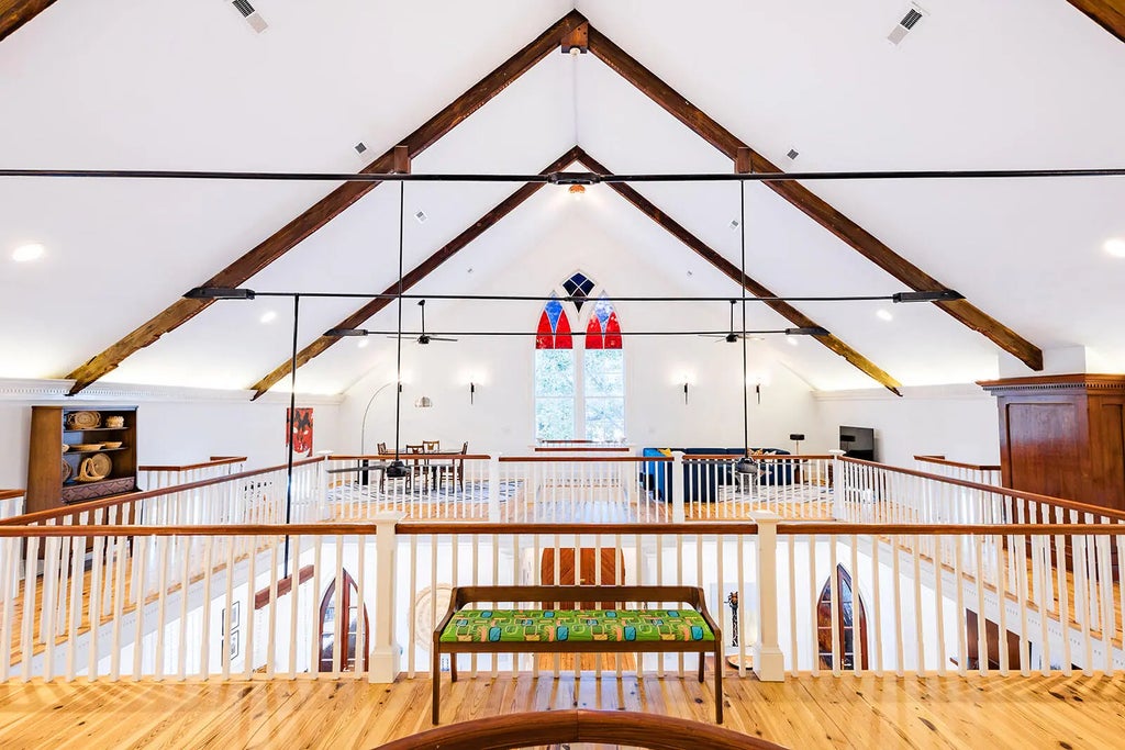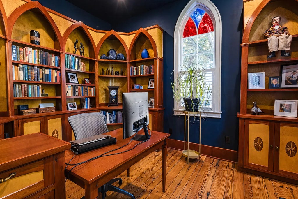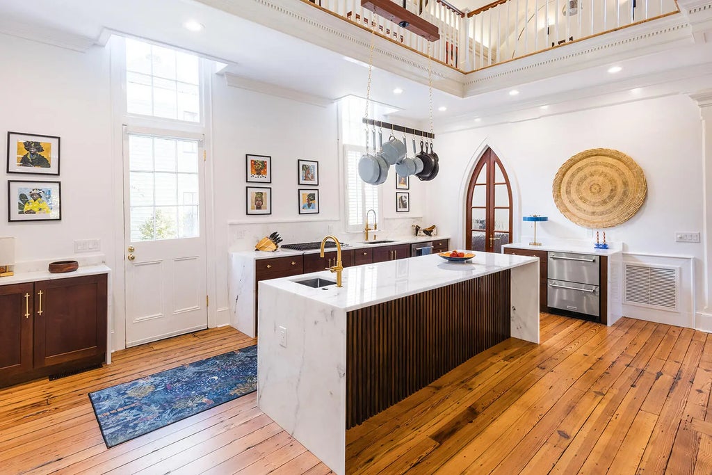 0.13 Price Reduction -Historic Elegant Home Meets Modern Luxury with Income Potential in Downtown Charleston. Step into timeless Charleston charm. This fully renovated 1872 landmark property has been transformed into a one-of-a-kind home offering unmatched architectural character in the heart of Downtown's Harleston Village Historic District. Just blocks from MUSC, College of Charleston, Ashley Hall, King Street, and Colonial Lake, this residence blends historic elegance with thoughtful, high-end renovations.Offering 5 bedrooms, 4.5 bathrooms, and 4458 square feet, the home showcases first-floor Primary bedroom suite for added convenience featuring a luxurious en-suite bathroom, private water closet, dual sinks, and walk in shower and large walk-in closet, soaring 11-foot up to 35 foot ceilings, gas wood-burning livingroom fireplace, refinished heart pine floors and coveted off-street parking for 4 vehicles and room for 1 car garage and small Pool and outdoor BBQ terrace patio area. The centerpiece of this home is a spectacular reimagined open floor plan kitchen and living room that combines form and functionality. The kitchen is well appointed with gorgeous marble countertops, solid cherry cabinetry, stainless-steel sinks, solid brass fixtures, 6 burner downdraft gas cooktop, dishwasher, oven, microwave drawer, and under-counter drawer refrigerators. Craftsmanship & character abound this completely redesigned home with its handcrafted curved mahogany custom arched doors, 2nd floor gallery areas, choir loft, soaring beamed ceilings, and impressive stain glass windows; all echoing the craftsmanship of the past while blending seamlessly with modern finishes. Its impressive, oversized windows with hand poured glass panes, provide an abundance of natural light throughout. Immediately adjacent to the kitchen is a large butler's pantry/back kitchen with custom cherry cabinets, bar sink, ice maker, wine fridge, and full-size refrigerator to accommodate your culinary experience when hosting guest and events. For the remote worker, the property features an office/study featuring custom cherry and birds eye maple cabinetry. Thoughtful upgrades span the home with newer HVAC updated electrical, mechanical, plumbing, and appliances (2024), fresh interior and exterior paint, custom molding, trim, and custom lighting throughout. Other features include Eero WIFI system and top of the line Sonos surround sound throughout the home for enjoying your favorite music. Adding to its appeal is a short-term 350 SF rental unit with private entrance, ideal for generating income or hosting extended guests or re-open to seamlessly expand the main house square footage. With high ceilings, large windows, and the same architectural character carried throughout. The short-term rental suite offers its own living/dining area, fully loaded kitchen, spacious bedroom, and luxury bath with vanity, washer and dryer perfect for guests, an au pair, or as a proven income stream. This property is a rare opportunity with historic charm, modern luxury, open floor plan investment potential, and a location that defines Charleston living.