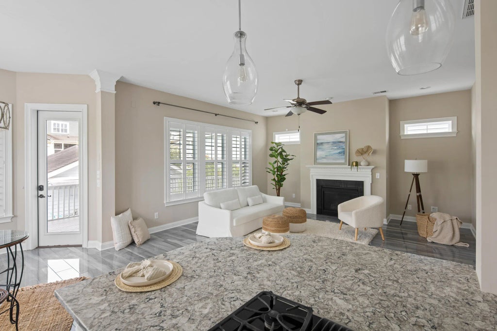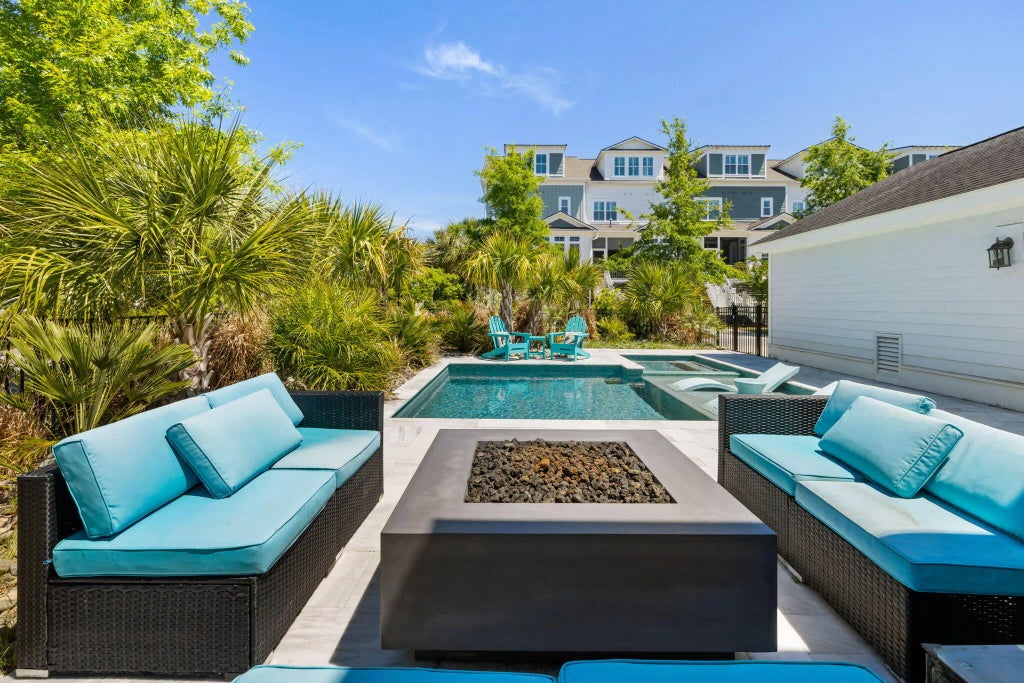 0.16 Enjoy a gorgeous heated inground pool with lounge seating, a spa, gas firepit, a fully equipped outdoor kitchen with highend appliances including grill, icemaker & fridge and an outdoor shower - all of this set in lush landscaping complete with palm trees.Freshly painted through out inside,downstairs porcelain floors, a large kitchen with open floorplan to living & dining room. Kitchen features a large center island, a gas range, upgraded soft close cabinets, quartz countertops with tile backsplash and lots of storage. Upstairs offers 3 bedrooms inculding the primary all with coastal hardwood floors. Custom plantation shutters through-out &custom designed closets. Enjoy Lowcountry breezes from your front porch or the very large screened-in backk porch off the kitchen and living area. Two car detached garage with lots of storage in the attic. Just a 4 minute bike ride to Daniel Island Elementary School and an 11 minute bike ride to Bishop England. Daniel Island Smythe Park, Hester Park, The Waterfront Park, walking trails, restaurants, shops, and more just a short walk away or an 8 m inute drive. Be sure to not miss this great home. All information deemed to be true but m ay not be exact, buyer to verify.