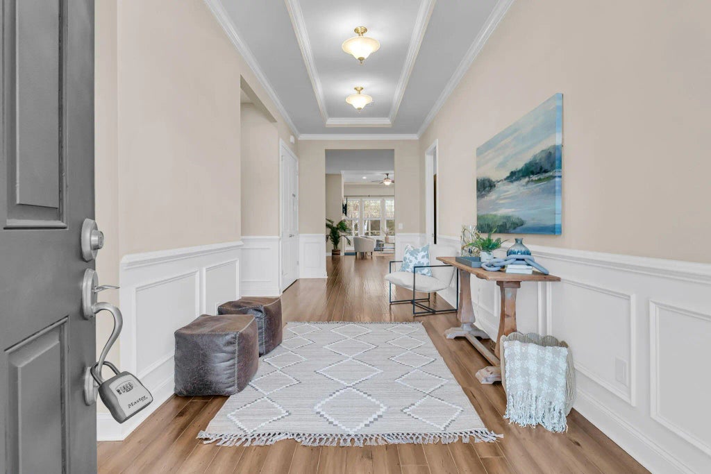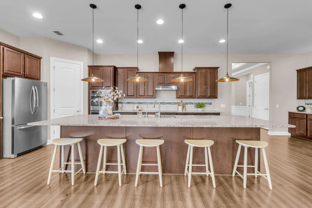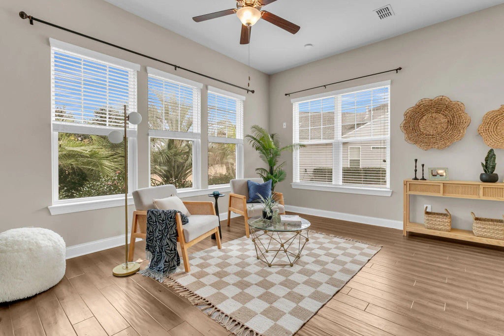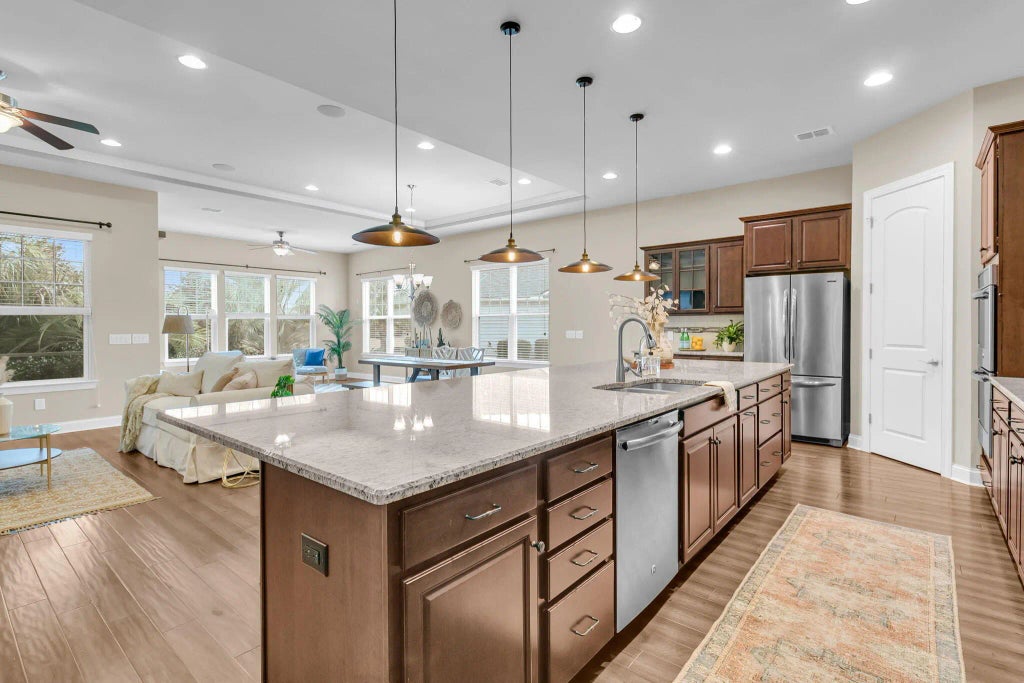0.30 Live the Resort Life Every Day in The Four Seasons at Cane Bay!Welcome to your next chapter in this beautifully designed, single-story home nestled in one of the Lowcountry's premier 55+ resort communities. The Four Seasons at Cane Bay offers unmatched amenities including a 24,000 sq. ft. clubhouse, three sparkling pools, state-of-the-art fitness center, lighted tennis and pickleball courts, a 300-acre lake for fishing and kayaking, an outdoor kitchen, amphitheater, ballroom, pool table, and more. With a full-time lifestyle director and a calendar full of daily activities, retirement here is anything but boring!Inside the Home:This thoughtfully laid-out and MOVE IN READY residence offers 2 spacious bedrooms, each with its own private bath plus a third room that can be a bedroom oroffice (no closet). The secondary suite is enhanced with a top-of-the-line $21,000 Safe Step hybrid tub/shower for ultimate comfort and accessibility. The primary suite is privately situated at the back of the home and features a tray ceiling, abundant natural light, a step-in shower, dual vanities, and a generous walk-in closet with pull-down attic access for extra storage. The inviting foyer leads to both the 1st bedroom and also to the second bedroom/office with French doors. You'll also find a convenient half bath. The foyer ultimately opens into an entertainer's dream -a massive kitchen with a 14'x5' island, butler's pantry/wet bar area, and an expansive great room with dining and sunroom-style living space. This is all accented by warm wood flooring. The seamless flow continues out to a screened porch and patio, surrounded by lush landscaping and mature trees, all maintained by an irrigation system and buffered by a private rear berm. Bonus Features: Oversized 0.30-acre lot -one of the largest in the community 3rd car garage - perfect for a golf cart, hobby space, workout area, or extra storage Whole-home Generac generator with transferable warranty Culligan water filtration system Washer and dryer convey Main garage includes a wet sink Hall closet is pre-framed for future loft addition Location Perks: Conveniently located near top-rated hospitals, shopping, dining, and just a short drive to Charleston's historic downtown and beautiful beaches, this home offers the perfect blend of peaceful retreat and accessible adventure. Don't miss your chance to own a rare floor plan that's no longer being built on one of the most desirable lots in the neighborhood. Retire in style and comfort while staying as active as you like! This home has been meticulously maintained and is better than new!