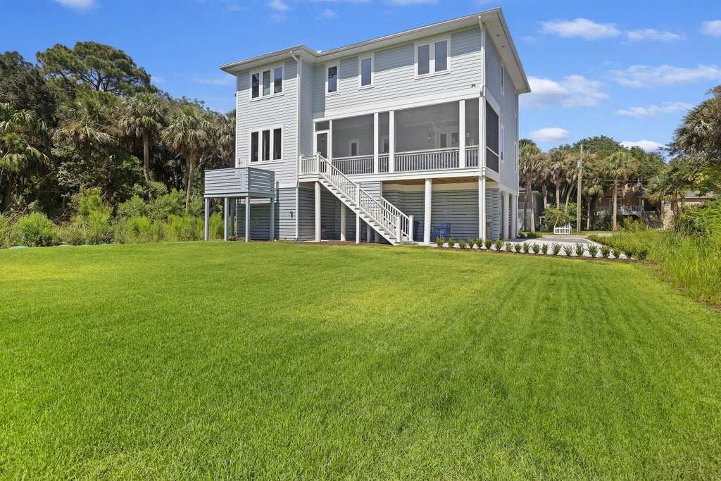 0.30 Welcome to 912 Cheehaw, your dream coastal retreat! Nestled in a prime location in the heart of the island, this stunning custom-built home is just half a block from the pristine Atlantic Ocean. Completed in 2023, this architectural masterpiece boasts high-end finishes throughout, including a La Cornue gas and electric range, elegant custom cabinets, and exquisite Cambria countertops with a stylish backsplash. Enjoy the airy ambiance created by soaring 10-foot ceilings and beautiful chandeliers adorning every room. The family room features a unique tiled ceiling and built-in bookcases, perfect for showcasing your favorite reads. Step outside to relax on the charming screened-in porch or explore the expansive backyard, which is ideal for adding a pool--electrical connections are alreadyplace! Additional highlights include an ice maker, luxurious master bath with a spacious shower and soaking tub, a stone walkway, a lawn irrigation system, whole house Generac generator, tankless water heater, an elevator shaft and durable 8 ½ inch oak plank wood flooring throughout. 912 Cheehaw is the ultimate combination of luxury and location. Don't miss your chance to make this exquisite property your own! The parrot sconces, downstairs bathroom mirror and draperies/curtains do not convey. House has never been rented. Owner occupied.