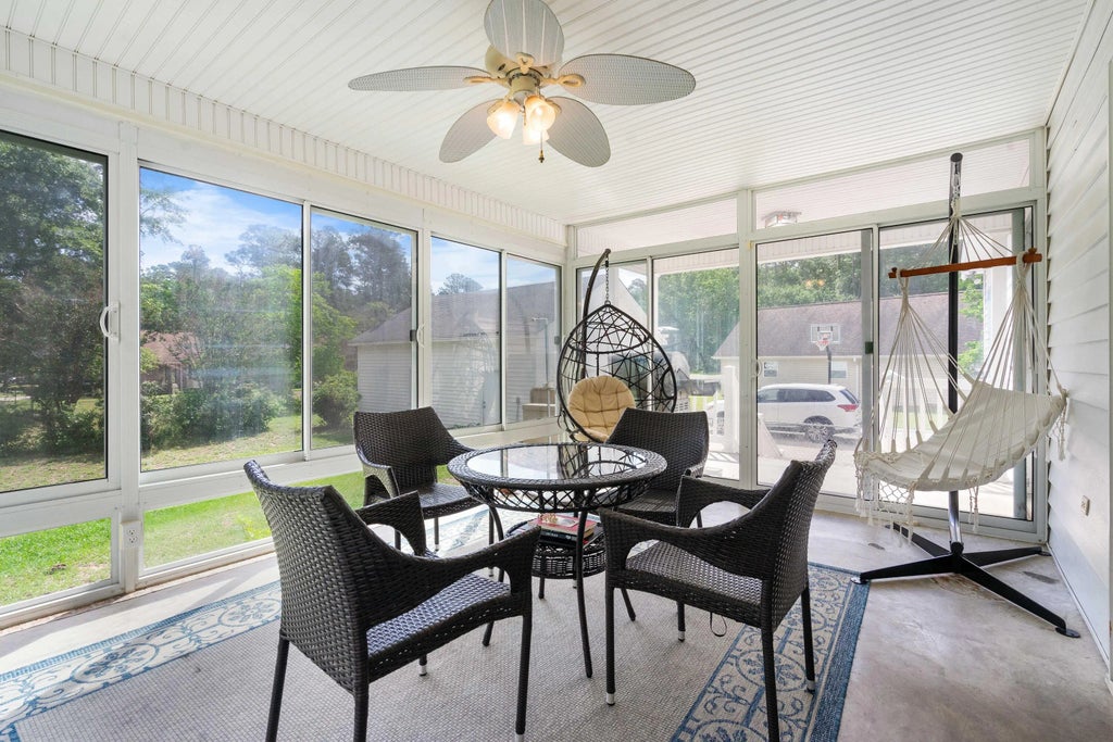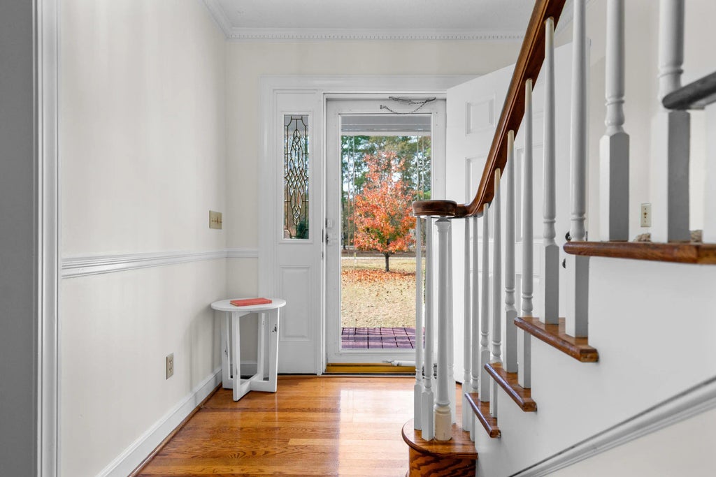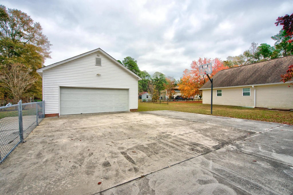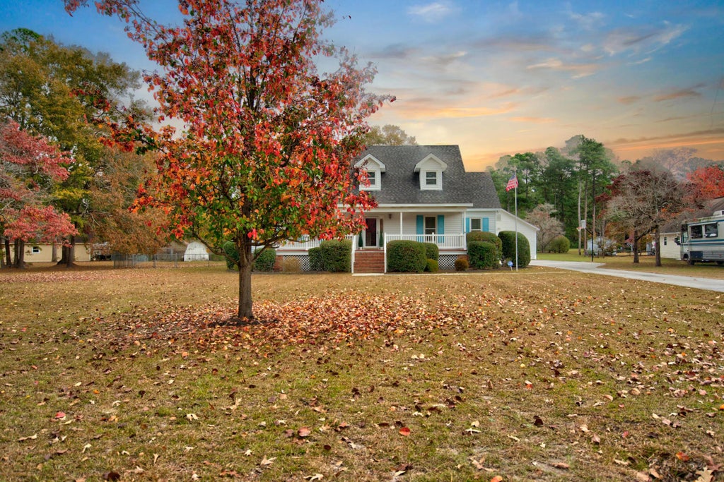 0.76 If you are looking for elbow room, you've found it at 20 Thunder Circle in Santee! Situated on a spacious .76 acre lot, this freshly painted 3BR and 2 1/2BA home features new carpet and new blinds throughout. Enjoy a welcoming grand front porch that invites you to sit and relax. Inside, you'll find a formal entry, dining room, and family room, with gas fireplace. The kitchen features plenty of counter and cabinet space plus a bright eat-in dining area with a bay window. A Sun Porch over looks the large fenced back yard and oversized 2 car detached garage. The primary suite is downstairs with dual vanities in the bath and walk-in closet. Upstairs includes two spacious bedrooms with tons of closest space, a full bath with dual vanities, a linen closet and a cozy nook in the hall perfect for reading, homework, or crafting. The home is convenient to Santee National Golf Club, Santee State Park, and Lake Marion.