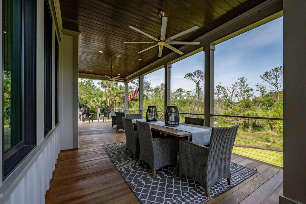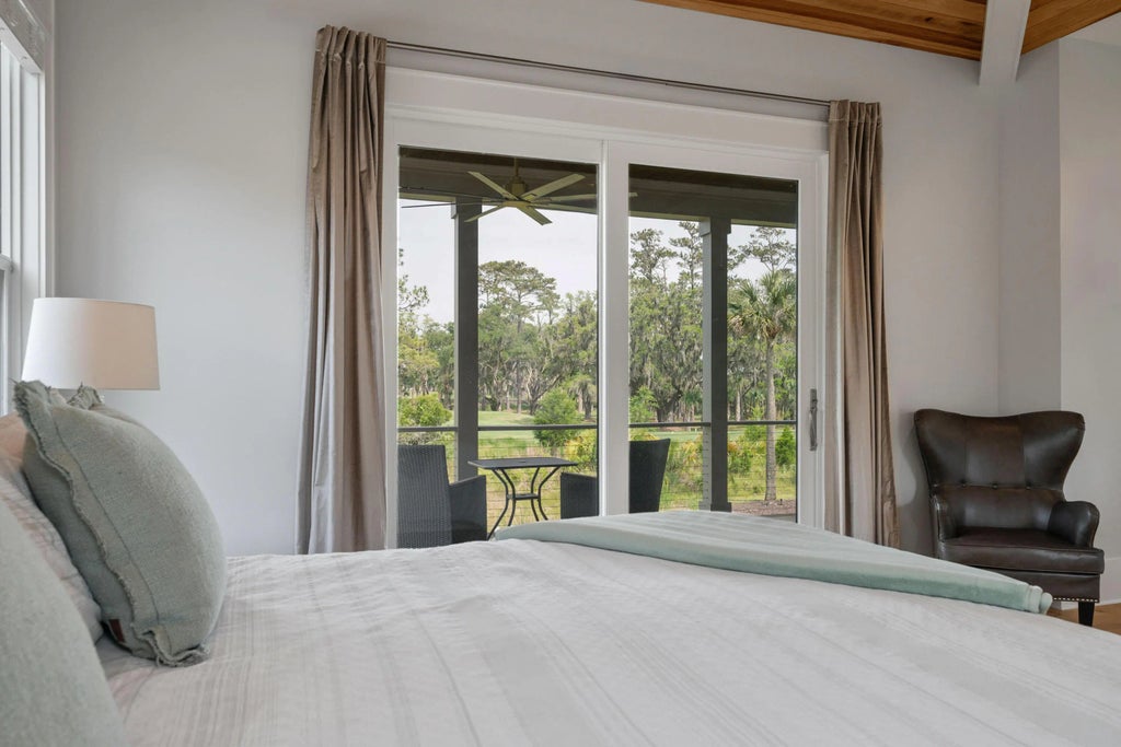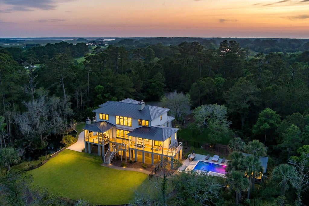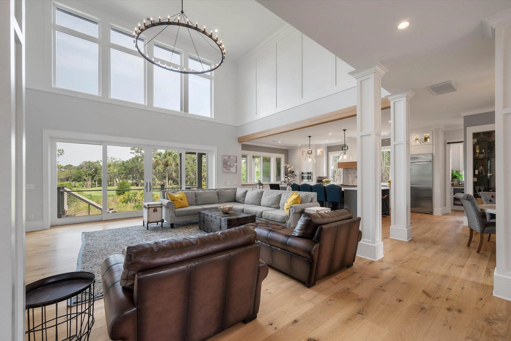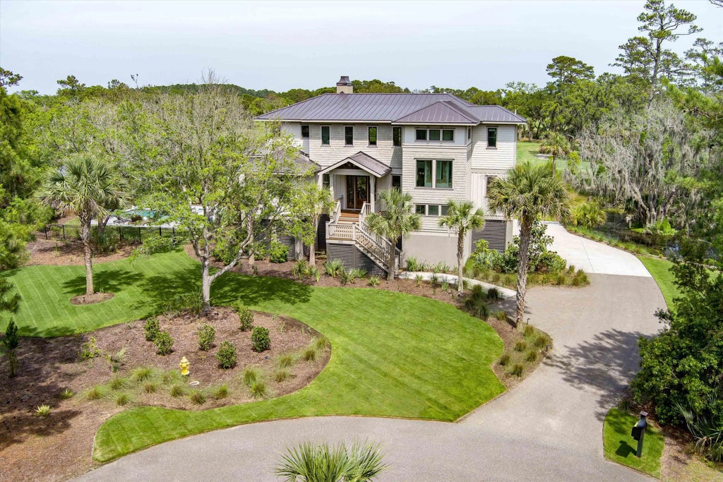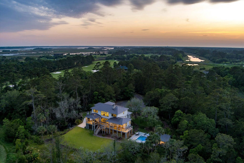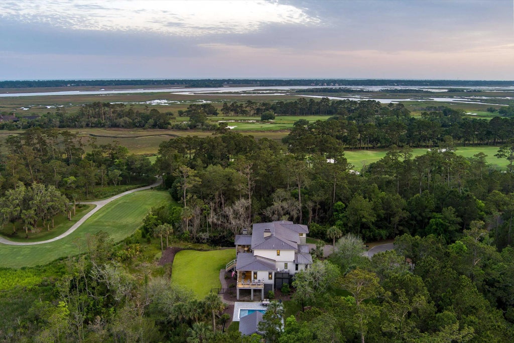 1.03 Set along the picturesque 11th hole of a Rees Jones Championship Golf Course, this stunning 4,055 sq ft home is located in the exclusive gated community of Briar's Creek--a 900-acre sanctuary featuring nature trails, a 75-acre stocked freshwater lake, and an Audubon International bird sanctuary.Designed by Jodi Crosby and built by Scott Koerber, this 4-bedroom, 4.5-bath residence is thoughtfully designed for luxury and functionality. Set on a quiet cul-de-sac, the impressive entry boasts an 11+ ft foyer ceiling leading to a soaring two-story family room with 20+ ft ceilings and a custom copper gas lantern. Enjoy seamless indoor-outdoor living through 16 ft sliding glass doors that open to approximately 1,000 sq ft of Garapa (Brazilian ash) decked porches with cable railings and anoutdoor gas fireplace. Inside, high-end finishes abound including 8" European cut white oak hardwood floors, high-end fixtures, and impact windows and doors. The gourmet kitchen is outfitted with a 48" Monogram oven and refrigerator, Monogram microwave, and a striking 14 ft quartz island. Additional highlights include a custom built-in wine bar with glass doors, a true home office with golf course views, and dual primary suites on both levels, each with walk-in closets. Perfect for entertaining, the saltwater gunite pool features a sun deck, in-pool stools at the cabana ledge, deck jets, and lighting. Enjoy 325 sq ft of covered poolside space complete with a full outdoor kitchen, built-in grill, beverage cooler, sink, and stainless steel cabinetry. A wraparound deck offers relaxing views of the pool and the pristine golf course beyond. Briar's Creek is ideally located with easy access to Johns Island Executive Airport, Freshfields Village, upcoming Sea Island Medical Pavilion and the prestigious Kiawah and Seabrook Islands. Plus, historic downtown Charleston is just a scenic 20-30 minute drive away, offering endless dining, shopping, and cultural experiences. Please note that the owner is a licensed real estate agent.