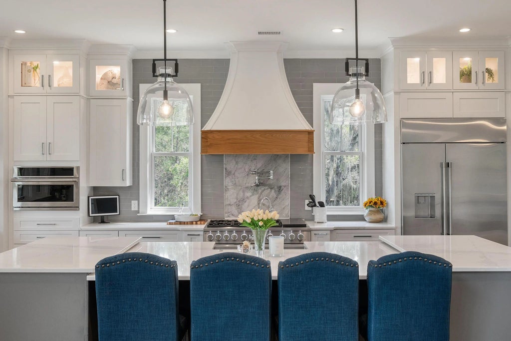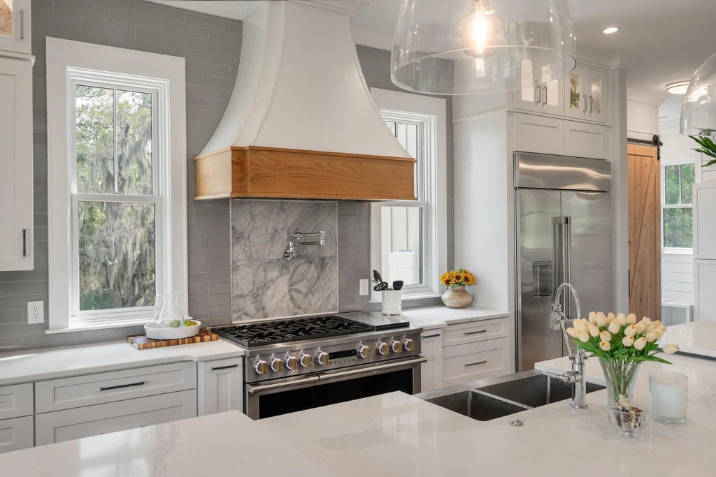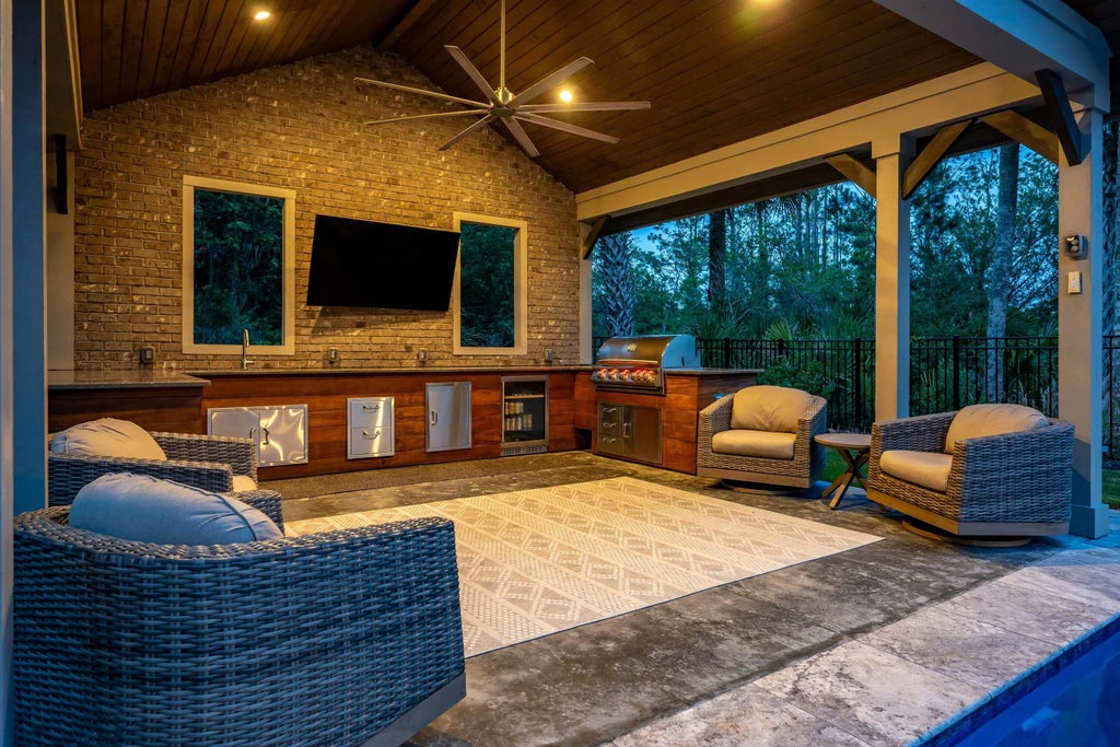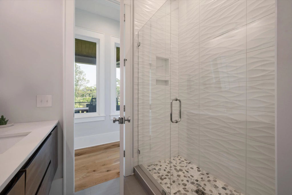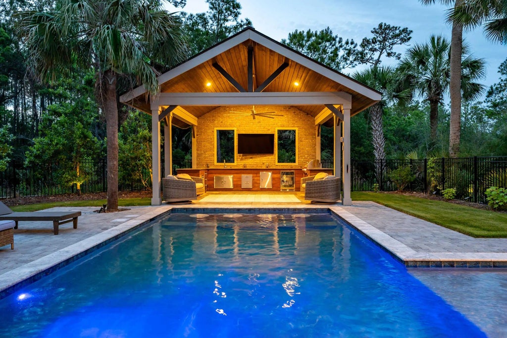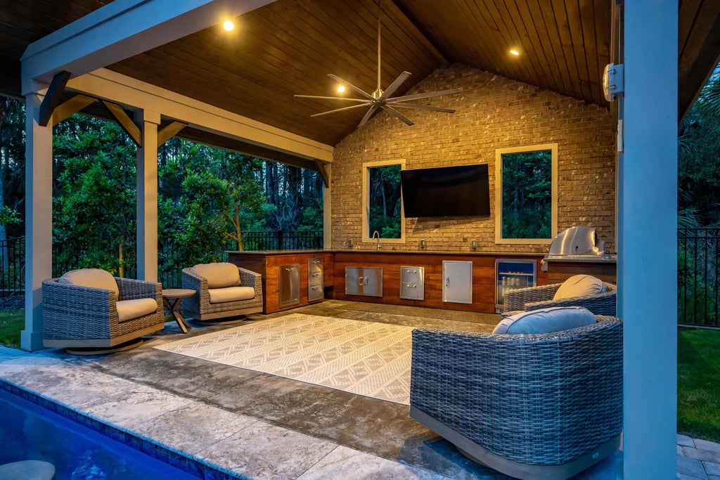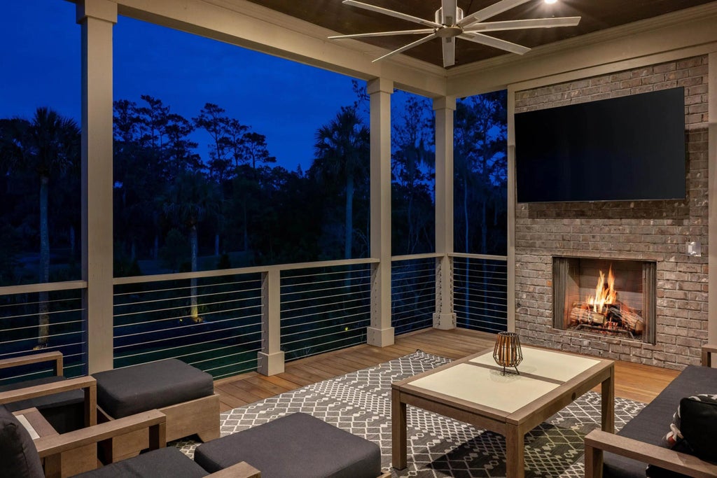 1.03 Set along the picturesque 11th hole of a Rees Jones Championship Golf Course, this stunning 4,055 sq ft home is located in the exclusive gated community of Briar's Creek--a 900-acre sanctuary featuring nature trails, a 75-acre stocked freshwater lake, and an Audubon International bird sanctuary.Designed by Jodi Crosby and built by Scott Koerber, this 4-bedroom, 4.5-bath residence is thoughtfully designed for luxury and functionality. Set on a quiet cul-de-sac, the impressive entry boasts an 11+ ft foyer ceiling leading to a soaring two-story family room with 20+ ft ceilings and a custom copper gas lantern. Enjoy seamless indoor-outdoor living through 16 ft sliding glass doors that open to approximately 1,000 sq ft of Garapa (Brazilian ash) decked porches with cable railings and anoutdoor gas fireplace. Inside, high-end finishes abound including 8" European cut white oak hardwood floors, high-end fixtures, and impact windows and doors. The gourmet kitchen is outfitted with a 48" Monogram oven and refrigerator, Monogram microwave, and a striking 14 ft quartz island. Additional highlights include a custom built-in wine bar with glass doors, a true home office with golf course views, and dual primary suites on both levels, each with walk-in closets. Perfect for entertaining, the saltwater gunite pool features a sun deck, in-pool stools at the cabana ledge, deck jets, and lighting. Enjoy 325 sq ft of covered poolside space complete with a full outdoor kitchen, built-in grill, beverage cooler, sink, and stainless steel cabinetry. A wraparound deck offers relaxing views of the pool and the pristine golf course beyond. Briar's Creek is ideally located with easy access to Johns Island Executive Airport, Freshfields Village, upcoming Sea Island Medical Pavilion and the prestigious Kiawah and Seabrook Islands. Plus, historic downtown Charleston is just a scenic 20-30 minute drive away, offering endless dining, shopping, and cultural experiences. Please note that the owner is a licensed real estate agent.