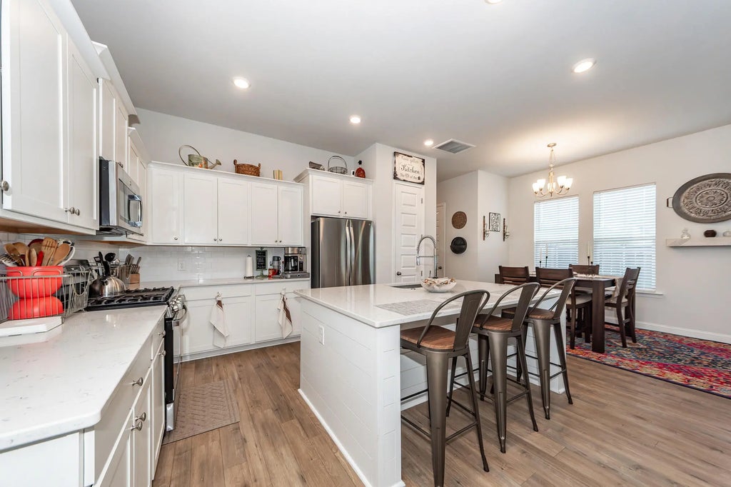 0.15 Pride of Ownership exudes throughout this beautiful corner-Lot home! Introducing this like-new, meticulously maintained 4-bdrm, 2.5-bath home with a large loft and stunning pond views from the front porch! Situated on a desirable corner lot, this home offers the perfect blend of comfort, style, and functionality. Step into the welcoming foyer that flows seamlessly into the dining area and a spacious open-concept kitchen, featuring quartz countertops, subway tile backsplash, a charming shiplap island, pantry, and stainless steel appliances--a true chef's delight! The first-floor owner's suite boasts an en suite bath complete with dual vanities and an over sized shower. The extended family room features elegant French doors and creates an ideal space for relaxing or entertaining. As you makeyour way upstairs via beautifully crafted wood tread stairs you're met by a HUGE loft areaperfect as a media room, office, playroom, or second living area. You'll also find three generously sized bedrooms and a full bath on this level. Step out back to your private oasisa spacious covered porch with two ceiling fans, a fenced-in backyard with two gates, and a detached 2-car garage. Whether you're enjoying morning coffee or entertaining guests, this space is perfect for year-round enjoyment. Located in Summers Corner, a vibrant community that offers the best of both town and country living. Take advantage of a wide array of amenities including: *Walking, jogging, and biking trails *Buffalo Lake with open-air pavilion, fishing dock, and canoe/kayak launch *Resort-style swimming pool with splash pad *Dog park, scenic parks, and gardens *Regular food trucks, farmers markets, and community events Don't miss your opportunity to own this stunning home in one of the area's most desirable communities. Schedule your showing today!