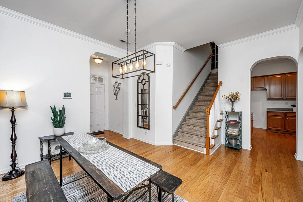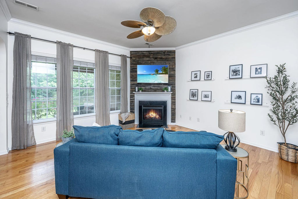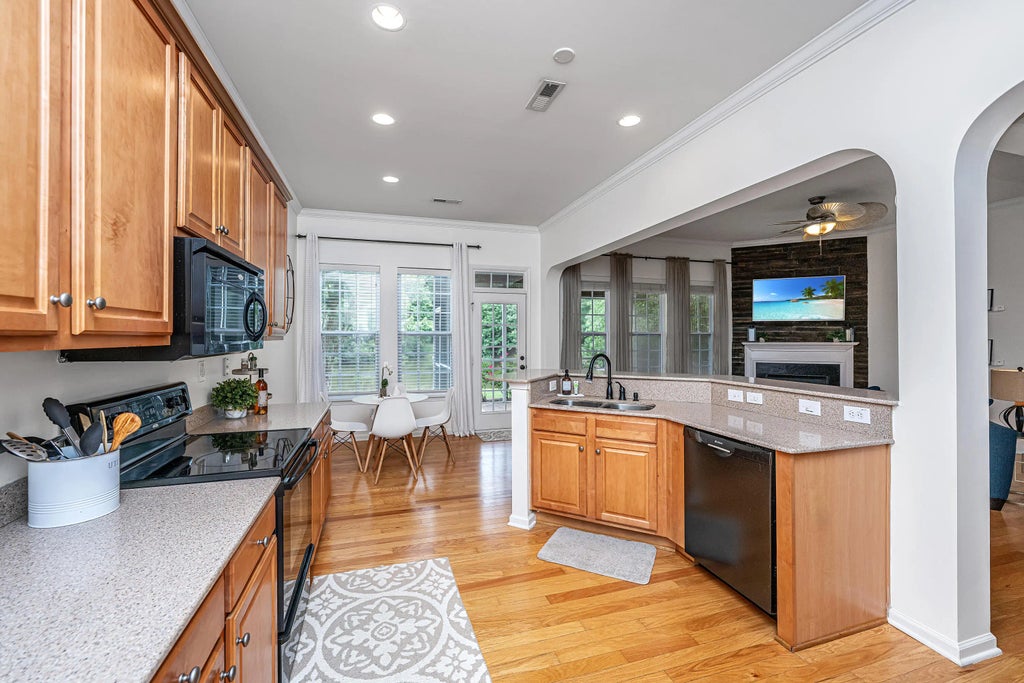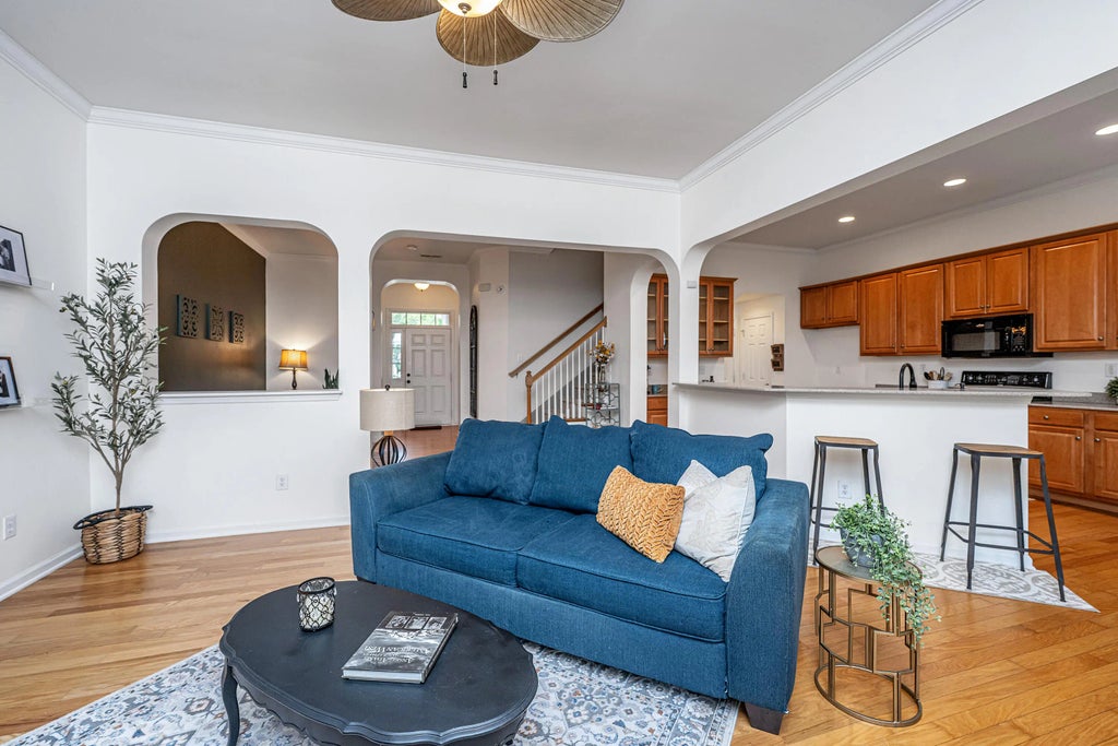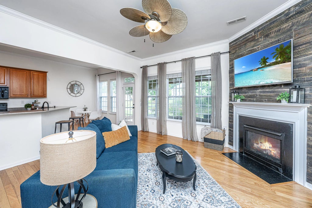 0.06 Welcome home to this beautifully maintained townhome located in the highly desirable Carolina Bay community. Boasting over 2000 sqft of living space under a new roof, installed in 2024. This home offers a perfect blend of comfort and style. Come enjoy tranquil views from the screened-in porch. Inside, the open-concept main floor features a spacious eat-in kitchen, gas fireplace, arched entryways, crown molding, and a new smart garage door opener and springs. Garage door can be operated from your phone. As you head upstairs, you'll find charming built-in bookshelves and a centrally located laundry area. The upper level includes two additional bedrooms and the primary BR complete with a tray ceiling, walk-in closet, and a luxurious primary bath,featuring dual vanities, walk-in shower and soaker tub. Enjoy carefree living as the HOA fees include lawn care, pest control, termite bond, exterior pressure washing, and pond maintenance. The community features 3 pools, playground areas, a dog park, walking trails, and a 3-acre park used for gatherings such as Food Truck Fridays, movie nights, and more. Don't miss your chance to own this exceptional home.