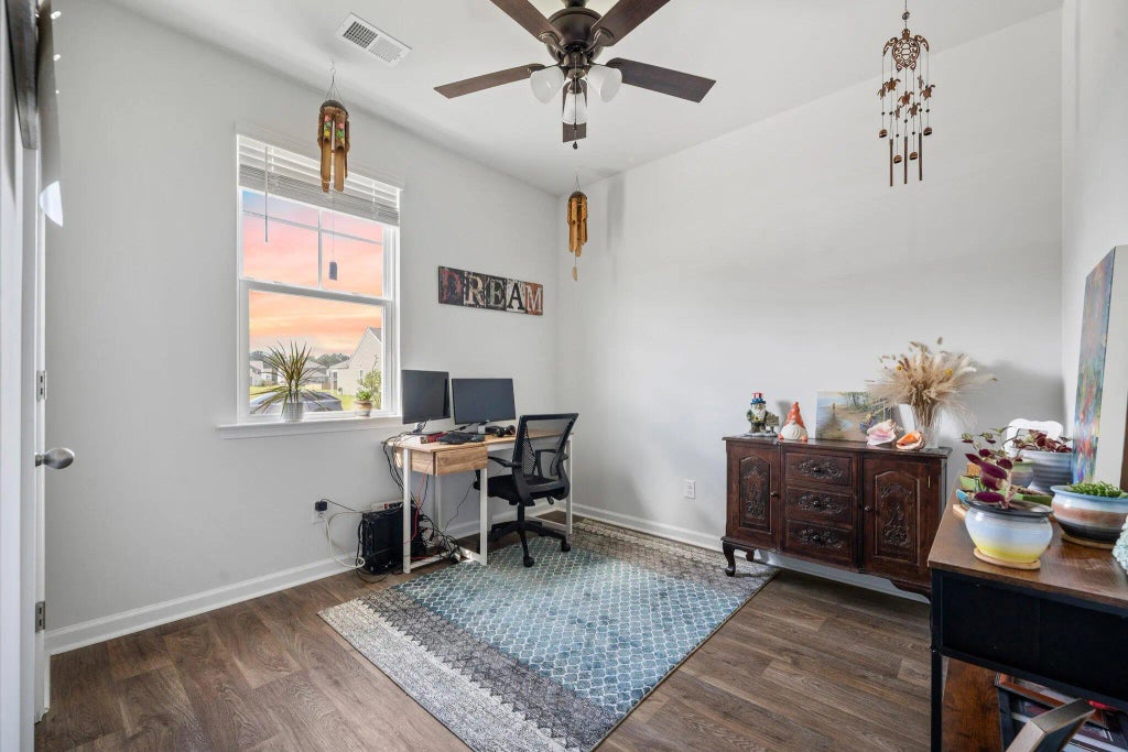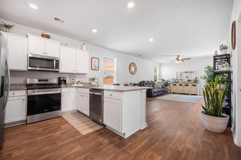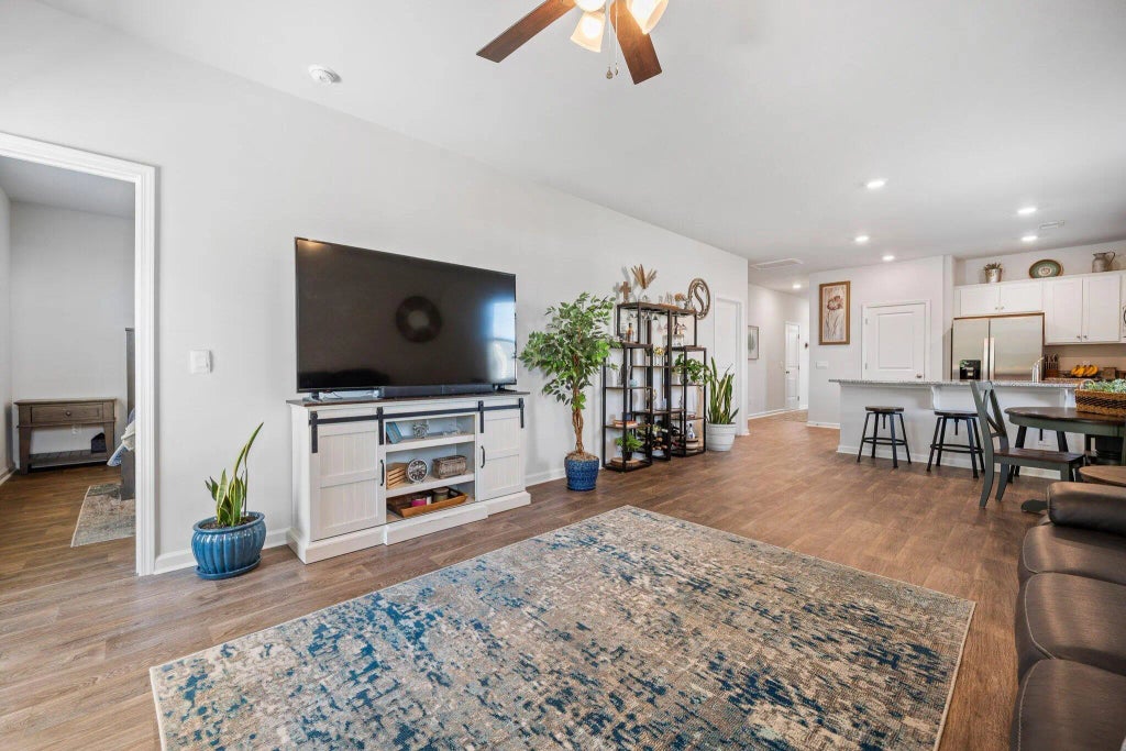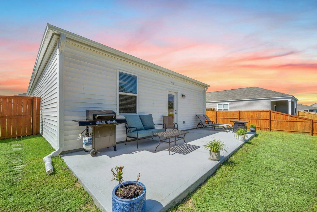 0.19 This 2024 home has all the upgrades and is located only 2 minutes away from Nexton Parkway and State Road. Enjoy a fully fenced yard on a scenic pond lot, an extended 10x28 patio, keyless entry, five ceiling fans throughout, gutters already installed, a one-year-old washer and dryer, stainless steel refrigerator, gas stove, and custom cabinetry and shelving in the laundry room, everything you need is already here!Perfectly designed for effortless one-story living, this four-bedroom, two-bath home offers a spacious, open layout with thoughtful details throughout. The kitchen features granite countertops and a walk-in pantry, while the living and dining areas flow seamlessly into the outdoor space, ideal for entertaining or relaxing under the Lowcountry sky.Located in the heart of Pin