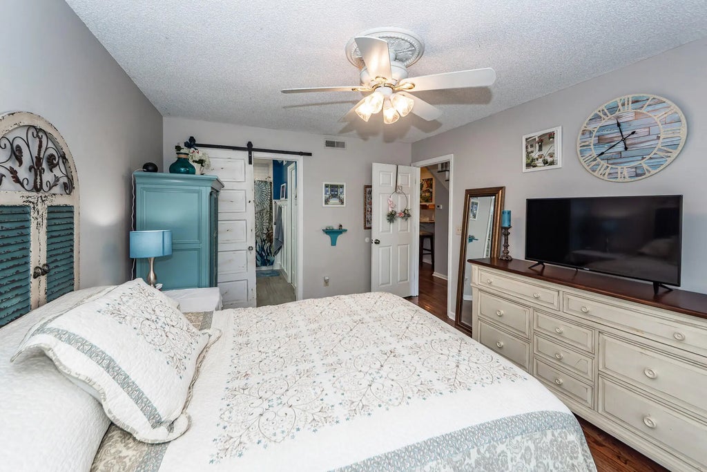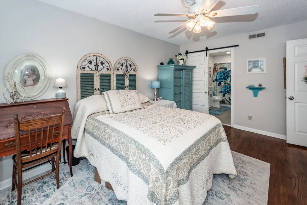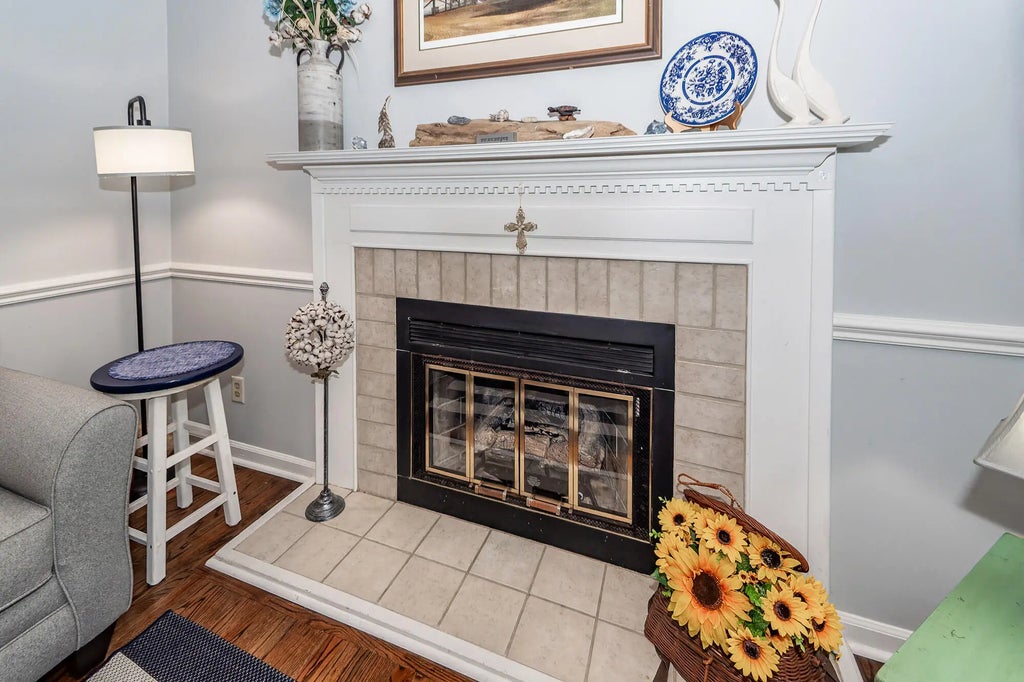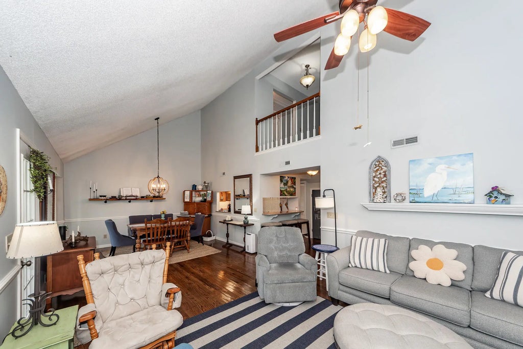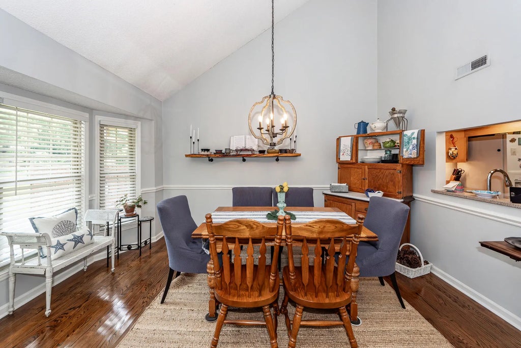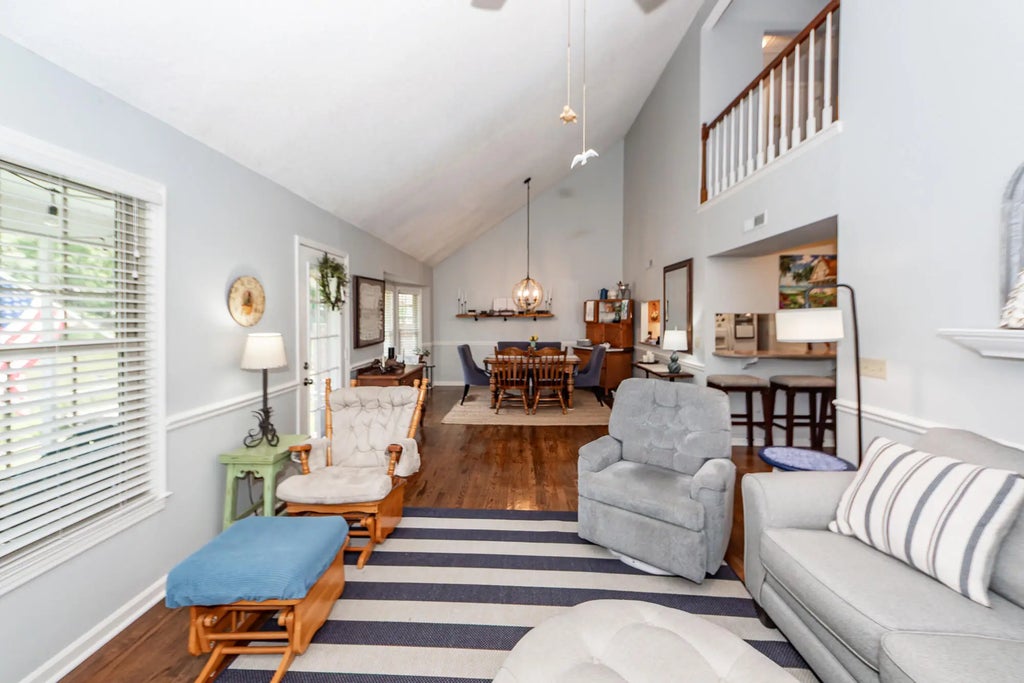1638 This 3-bdr, 2.5ba home in the Lakeview subsection of Ashborough has been meticulously maintained, and it shows! From the attractive hardwood flooring in the main living spaces and bedrooms to the remodeled bathrooms, this house is charming from top to bottom.! The family room and dining area are at the rear of the home with a dramatic vaulted ceiling. Many windows bring in lots of natural light in this open and spacious area. They also provide al view of the beautiful and tranquil backyard. A gas fireplace (there is no gas tank at property) in the family room could offer a great place to relax with family and friends on chilly evenings. The dining area has ample space for a large table and entertaining. The kitchen has attractive cabinetry, Quartz countertops, stainlessdishwasher and microwave. The primary bedroom is located downstairs and has a great space for furniture placement. The attached bathroom has been upgraded with a tiled shower, elegant tile flooring, and the vanity has also been plumbed for a second sink if desired. Upstairs there are two bedrooms with an updated bathroom conveniently located nearby. There is also a nice little nook at the back of the staircase that would be an ideal space for a relaxing reading area or for a home office. The outdoor area for this home is ideal for enjoying the natural habitat. The lot is located directly on the lake with a small private dock and abundant wildlife. By sitting on the screened porch or the dock, you can view blue herons, egrets, turtles, and more! This peaceful homesite is nestled on a cul-de-sac lot and would be a great place to call home! The home's location allows for a quick trip to the Ashley River Park and the new Ashley River library.
