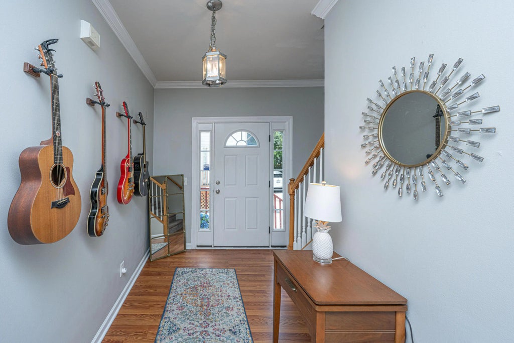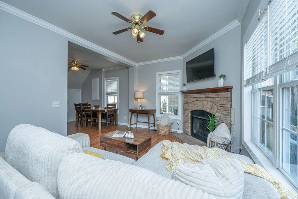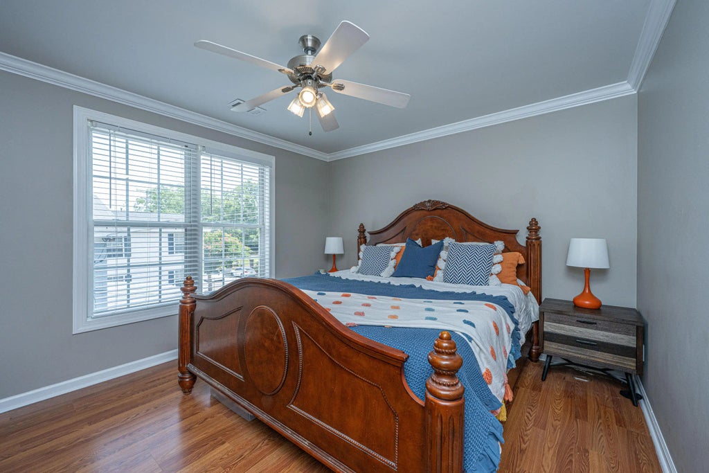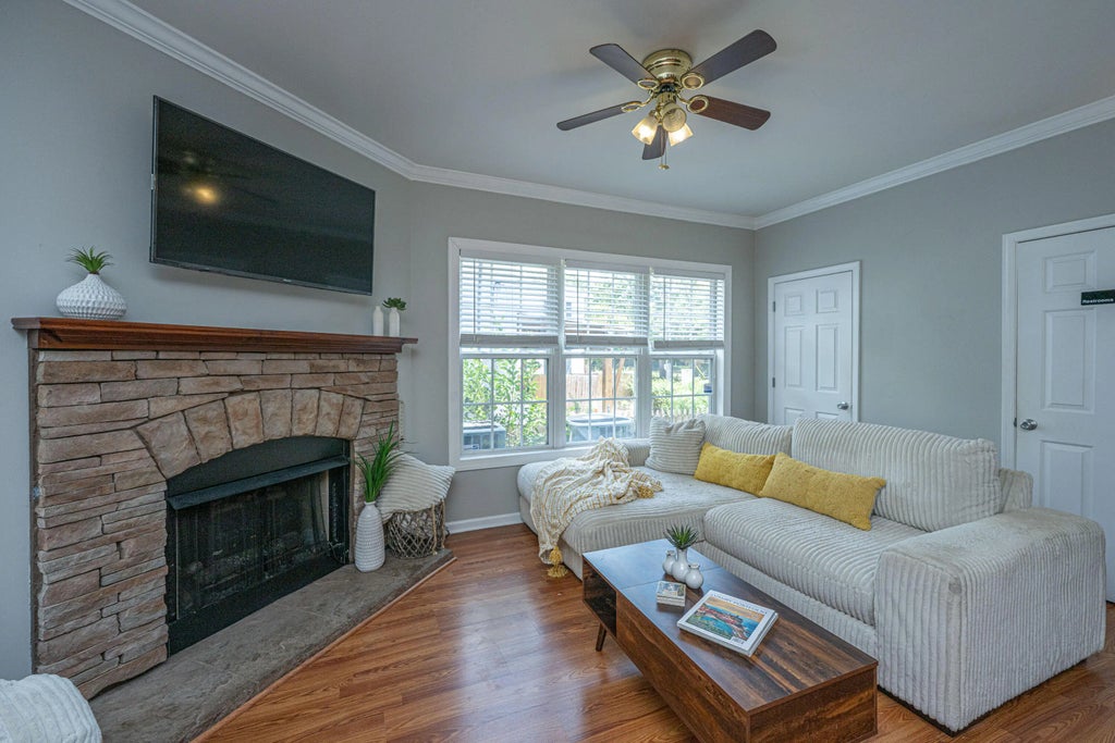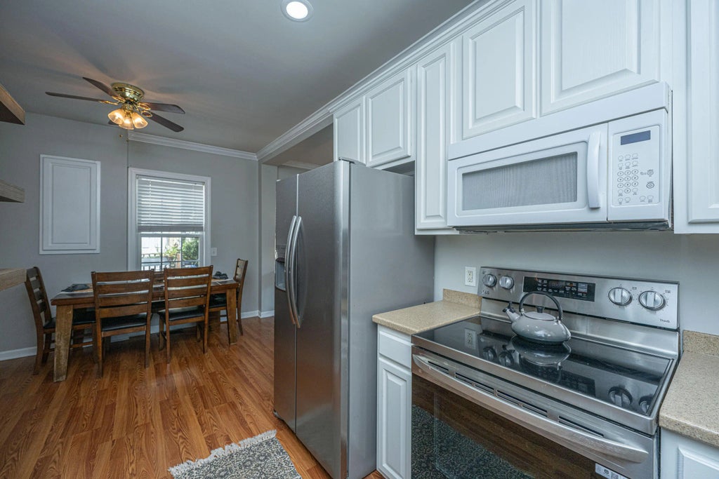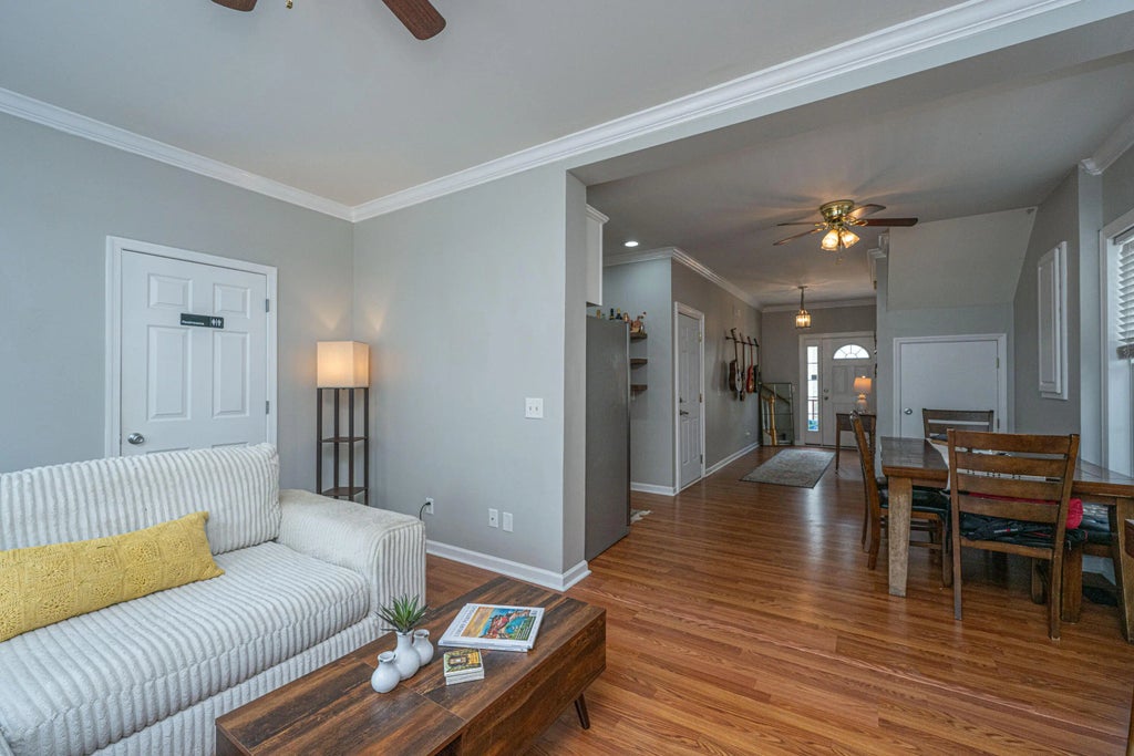 1290 This elegant dual primary bedroom townhome-style condominium offers the rare convenience of a private one-car garage and off-street parking--all within walking distance to downtown Charleston. Thoughtfully designed with a generous foyer, soaring nine-foot ceilings, floating hardwood floors, and crown molding throughout, the home exudes charm and sophistication. The spacious living area features a cozy gas fireplace and a convenient half bath. Upstairs, there are two large primary suites, each with walk-in closets. A standout feature is the oversized walk-in laundry room, offering exceptional storage and function. One of the suites boasts a double vanity, a large garden tub, and a luxurious rain shower. Unit B is the only unit with direct access from inside of the home to the garage.Mayflower Court is comprised of seven units nestled behind the Greek Orthodox Church and School, this residence offers a uniquely private setting. Enjoy being just two blocks from Leon's Oyster Shop and Little Jack's Tavern, with countless other top-tier dining and shopping options nearby. Moments from Hampton Park, The Citadel, and the vibrant heart of Charlestonthis is city living at its finest.