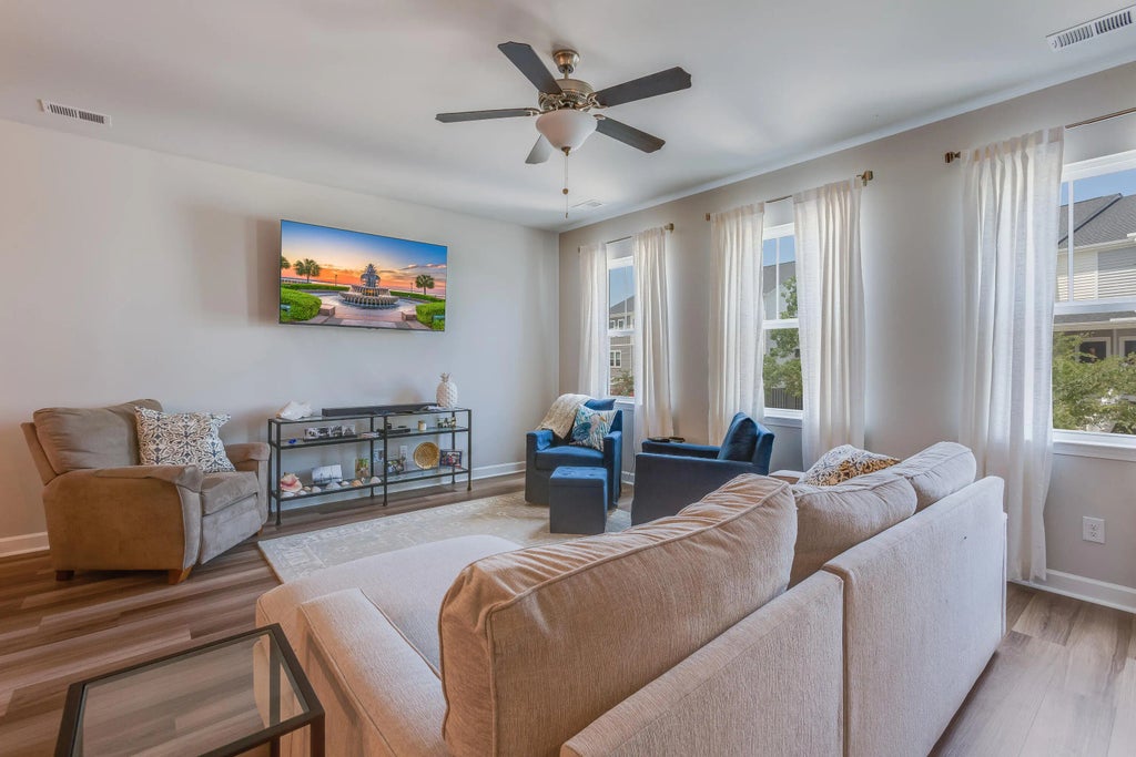 0.09 Experience light and airy living in this 3-bedroom, 2.5-bath, 3-story home designed for comfort and convenience. The expansive 2-car garage spans the entire footprint of the home, includes hard screening, and offers generous storage space. Closets on each floor have been thoughtfully constructed as a stacked elevator shaft, providing the option to install an elevator in the future. On the main living level, enjoy an open-concept layout featuring a chef's kitchen that flows seamlessly into a spacious breakfast area and a large family room. Step out onto the covered balcony--perfect for entertaining or relaxing with views of the marsh front air. Upstairs, the primary suite offers a private retreat with an en suite bath and a large walk-in closet. Two additional bedrooms and a fullbath complete the upper level. Located in a community that features a neighborhood pool and just 18 minutes from the Stono River and 20 minutes from downtown Charleston, this home blends comfort, functionality, and an unbeatable location.