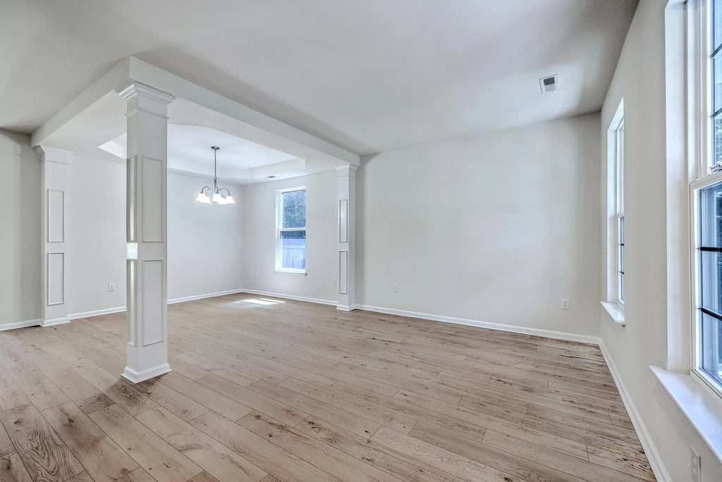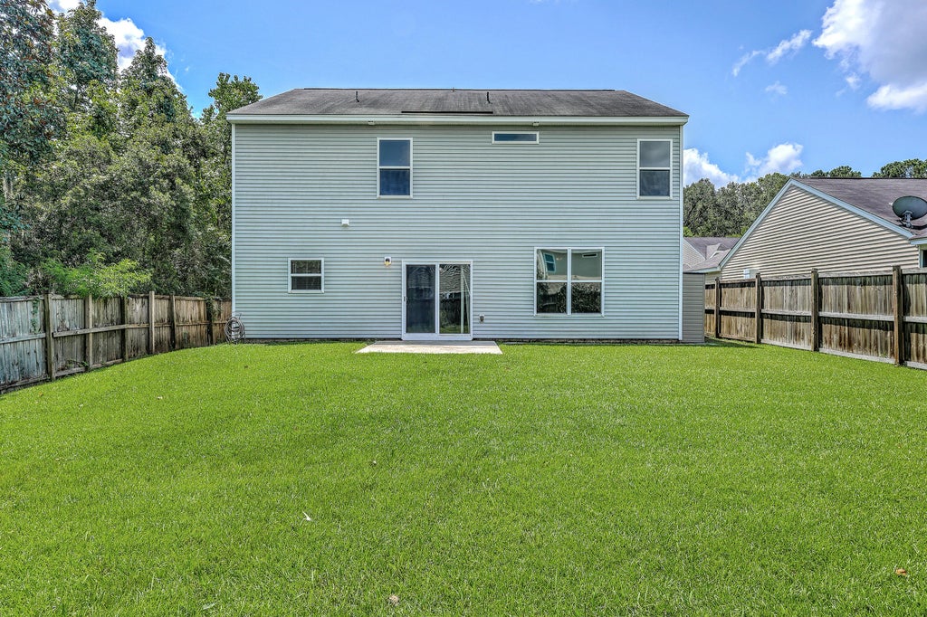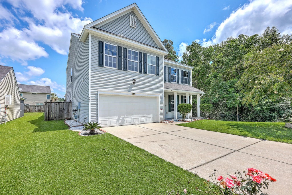 0.15 This is a move-in ready home. It offers new LVP flooring throughout the first floor except for the half bathroom. It has been freshly painted throughout. As you enter the home, you will find the formal living room that would make a great home office. This room is open to the formal dining area with beautiful columns. It has a tray ceiling. As you make your way to the back of the home, you will find the kitchen which has plenty of storage with a pantry and tons of 42' cabinets. The cabinets have crown molding and an above display area. The stainless appliances include a smooth top stove, a built-in microwave and dishwasher. The eat-in area has a glass door that gives natural lighting. The huge family room is open to the kitchen. It has a ceiling fan. As you make your way upstairs, you wil notice new carpet throughout except for the bathrooms and laundry room. The large loft area has a ceiling fan. It would make a great media room or play area. The primary bedroom has a cathedral ceiling with a ceiling fan. The primary bathroom has a comfort height vanity with dual sinks, a soaking tub and separate shower as well as a large walk-in closet! You will also find three additional bedrooms on this floor. Of the three spare bedrooms, all have ceiling fans while two of the bedrooms offer walk-in closets. The main bathroom on this floor has a tub/shower combo. The transom window gives great natural lighting. The laundry room is conveniently located just off the loft. When exiting to check out the large backyard, you will notice the patio is perfect for grilling and relaxing while enjoying the outdoors. The privacy fence makes the backyard great for family pets. The home has great privacy as there is a wooded area to the right of the lot. Other features include freshly painted shutters, gas water heater and 2-car garage. The location is so convenient to just about anything you would need. Including restaurants, entertainment and shopping. Just about 6.6 miles to I-26, 9.6 miles to Naval Base, 5.8 miles to hospital, 20.3 miles to Volvo and 12.2 miles to Bosch.