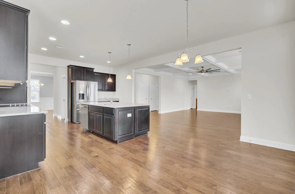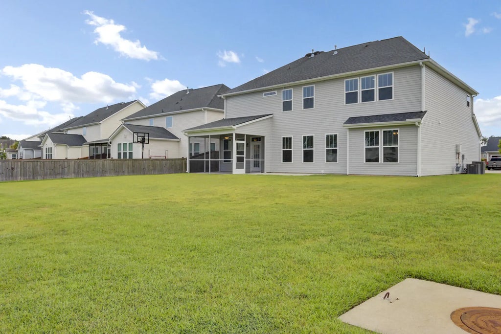0.18 Welcome to this 5-bedroom, 4-bath dream home in the heart of Cane Bay Plantation! From the moment you step into the foyer, you'll love the staircase. Enjoy green space next door, peaceful pond views out back, and relax year-round on your screened-in porch. Inside, the living room boasts a stunning coffered ceiling, and the open kitchen features a gorgeous island perfect for entertaining, plus a huge walk-in pantry for all your storage needs. The owner's suite is truly a retreat, with dual vanities so you never have to share space, a spa-like soaking tub, and a beautiful walk-in shower. This home has it all--space, style, and comfort in one of the Lowcountry's loved communities. Don't miss your chance to make it yours!