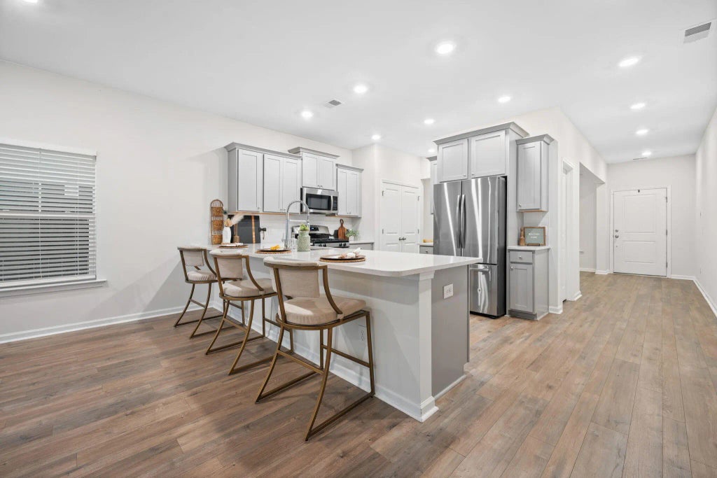 0.14 Prepare to be captivated by the Charleston charm of this stunning Kensington floor plan, featuring iconic double front porches that offer exceptional curb appeal. This spacious home offers 5 bedrooms and 3.5 bathrooms, blending Southern style with modern functionality. Step inside to an inviting open foyer, with a formal dining room to your right--ideal for hosting family dinners or festive gatherings. The heart of the home is the open-concept kitchen and living area, perfect for everyday living and entertaining alike. A convenient half bath and the generously sized owner's suite--complete with a private en suite bath--round out the first floor. Upstairs, you'll find four additional bedrooms and two full bathrooms. Two of the bedrooms are connected by a Jack-and-Jill bath, while anotheroversized bedroom offers its own private access to a full bathroom that also connects to the hallway, an ideal setup for guests or a flex space. Whether you're relaxing on the porch or enjoying the flow of this well-thought-out layout, this home offers comfort, style, and room to grow. Waterside at the Lakes of Cane Bay offers the ultimate Lowcountry lifestyle with incredible amenities at your fingertips. Enjoy a resort-style pool, play park, private boat launch, and miles of scenic wooded walking and jogging trails that wind around a stunning 300-acre lake. Conveniently located near the Cane Bay YMCA, Publix, top-rated schools, dining, shopping, and even a gas station everything you need is just moments from your doorstep. Don't miss your chance to experience all that Cane Bay Plantation has to offer this is more than a home, it's a way of life.