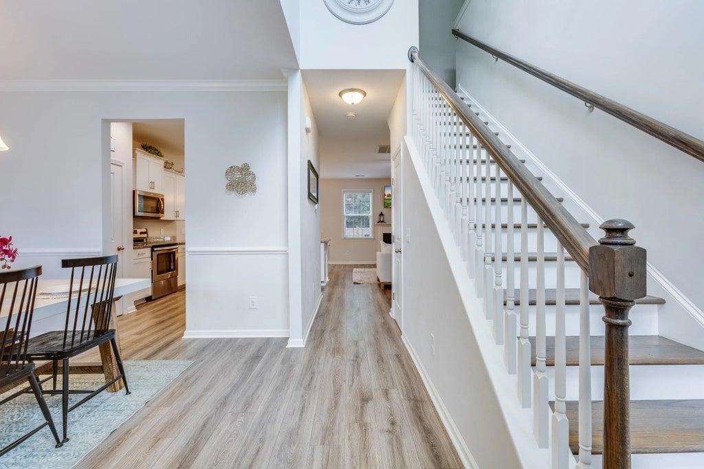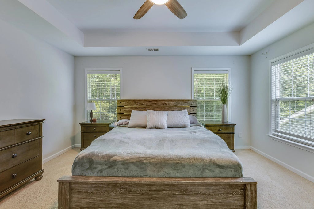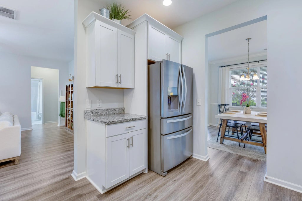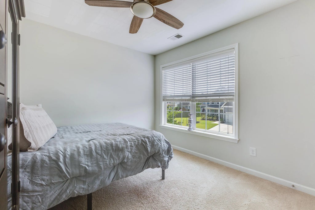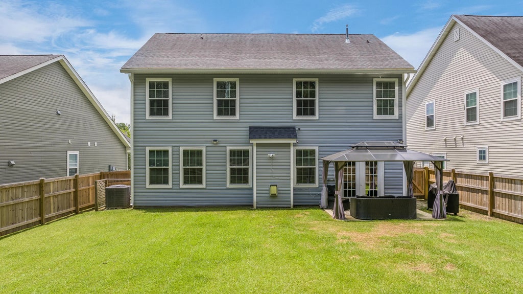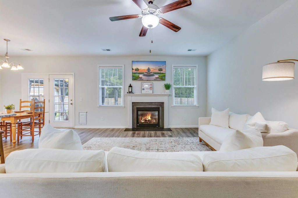 0.14 Freshly Painted! Big, Beautiful & Backed by Privacy!Welcome to this spacious 5-bedroom, 3-bathroom home nestled in the highly desirable Foxbank Plantation. From the moment you arrive, the inviting front porch sets the tone--perfect for morning coffee or watching the neighborhood buzz with bike rides and evening strolls.Inside, you'll love the light and airy feel, featuring fresh neutral tones and wide-plank laminate floors that flow through the open-concept living space. A large formal dining room offers plenty of space for hosting gatherings, while the living room centers around a cozy fireplace for relaxed evenings in. The kitchen is just steps away and ready for action with plenty of cabinet space and stainless appliances.A rare first-floor bedroom and full bathroom make the perfect guest suite or in-law retreat. Upstairs, the oversized primary suite includes a private en-suite bath and generous closet space. Three additional guest bedrooms, another full bath, and a conveniently located laundry room round out the second floor. Step outside to your private backyard oasisno rear neighbors in sight! Backing up to 150 acres of protected land, you'll enjoy peace, quiet, and privacy that's hard to come by. The level yard is ideal for pets, play, or just soaking in the serenity. Neighborhood amenities include 2 swimming pools, fitness center, community garden, dog park, kayak and canoe launch on a 67-acre lake, 141 acres of preserved wetlands, walking trails, green spaces, and a children's park. Don't miss your chance to live in one of the Low-country's most loved communities with top-notch amenities and location. Schedule your showing todaythis one checks all the boxes! **Pergola, washer/dryer, & refrigerator to convey.