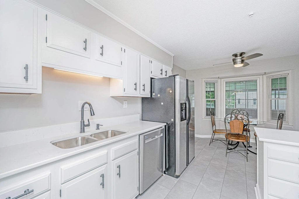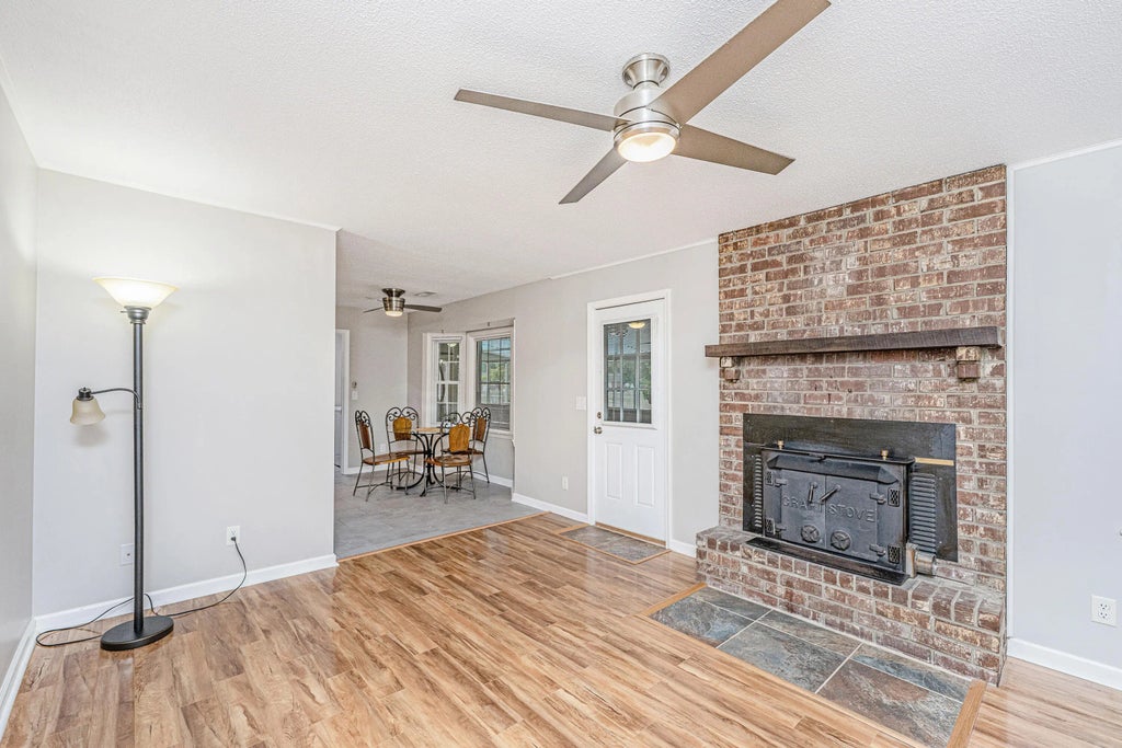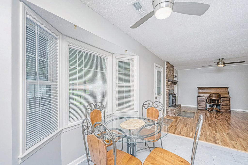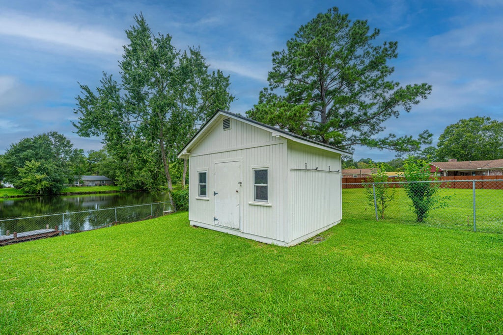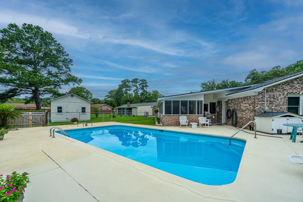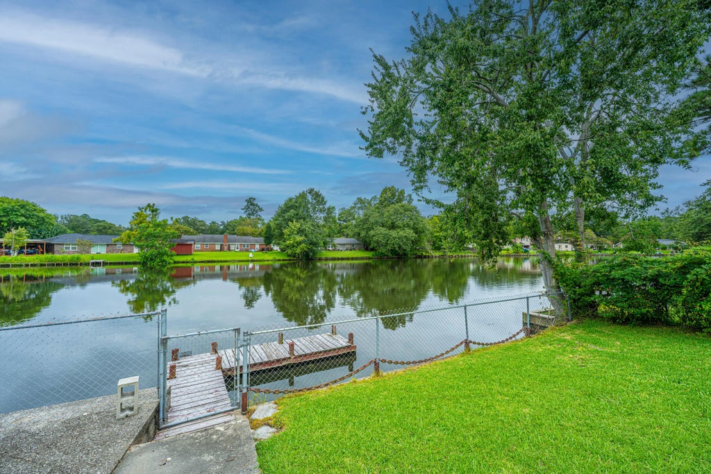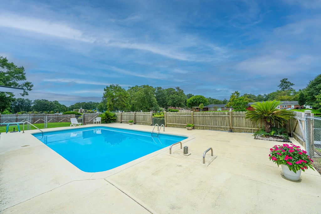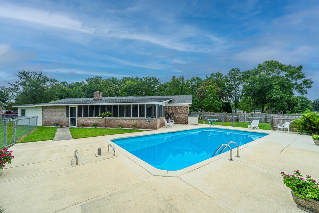0.29 Back on market due to no fault of seller. Out of town buyer, changed mind after due diligence. Inspection was completed and no repairs requested. Welcome to this waterfront property in the heart of Goose Creek! Enjoy easy living in this one story brick ranch home on a corner lot in The Foxborough community with no HOA and no flood insurance! Located on the beautiful Foxborough lake this well maintained home is 1,630 sqft with 3 bedrooms and 3 full bathrooms. New roof (2025), new windows (2021) and renovated kitchen (2025) featuring white cabinets, quartz countertops and stainless appliances. Good size bedrooms, all with fans. Primary features en suite and walk in closet. Formal dining room and living room with a wood burning fireplace in family room. 2 car garage with spacious drivewayThis home is perfect for enjoying the outside, featuring a large screened in porch, fully fenced in back yard, stunning in ground pool with full bath conveniently located on the screened in porch. Plus enjoy fishing off your own private dock. Conveniently located around the corner from the new Central Creek Park.