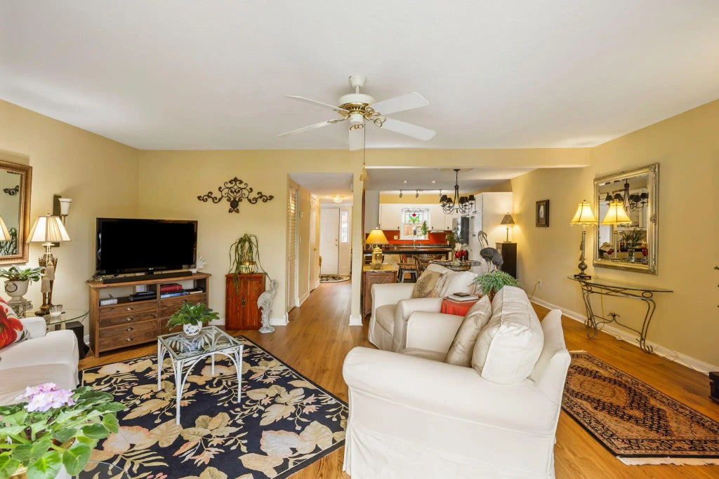 Ceiling - Blown, Kitchen Island, Ceiling Fan(s), Eat-in Kitchen, Living/Dining Combo