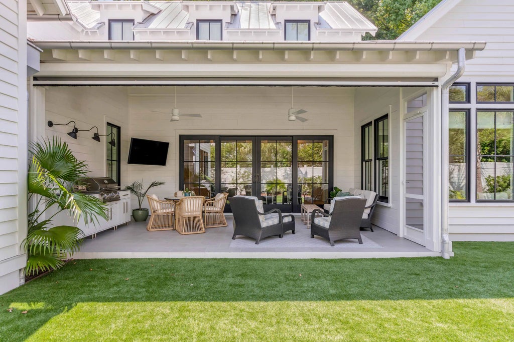 0.18 I'On living at its best in a nearly new home that is absolutely stunning. Built in 2022, the home boasts 4287 sq ft with 5 bedrooms, 5.5 baths, pool, bath house and guest house above the garage, which has accessibility from the house as well as a private entrance. Upon entering the home, there is a long view that showcases the open floorplan and the fine architectural details with an abundance of natural light that streams through gorgeous oversized windows and doors. Upon entering the foyer from the welcoming front porch that extends across the front of the home, there is a flexible room to the left, which would work well as an office, den, sleeping room or playroom. Moving forward, there is a gorgeous designated area for dining, which opens to the gourmet kitchen complete with ton of storage and gorgeous center island. The gourmet kitchen features professional-grade appliances, including two 24 inch full-height refrigeration towers, two ovens, gas cooktop, integrated paneled dishwasher, and custom-built tile hood. In addition, there are two spacious pantries. One contains a tall freezer and wine cooler, while the other is designed for food storage. The open and easy access to the family room/living room complete with handsome fireplace, tall soaring ceiling and oak beams join the kitchen area to provide beautiful vistas of the backyard and pool. Additionally there are accordion doors leading to a sizable screened in porch with motorized screens and outdoor kitchen for complete backyard enjoyment! The expansive backyard is fully fenced for privacy and has beautiful low maintenance turf grass. The yard also Includes a wonderful salt water mineral pool and spa, plus a pool bath. An enormous mudroom is perfectly placed from the garage entrance into the home and the guest area over the garage. There is a separate entrance into the mud room from the backyard. The fully equipped guest area is equipped with it's own living/dining room, full kitchen, bedroom complete with washer/dryer connection. This space can easily be accessed from the home or set up as a separate space with private entry. The stunning primary suite is on the first floor in an independent wing, boasting vaulted ceiling and beautiful oversized windows overlooking the pool and backyard. The bedroom has white oak beams and a beautiful view of the courtyard and pool. It has two large his/hers closets with custom shelving and dressers with a laundry room conveniently located in close proximity to both the bedroom suite and the luxurious bathroom with its beautiful natural finishes. There is a handsome staircase that leads to the second floor where you will enjoy three nicely sized bedrooms. Two share a jack-and-jill bathroom, and the third has its own bathroom. All have lovely neutral finishes, and walk-in closets. This home is steps to Maybank green, and a short walk to the restaurants and shops in the front of I'On, as well as the I'On pool/tennis club,lakes, and marsh paths. This is an amazing opportunity to move into a newer custom home in one of Mt. Pleasant's most desirable neighborhoods. The home is exceedingly well built and lives like a dream.