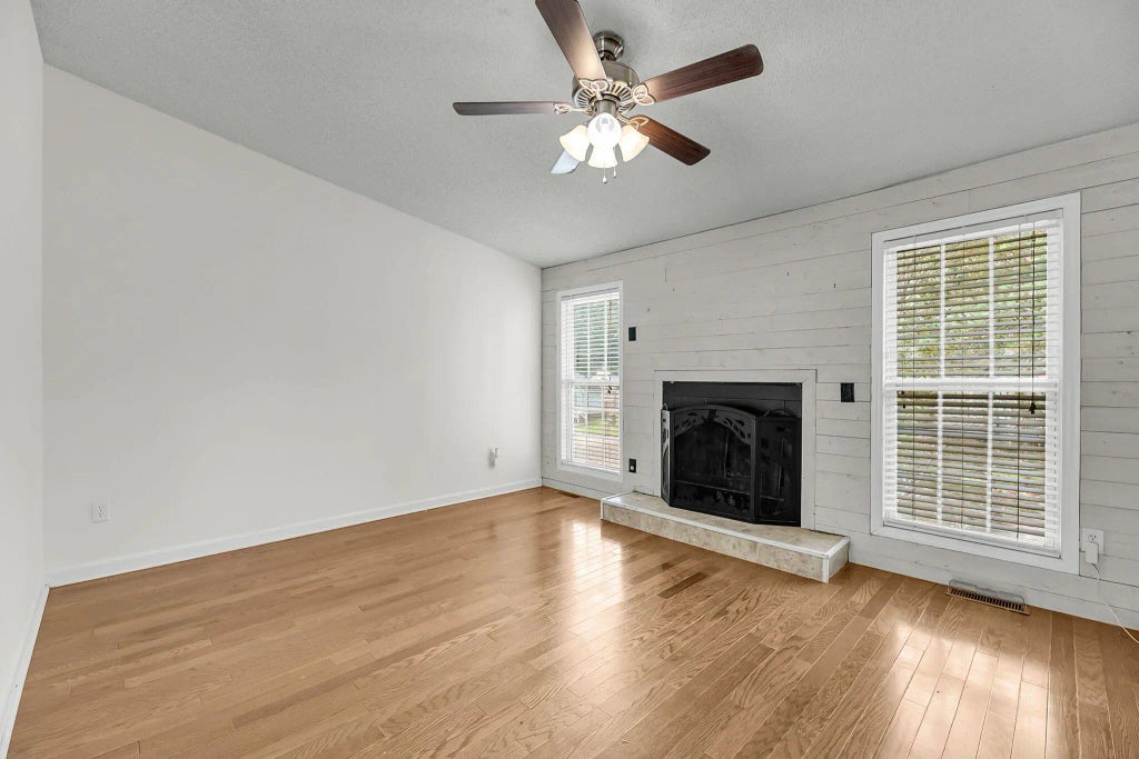 0.17 This beautifully updated 5-bedroom, 2-bath home features a split floor plan and a large backyard, perfect for outdoor living. The covered back porch deck was replaced in 2022 along with adding a roof cover to the deck - offering a relaxing spot to unwind.Inside, the kitchen includes granite countertops and the formal sitting room features a cozy fireplace with shiplap detailing. Located within walking distance to both the elementary and middle schools, this move-in-ready home combines modern updates with everyday convenience - all with no HOA.Recent upgrades include a new roof on both the house and shed in 2024, a wired security system with cameras and door alerts installed the same year, new flooring and fresh paint throughout, and new carpet on the stairs added in August 2025. Additional improvements include a new HVAC system installed in 2019, updated siding in 2018, and a new refrigerator, microwave, and stove in 2024.