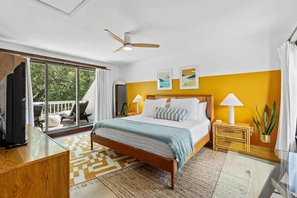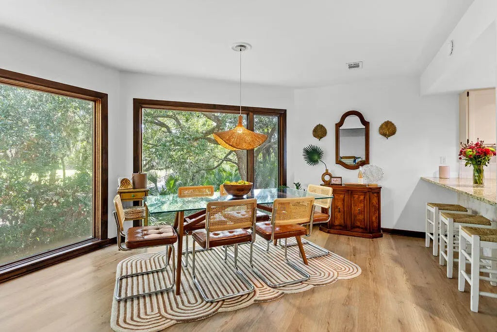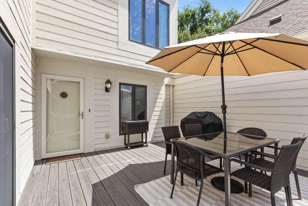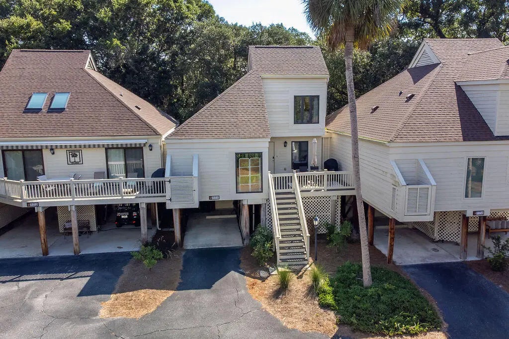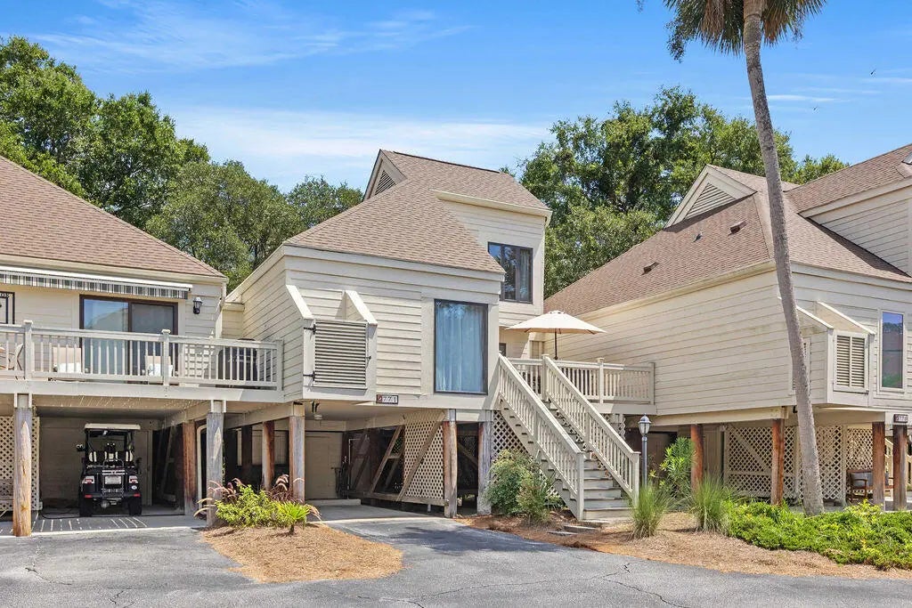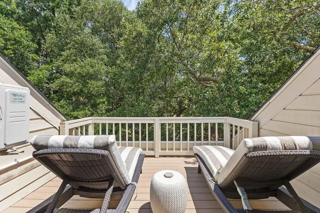 0.03 Welcome to a rare blend of vintage charm and modern refinement in this beautifully reimagined beach villa, Thoughtfully renovated with a nod to 1970s California style, this fully furnished townhome is as stylish as it is inviting -- and perfectly located just a short walk to the beach and only a block from the Beach Club, pools, and oceanfront dining. This villa offers peace of mind with a new roof (2025), fully renovated decks, newer HVAC (2023), and water heater, offering the perfect balance of beauty and dependability and a transferrable short-term rental permit and glowing 5 star reviews! Step inside and you'll be greeted by a curated mix of textures, tones, and natural light. Vaulted ceilings and walls of windows bring the outdoors in with serene views of moss-draped live oaklush island greenery overlooking Crooked Oaks Golf course. The open-concept living area is anchored by a warm leather sofa and woven accents, framed by bold wallpaper and mid-century design touches that elevate the retro aesthetic with contemporary refinement. A playful bar setup with vintage-inspired signage, colorful glassware, and layered décor sets the tone for laid-back entertaining with a perfect nod to the villa's coastal-chic personality. The dining space feels like a treehouse retreat, wrapped in glass and surrounded by nature with a chic glass-top table, rattan chairs, and designer lighting. Just steps away, the thoughtfully updated kitchen continues the California-cool aesthetic with granite countertops, fresh cabinetry, and a gleaming backsplash that brings subtle texture and depth. Paired with stainless steel appliances and sleek fixtures, it's a space that's as functional as it is effortlessly stylish. Enjoy al fresco meals or evening cocktails on the expansive front deck, complete with lounge chairs, a dining set, and a grill for easy entertaining. Inside, the main-floor guest bedroom channels a coastal cabana with twin queen beds, breezy textures, and access to a full bath with playful pops of color and custom tile work. Upstairs, the primary suite offers a peaceful, light-filled sanctuary with a king bed, writing nook, and private balcony. The en-suite bath is chic and spa-inspired, featuring a stunning walk-in shower with geometric tile detailing and a modern vanity that ties seamlessly into the home's California-casual aesthetic. Every detail of this villa has been thoughtfully curated from furnishings to finishes to capture the essence of laid-back luxury. Whether you're looking for a dreamy beach getaway or an income-generating investment, this one-of-a-kind home is designed to inspire, relax, and impress.