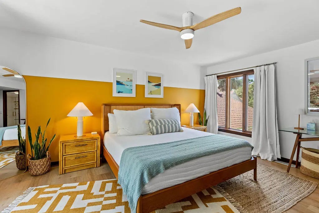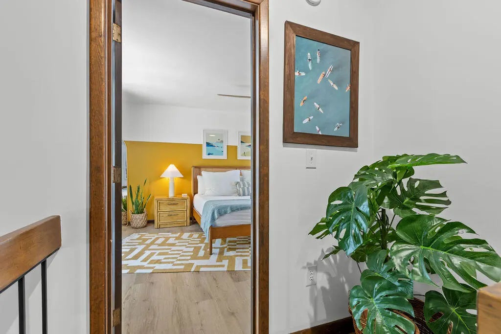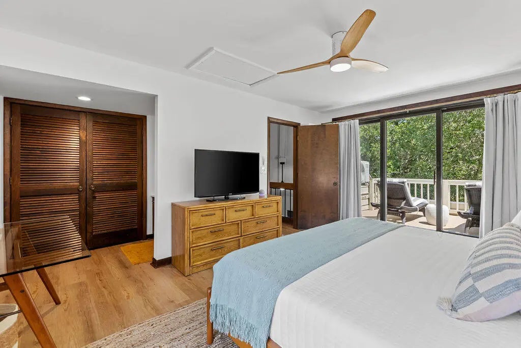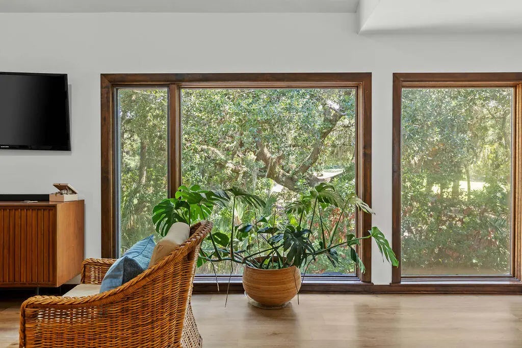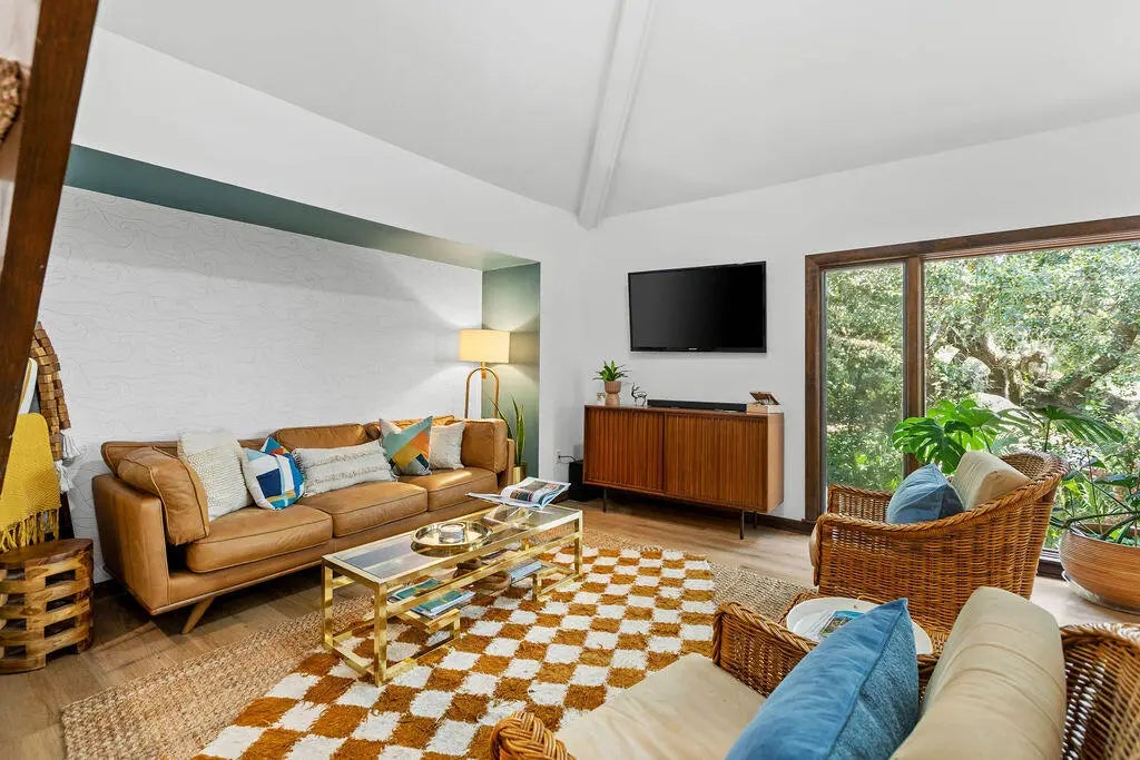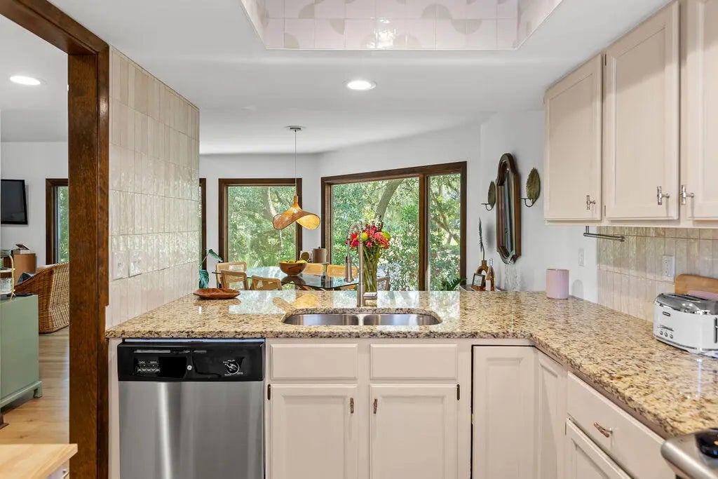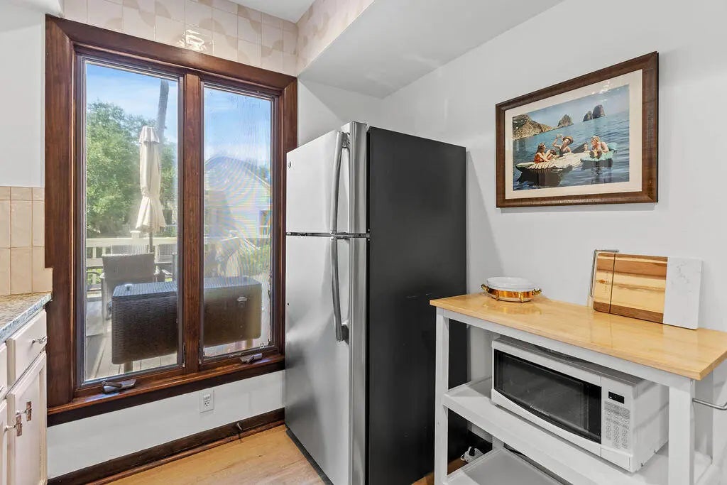 0.03 Welcome to a rare blend of vintage charm and modern refinement in this beautifully reimagined beach villa, Thoughtfully renovated with a nod to 1970s California style, this fully furnished townhome is as stylish as it is inviting -- and perfectly located just a short walk to the beach and only a block from the Beach Club, pools, and oceanfront dining. This villa offers peace of mind with a new roof (2025), fully renovated decks, newer HVAC (2023), and water heater, offering the perfect balance of beauty and dependability and a transferrable short-term rental permit and glowing 5 star reviews! Step inside and you'll be greeted by a curated mix of textures, tones, and natural light. Vaulted ceilings and walls of windows bring the outdoors in with serene views of moss-draped live oaklush island greenery overlooking Crooked Oaks Golf course. The open-concept living area is anchored by a warm leather sofa and woven accents, framed by bold wallpaper and mid-century design touches that elevate the retro aesthetic with contemporary refinement. A playful bar setup with vintage-inspired signage, colorful glassware, and layered décor sets the tone for laid-back entertaining with a perfect nod to the villa's coastal-chic personality. The dining space feels like a treehouse retreat, wrapped in glass and surrounded by nature with a chic glass-top table, rattan chairs, and designer lighting. Just steps away, the thoughtfully updated kitchen continues the California-cool aesthetic with granite countertops, fresh cabinetry, and a gleaming backsplash that brings subtle texture and depth. Paired with stainless steel appliances and sleek fixtures, it's a space that's as functional as it is effortlessly stylish. Enjoy al fresco meals or evening cocktails on the expansive front deck, complete with lounge chairs, a dining set, and a grill for easy entertaining. Inside, the main-floor guest bedroom channels a coastal cabana with twin queen beds, breezy textures, and access to a full bath with playful pops of color and custom tile work. Upstairs, the primary suite offers a peaceful, light-filled sanctuary with a king bed, writing nook, and private balcony. The en-suite bath is chic and spa-inspired, featuring a stunning walk-in shower with geometric tile detailing and a modern vanity that ties seamlessly into the home's California-casual aesthetic. Every detail of this villa has been thoughtfully curated from furnishings to finishes to capture the essence of laid-back luxury. Whether you're looking for a dreamy beach getaway or an income-generating investment, this one-of-a-kind home is designed to inspire, relax, and impress.