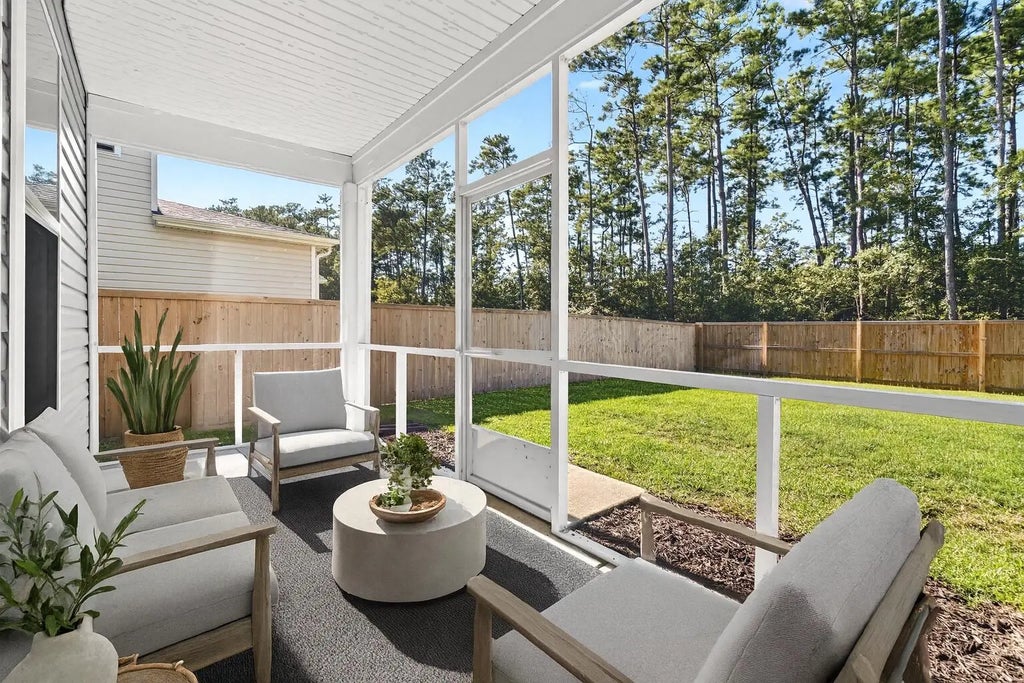 0.13 Welcome to this beautifully upgraded Maple floorplan, thoughtfully designed for both style and everyday functionality. Step into an inviting foyer with laminate flooring that extends throughout the main living areas. The kitchen serves as the centerpiece of the home, offering 42'' white cabinetry, a striking admiral blue island, quartz countertops, tile backsplash, pre-wired pendant lighting, a spacious walk-in pantry, and a smart refrigerator. The great room features an electric fireplace with a shiplap accent wall, creating a warm and welcoming gathering space. Convenience shines with a main-level laundry room enhanced with tile flooring. Oak tread stairs lead to the second level, whereyou'll find a versatile loft, all bedrooms, and a shared full bath with quartz vanity and tile flooring. The primary suite showcases a tray ceiling, while the spa-inspired ensuite includes a soaking tub, separate frameless shower, and dual quartz vanities. Additional upgrades include ceiling fans in every room, custom blinds, a MyQ garage door opener with remote access, and a security camera system. Enjoy year-round outdoor living on the screened porch overlooking a large fenced backyard with a wooded buffer for added privacy. This home also offers lawn irrigation, a HERS score of 48, and Energy Star Certification with Energy Series PLUS efficiency. Located in the sought-after Jasmine Point section of Cane Bay, residents enjoy resort-style amenities including a community pool, cabana, wooded play park, and miles of sidewalks. Cane Bay Plantation also offers miles of biking, walking, and golf cart trails, complete with underground tunnels, connecting you to local schools, shopping, dining, and the largest YMCA on the East Coast. The community's 300-acre lake system provides endless opportunities for recreation. Conveniently situated near Black Tom Road and Fairwinds Boulevard for easy commuting, this home presents an exceptional opportunity to experience the Cane Bay lifestyle. Motivated sellerspriced to move.