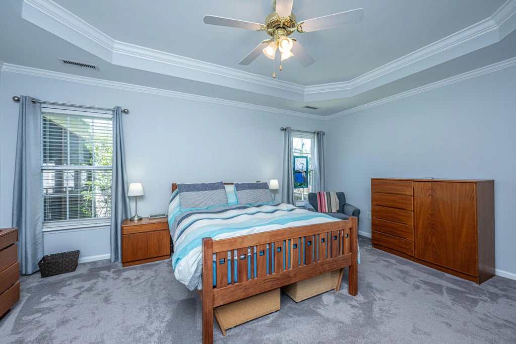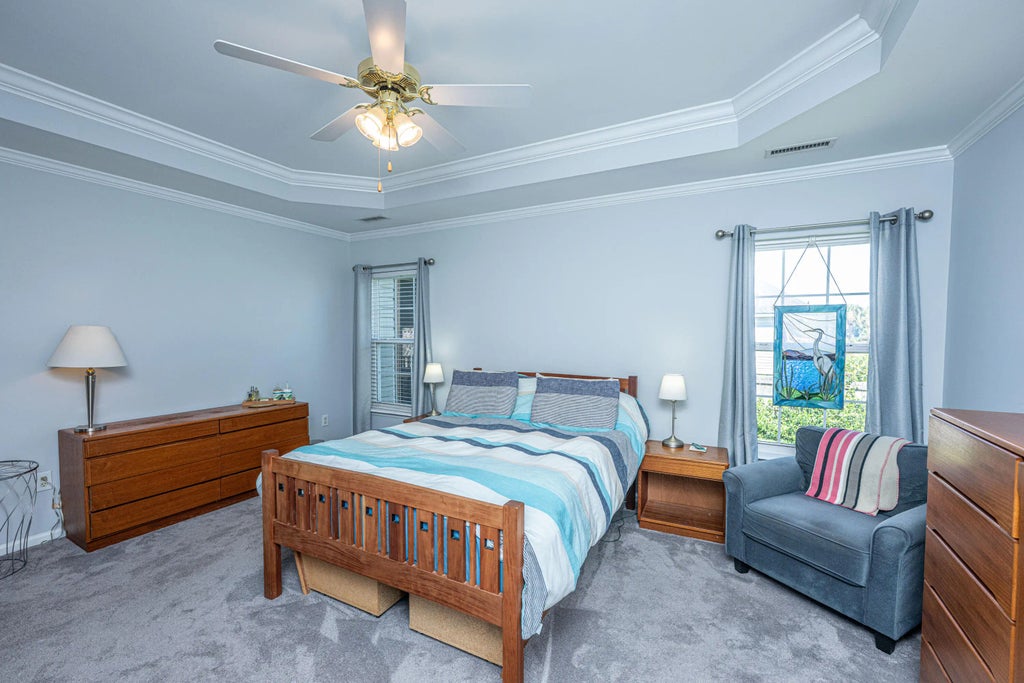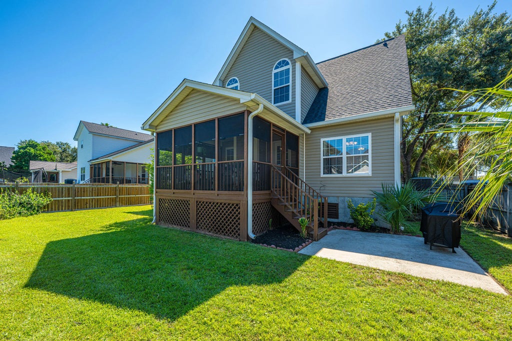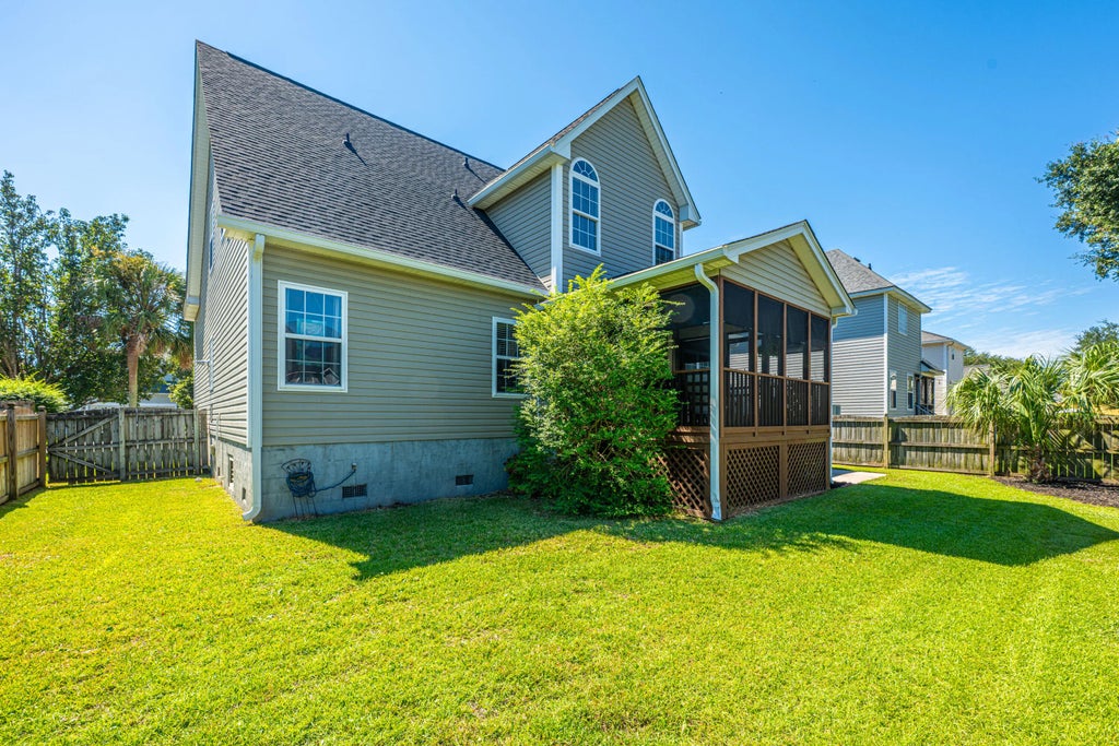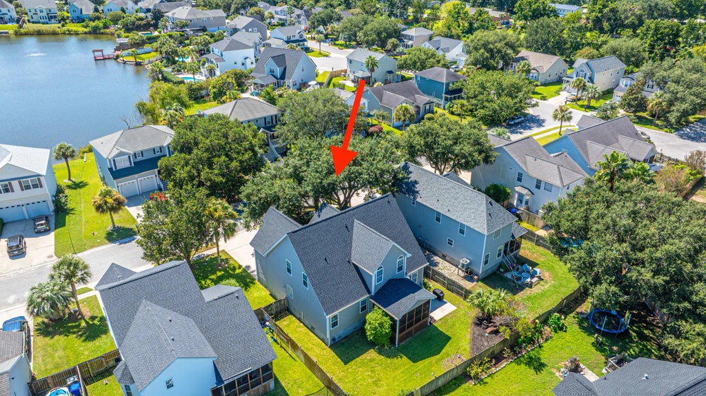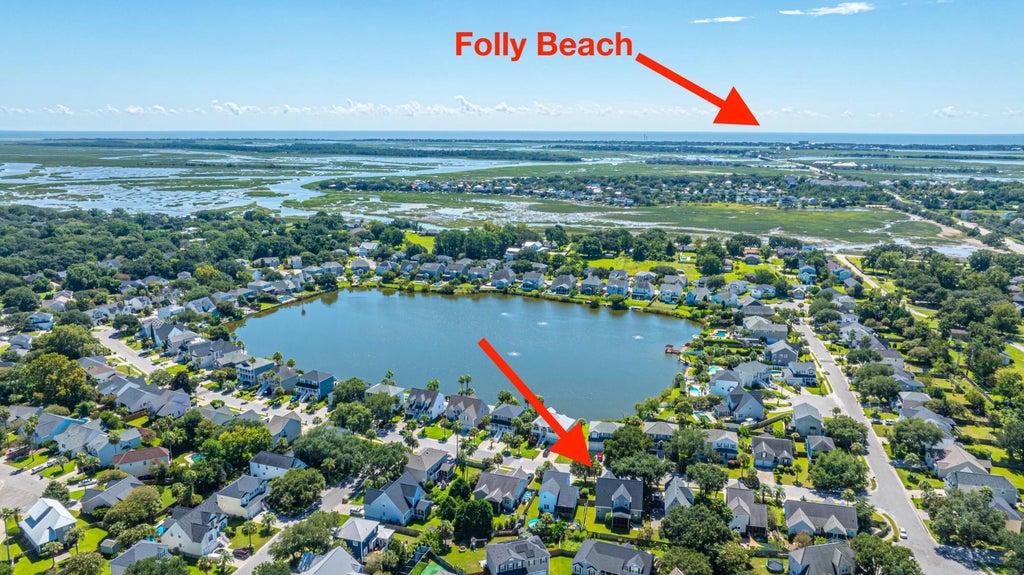 0.16 Close to Folly Beach, this beautiful 4 bedroom home is nestled in a highly desirable community, on a picturesque, tree-lined street. The interior boasts wood floors, a kitchen with granite counters, refaced cabinets and soft shut drawers and unique architectural features such as arches, columns, tray ceilings and crown moulding. Relax by the fireplace in the family room or on the charming screened back porch looking over your fenced backyard. The spacious DOWNSTAIRS master bedroom offers a retreat, complete with a master bathroom featuring a stand-up shower, dual sinks, and a luxurious jetted tub. Upstairs you will find a large loft and a FROG (4th bedroom). The HVAC is 2023, the ROOF is 2024 and interior PAINT is 2025. This neighborhood boasts a central lake, boat dock and playground.