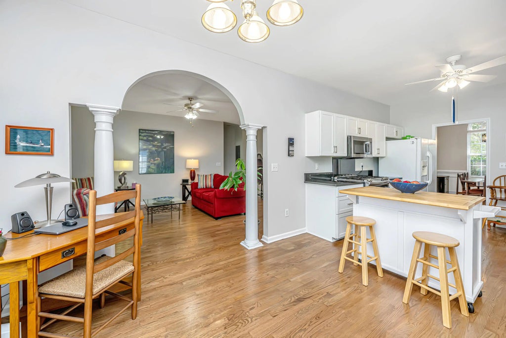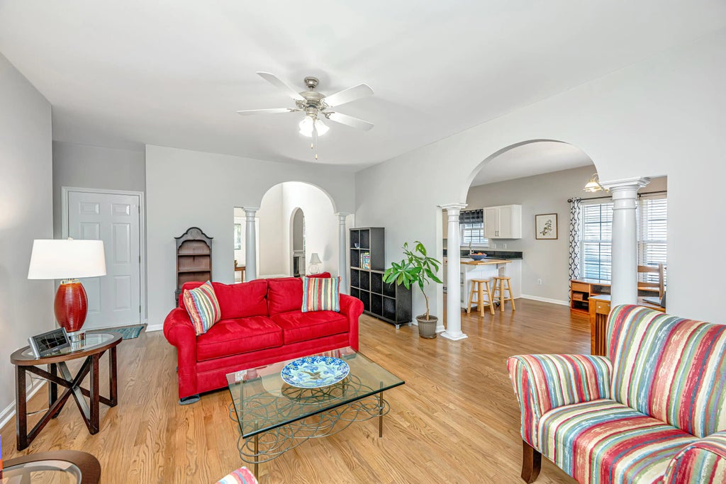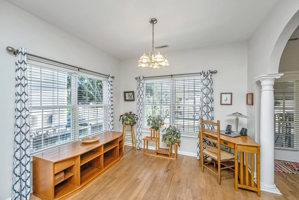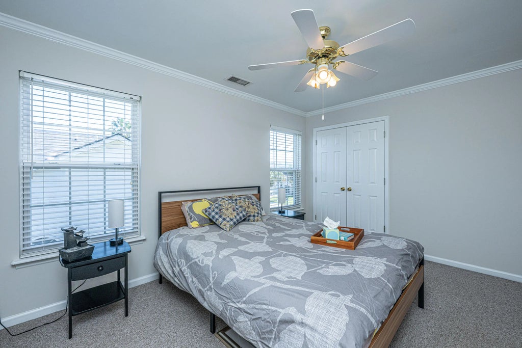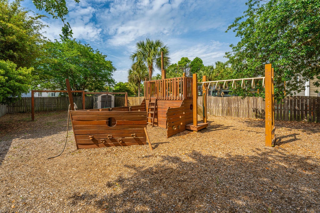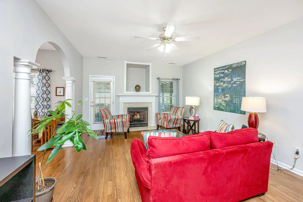 0.16 Close to Folly Beach, this beautiful 4 bedroom home is nestled in a highly desirable community, on a picturesque, tree-lined street. The interior boasts wood floors, a kitchen with granite counters, refaced cabinets and soft shut drawers and unique architectural features such as arches, columns, tray ceilings and crown moulding. Relax by the fireplace in the family room or on the charming screened back porch looking over your fenced backyard. The spacious DOWNSTAIRS master bedroom offers a retreat, complete with a master bathroom featuring a stand-up shower, dual sinks, and a luxurious jetted tub. Upstairs you will find a large loft and a FROG (4th bedroom). The HVAC is 2023, the ROOF is 2024 and interior PAINT is 2025. This neighborhood boasts a central lake, boat dock and playground.