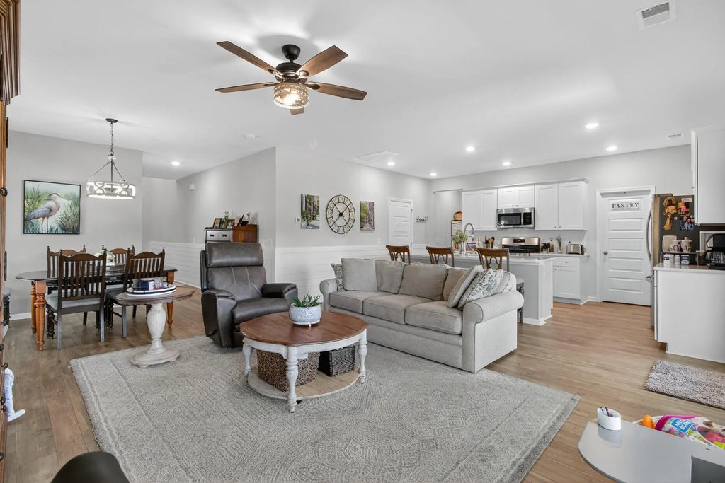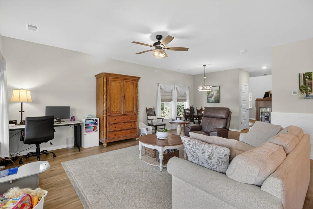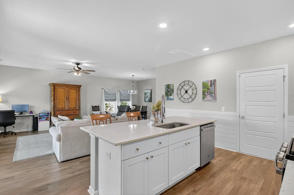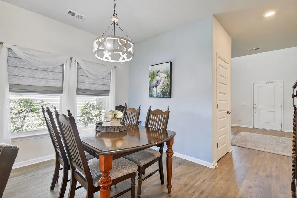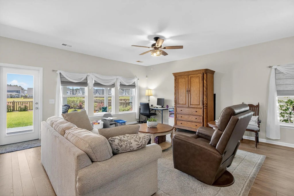 0.13 Welcome to this beautiful 4-bedroom, 2.5-bath home located in the desirable SummersCorner community, part of the highly rated Dorchester District 2 school system. Fromthe moment you step through the front door, you are greeted by a bright, airy foyer withsoaring ceilings and lovely shiplap wall that sets the tone for the rest of the home.The open-concept great room is the heart of the home, thoughtfully designed tocombine the dining area, spacious living room, and gourmet kitchen--perfect for botheveryday living and entertaining. The kitchen features abundant cabinet and counterspace, a large kitchen island with breakfast bar, stainless steel appliances, and a walk-in pantry.The living room is filled with natural light, thanks to multiple large windows, and offers plenty of space to relax and unwind. Step outside to the covered back patioperfect for morning coffee or evening gatherings. The yard is fully irrigated and beautifully landscaped to include a paver pathway and offers a peaceful view of one of the neighborhood ponds. Upstairs, you'll find a laundry room and versatile loft area ideal for a second living space, home office, or playroom. Retreat to the oversized primary suite complete with a dual vanity, large walk-in shower, and spacious walk-in closet. The three additional bedrooms are generously sized and share access to a well-appointed second full bath. Additional features include a two-car garage with professionally installed workbench and monkey bar system to keep everything organized and in reach. Residents of Summers Corner enjoy a wide range of community amenities, including a resort-style pool, walking and jogging trails, scenic parks, and exclusive access to Buffalo Lake. The community also hosts many activities to include holiday parties, farmers markets and much more to allow for social connection with neighbors. Don't miss the chance to call this stunning home your ownschedule your private showing today! Use preferred lender to buy this home and receive an incentive towards your closing costs!