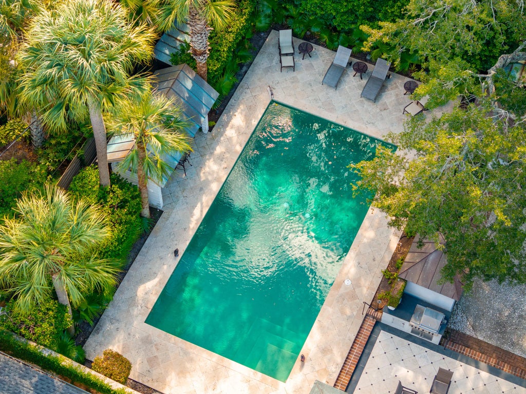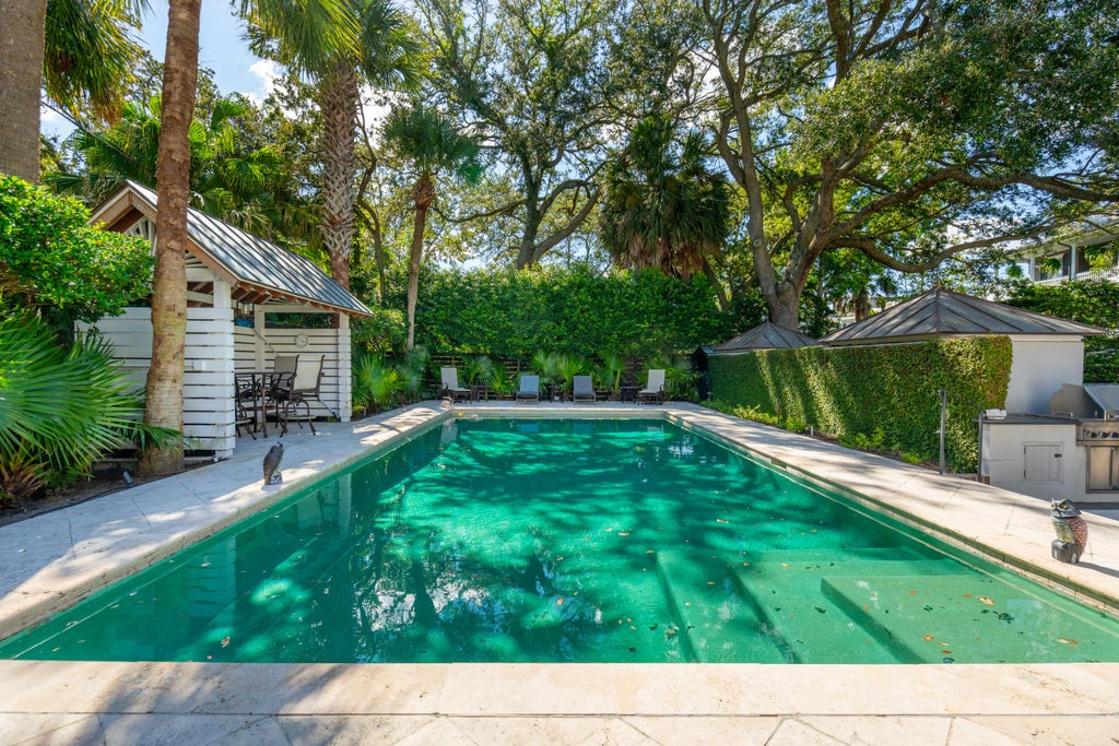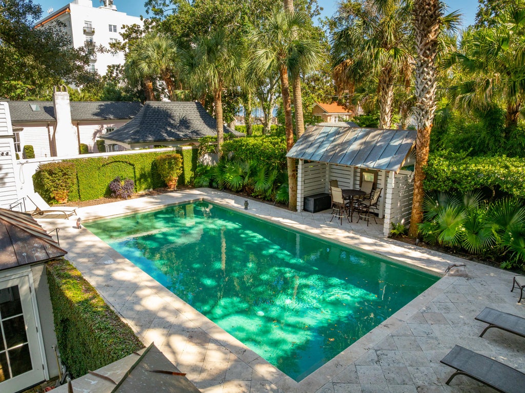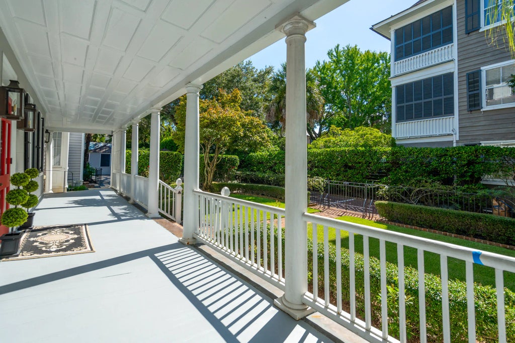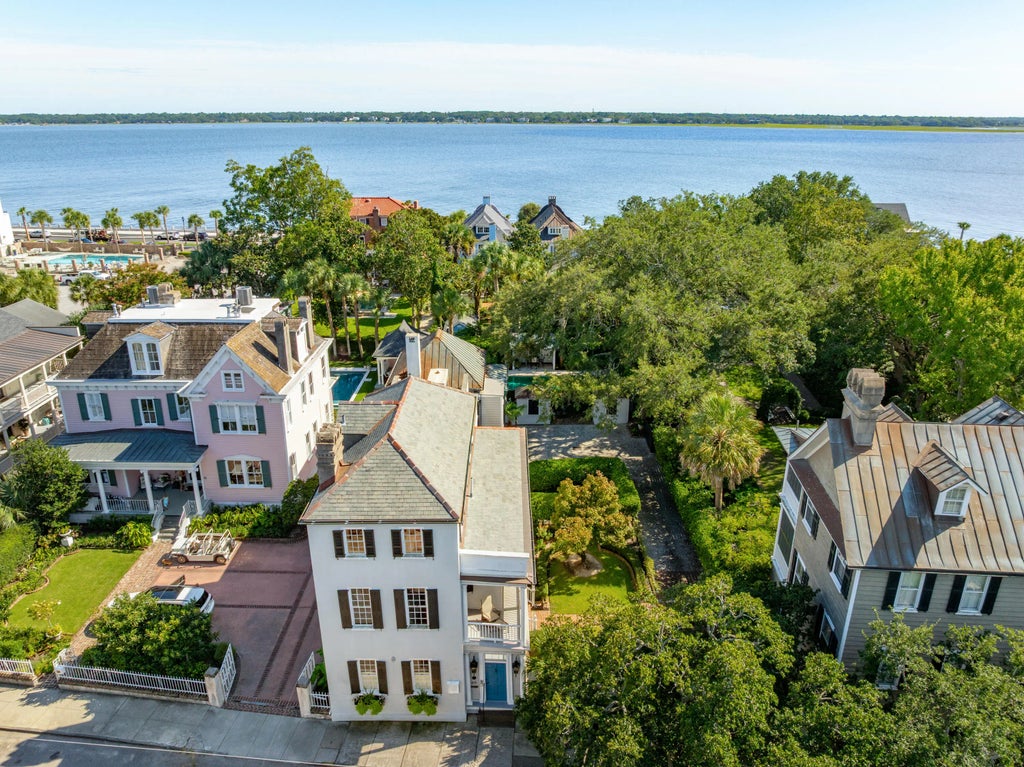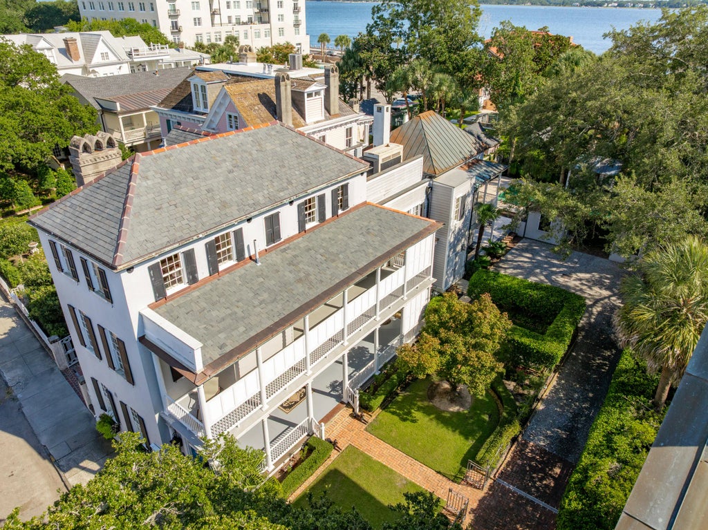 0.22 The Colonel James English House: Beautifully sited on a double wide lot within historic South of Broad. This recently restored double-piazza masonry home features impeccable details with fabulous modern updates, including a spacious kitchen/family space to the rear, plus an equally grand primary suite above with elevator access, marble bath finishes, and multiple closets with a separate dressing area.The generous garden offers exceptional light and space. The lot width allows for side by side gated parking and a large pool at the rear of the lush garden. Other amenities include an elevator from the parking area, and a new slate roof. 4 bedrooms, 3 full baths, and 2 half baths. 4,100 SQFT of interior space.No conservation easements have been taken on the property.
