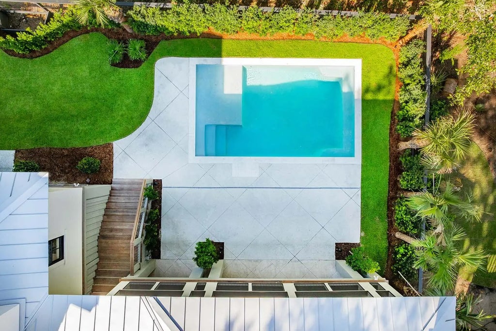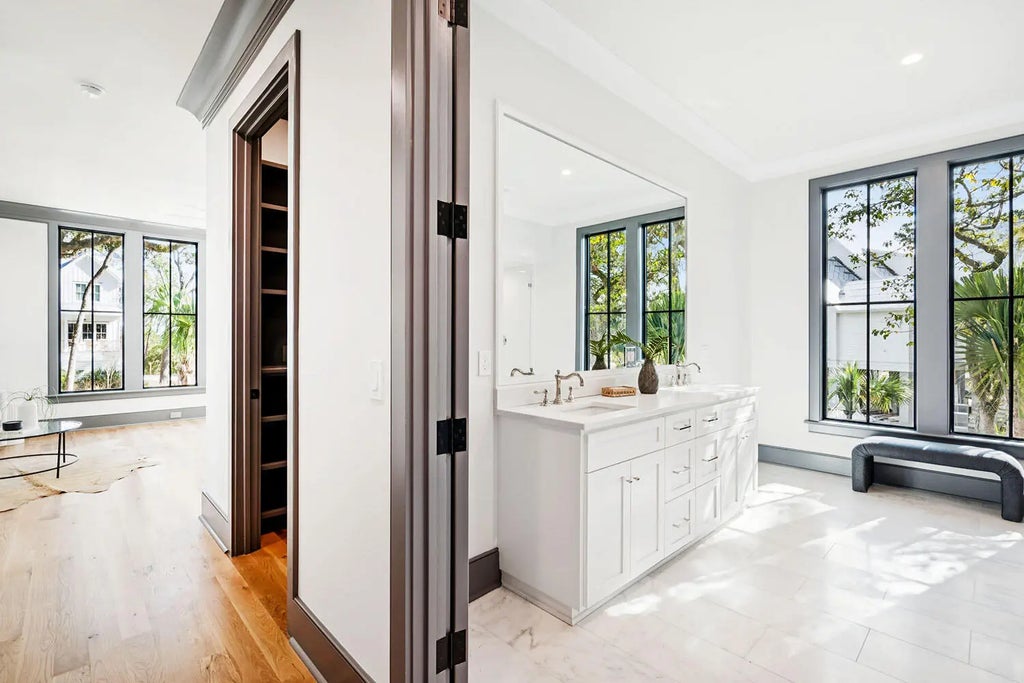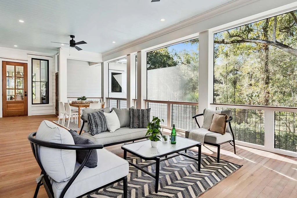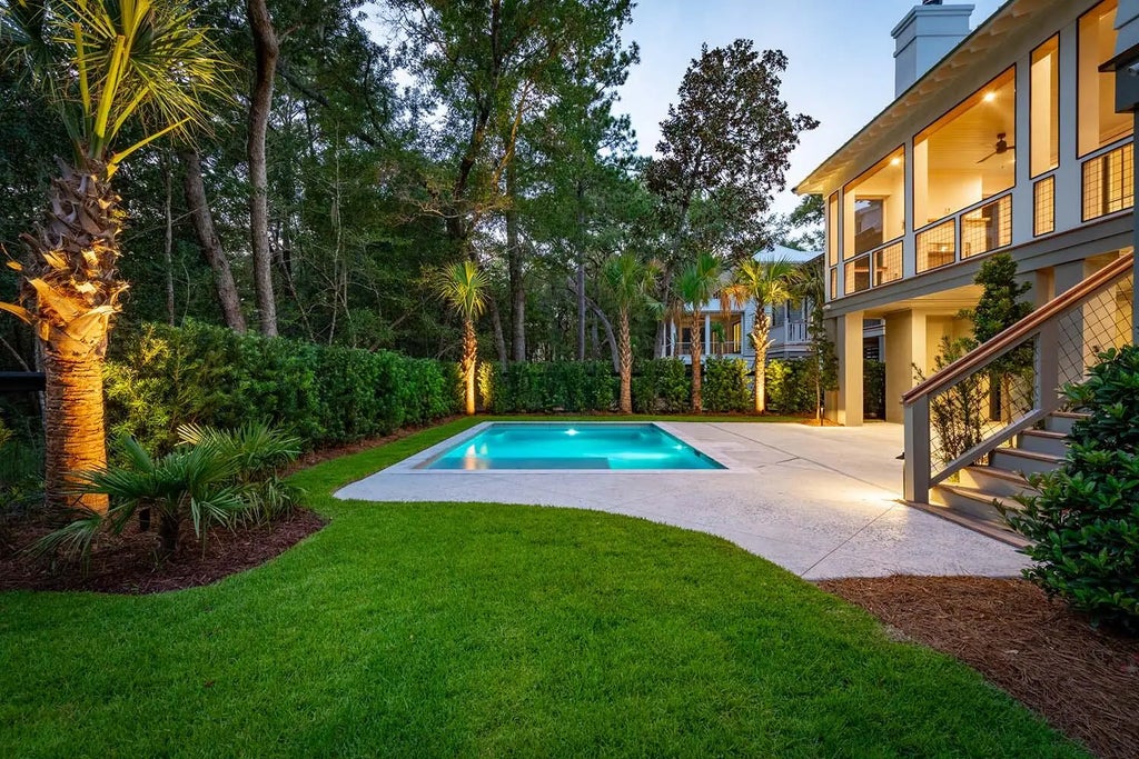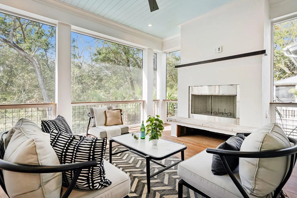 0.26 Welcome to 8258 Jack Island Drive by R3 Construction. From the curb you are greeted by a lush landscape design which includes a curated plant selection, large lawn panels, low and up lighting highlighting the oak canopies with a fenced in rear space. The salt void concrete surfaces with paver accents allow plenty of passable vehicle parking arrangements for you and your guests. The organized exterior is a precursor to what is in store for your interior living spaces.On the ground level, a covered poolside lounge extends the outdoor living area, perfect for entertaining. Additionally, the space off the pool lounge can be flexibly utilized as a home gym or a ground-level game room. The opposite enclosed ground level space has enough parking for 5 vehicles, or a combination of vehicles, bay boat, golf cart. etc. Entering the front of the home from an exterior IPE staircase through mahogany double doors, you are greeted by a foyer featuring floor-to-ceiling impact-rated glass windows that frame picturesque views of the saltwater inground pool and backyard oasis. The main level offers a large screened porch with a fireplace, providing ample space for both lounging and dining. Inside on the main level, the great room boasts a custom gas fireplace, 10-foot ceilings, and wide-plank white oak flooring with strategically placed floor outlets to accommodate various furniture arrangements. The primary suite, located on the main floor, offers a private owner's marbled bathroom with a linen closet and custom his-and-hers closets. The main bedroom, accessible via a private hallway, provides abundant natural light and views across to the dedicated neighborhood greenspace. The light-filled kitchen is equipped with a generous island, Wolf and Sub-Zero appliances, quartz countertops, custom cabinetry, and a spacious walk-in pantry. The owners entry to the home has a drop zone, custom shoe and cubbies, a coat closet, all to help you stay organized. The laundry room is located off the owners entry, here you will find cabinetry for storage, laundry folding countertop, your second full refrigerator, a stand alone ice maker, utility sink and more countertop space. Upstairs, you will find three large vaulted guest rooms, each with walk-in closets and private bathrooms. The upstairs vaulted living room is ideally suited for movie nights or casual family gatherings. Off this upper living room, there is a small office workspace complete with built-in features. Each detail in this home reflects intentional craftsmanship, from the natural stone and marble materials in the bathrooms, designer lighting, to the custom millwork with built-in storage spaces, including a three-stop elevator. This residence seamlessly blends timeless design with modern current luxury.