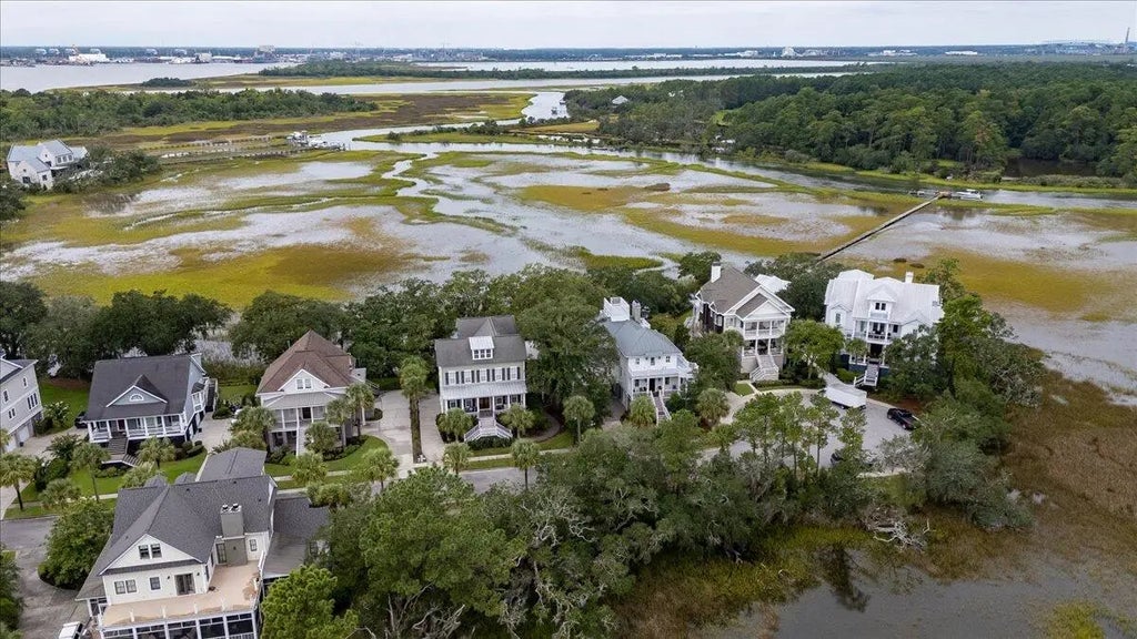 0.21 Welcome to your Lowcountry retreat, where breathtaking marsh views greet you from both the front and back of the home's four porches and widow's walk, offering a serene, nature-filled backdrop. From the widow's walk, enjoy a stunning glimpse of the iconic Ravenel Bridge--offering front-row seats to the 4th of July fireworks show.This elevated home features an expansive drive-under three-car garage with additional flex space--ideal for a home gym, workshop, extra storage, or even a golf cart bay. A private elevator provides convenient access from the garage to the main living levels.Inside, you'll find custom craftsmanship and luxurious upgrades throughout. The spacious living and dining rooms are wrapped in wall-to-wall windows, flooding the space with natural light and capturing thehome's breathtaking marsh views. Thoughtfully designed built-ins maximize storage while maintaining a clean, modern aesthetic. Cozy up by the gas fireplace, topped with an impressive 80-inch mounted TVboth of which convey with the sale. A cleverly designed home office includes a hidden door leading to a secure, built-in safea perfect blend of discretion and function. The chef's kitchen is a showpiece, featuring high-end Wolf appliances, designer finishes, and a sprawling walk-in pantry for seamless organization and prep space. The primary suite is located on the main floor, offering sweeping marsh views and private access to a serene porchideal for morning coffee or evening sunsets. The custom walk-in closet features a center island, abundant built-ins, and a hidden entry to the laundry room for added convenience. Upstairs, a generously sized guest suite features an en-suite bath and its own private porch with peaceful front-facing marsh views. A second-floor laundry chute adds a smart touch of everyday convenience by delivering clothes directly to the laundry room below. Toward the back of the home, a spacious bonus room sits beside an additional guest bedroom, complete with charming built-in bunk bedsperfect for sleepovers or visiting family. While the home is currently configured as three bedrooms, the bonus room offers a seamless option to create a fourth bedroom. Movie nights will never be the same with a projector and movie screenboth of which convey with the home, offering an in-home theater experience. The backyard is thoughtfully enclosed with sleek metal fencing designed to preserve the stunning marsh views. Reinforced, pet-safe aluminum provides added peace of mind, while a built-in dog door on the main level allows your furry companions easy access to the yard. This Jamison Howard / Max Crosby Construction home was built with uncompromising craftsmanship, blending elegance with enduring strength. Constructed with steel beam reinforcement and hurricane-proof windows, it offers both beauty and peace of mind. Brand new HVAC unit installed on the main level in December of 2025. Enjoy access to Daniel Island's exceptional amenities, including multiple resort-style saltwater pools, 25+ miles of scenic walking and biking trails, beautifully maintained parks, playgrounds, and community greenspaces. Residents also have use of boat landings, pavilions, and gathering spaces, with year-round events that make island living truly special.