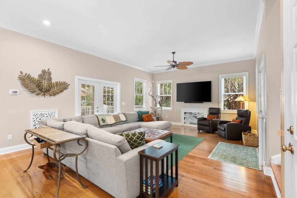 0.15 Not Your Average Bridle Trail Home!This thoughtfully modified floor plan offers a versatile and spacious layout, featuring three bedrooms, three updated bathrooms, an open-concept great room, dining area, and kitchen -- perfect for modern living and entertaining. A large bonus/family room provides flexible space for a media room, home office, or additional guest suite. Step outside to a generous rear porch and deck that overlook peaceful green space, ideal for relaxing or hosting gatherings.Built with durability and style in mind, the home boasts a Hardie Plank exterior and a metal roof for long-lasting quality. Ideally located within walking distance to the Lake House wellness/community center, the Racquet Club, Equestrian Center, Bohicket Marina, and Freshfields Village, thishome is part of the highly desirable Village at Seabrook community which offers residents access to a private pool, cabana, and oyster shed. Furnishings are negotiable. Seabrook Island residents enjoy an unparalleled lifestyle in a tranquil, private, oceanfront community that blends natural beauty with world-class amenities and top-tier security. Here, you'll experience a life filled with abundant social, recreational, and sporting opportunities. Among the many highlights are two renowned championship golf courses: Ocean Winds, designed by Willard Byrd, and Crooked Oaks, created by Robert Trent Jones, Sr. The island also boasts a state-of-the-art tennis center, pickleball courts, a full-service equestrian center, a comprehensive fitness and aquatics complex, and miles of pristine, unspoiled beaches. For dining, residents can indulge in a variety of seasonal indoor and outdoor restaurants, perfect for everything from casual lunches to elegant private events of any size. Conveniently located on Seabrook Island are both Freshfields Village and Bohicket Marina. Nestled between Seabrook and Kiawah Islands, Freshfields Village is a charming hub for upscale shopping, casual and fine dining, and family-friendly outdoor events. Bohicket Marina, a full-service facility, offers 200 wet slips, 114 dry storage slips, a delightful market, and an array of delightful restaurants and boutique shops. Whether you're looking to unwind or stay active, Seabrook Island offers the perfect blend of serenity, luxury, and adventure. Contribution to capital within P.U.D. upon the initial sale and resale is 1/2 of 1% of the sale price. Buyer responsible for a $250 transfer fee at closing. Purchase also requires membership to the Seabrook Island Club.