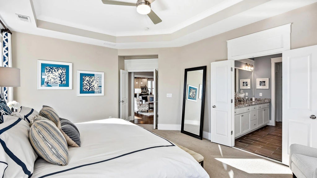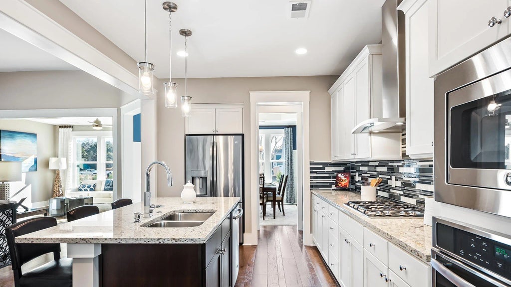 0.21 The Hickory model home is being sold professionally furnished and decorated with 3 Bedrooms, 3 full and 1 half Baths, Dining Room, a triple window Breakfast Nook, sunroom with 8ft patio extension, and a 2-car Garage with a 4ft extension. The gourmet kitchen features a Gas Range, granite countertops, two-tone cabinets, pots & drawers, and Linear Mosaic Colorwave Evening Mixes tile backsplash. The Great Room is the anchor of the home and includes a gas fireplace. The Owner's Suite has a tray ceiling, a wrap-around walk-in closet, large shower, soaking tub and double vanity. The bonus room has a walk-in closet and full bath. On a premium lot with no homes across the street, this is the LAST model available for sale in Cresswind Charleston!