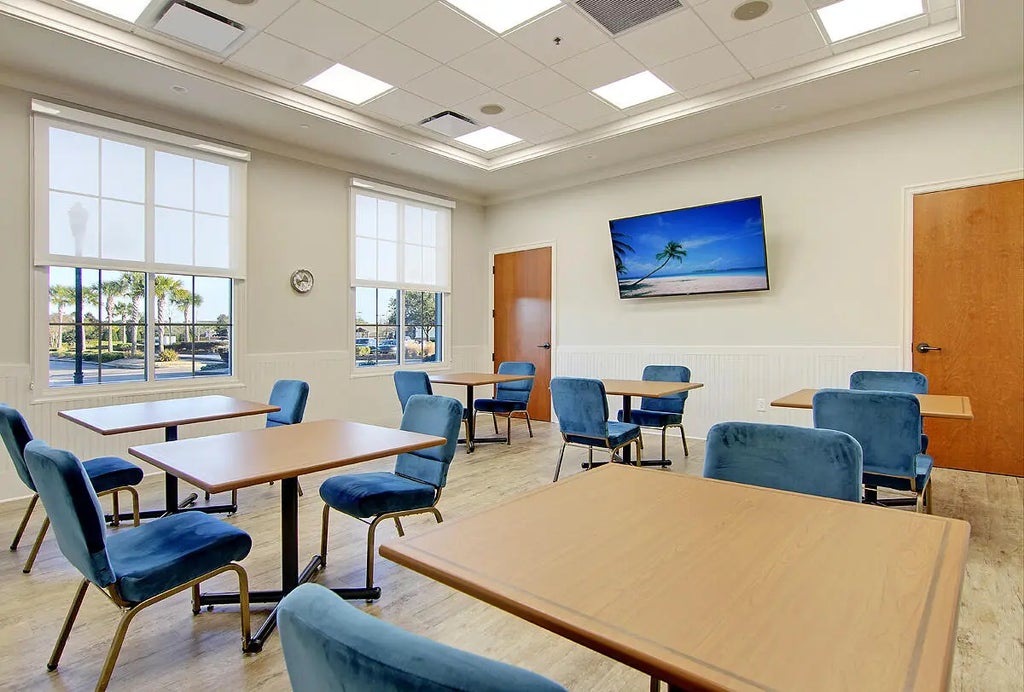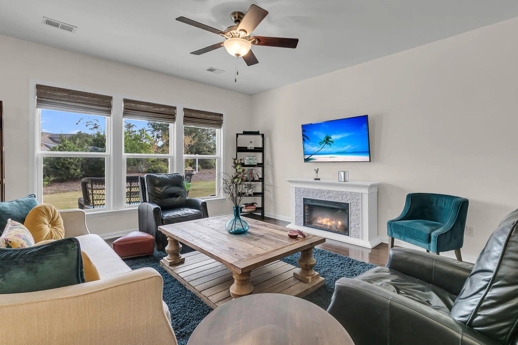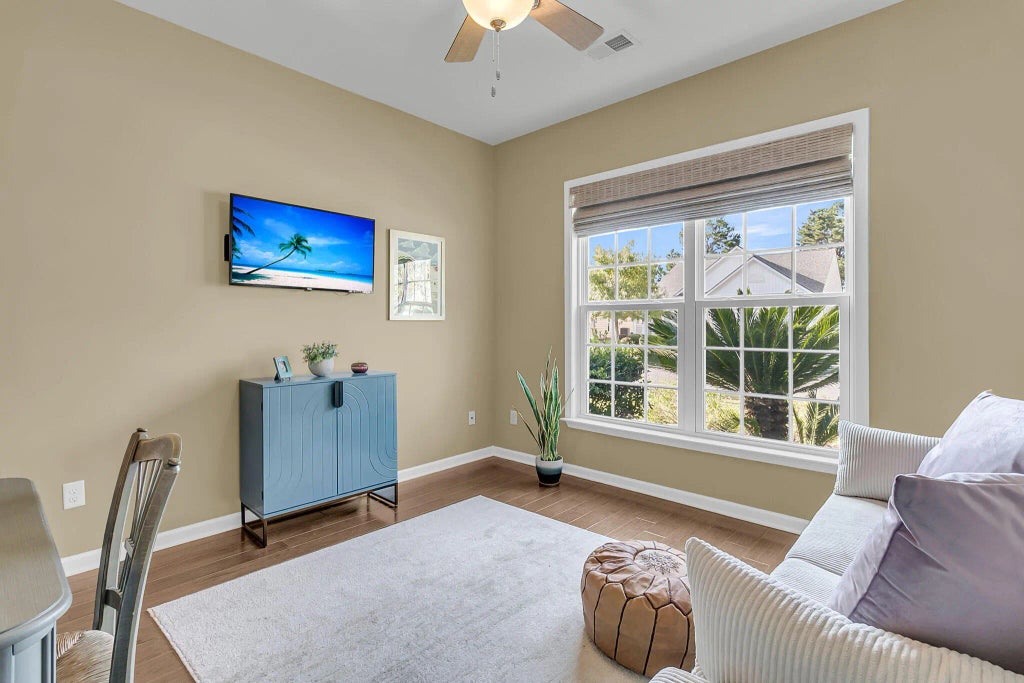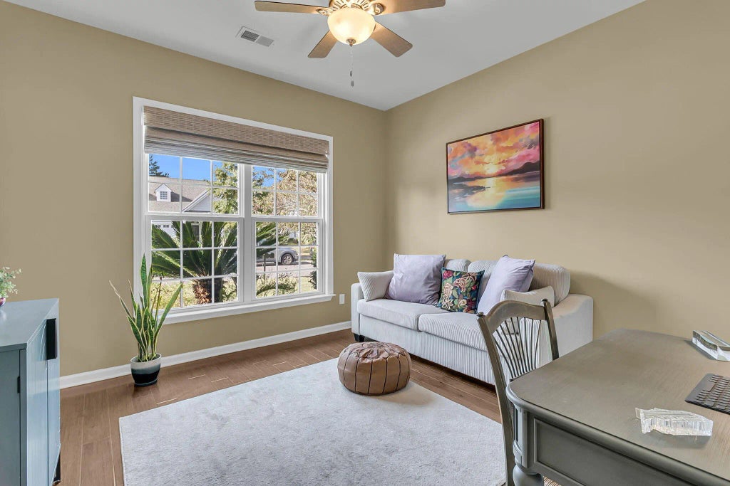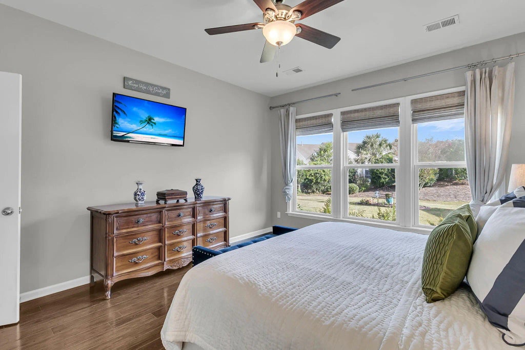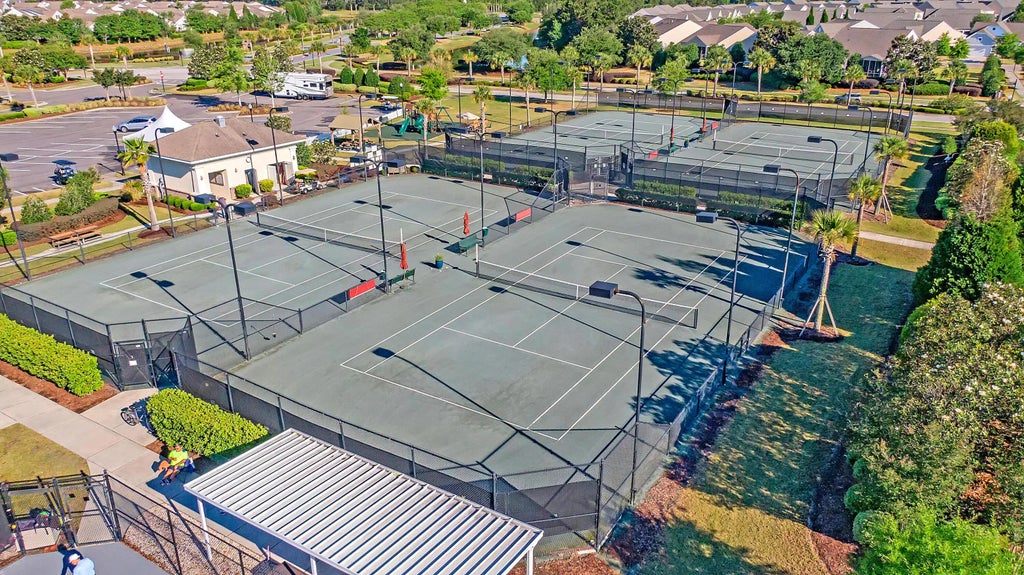 0.18 Beautiful Abbeyville home with 2 bedrooms, 2 baths, and French door office situated on a lovely private lot and offering many high-end upgrades. Just two blocks from the 20,000 sf amenities center, you'll have easy access to this award-winning community's social center. The neighborhood's mature landscaping provides a welcome difference from new construction. An inviting curb appeal with enhanced landscaping and flagstones welcomes you. Step inside to find five-inch hand scraped wood floors extending throughout all living areas and bedrooms - NO CARPET in home! The open concept floor plan is highlighted by the island kitchen with white cabinetry, granite countertops, stainless steel appliances with five-burner gas cooktop, built-in wall oven & microwave, and included refrigerator, customsubway tile backsplash, pendant & under-cabinet lighting, and adjacent breakfast nook. The spacious living area sits directly in front of the kitchen, making a great entertaining space. Step outside to find a three-season room - with tile floors and retractable vinyl windows added to the screened-in porch, this is an incredible space to enjoy year round! This room and the outdoor patio overlook your own private oasis, with trees and privacy landscaping both directly behind and to one side. Back inside, the Owner's Suite includes an ensuite bath with double sink granite vanity and built-in ladies vanity, a brand new custom walk-in shower installed in 2025 with 12" x 24" tile walls, penny-tile floors, and frameless shower door, and a spacious walk-in closet. The guest bedroom and a full bath sit down their own hallway on the opposite side of the home, providing ample privacy for guests and owners alike. A French door office is a great third space that can be used as an office, den, or third bedroom. The laundry room offers tile floors, included washer & dryer, overhead cabinetry, a built-in sink, and extra storage area. A mudroom leads to the garage, which is extended four additional feet in length and has overhead storage. Don't miss out on this incredible opportunity to own a move-in ready home in the area's premier 55+ neighborhood! The 20,000 square foot amenities center includes includes indoor and outdoor pools and hot tubs, a fitness center, ball room, activity rooms, pickle, tennis, and bocce courts, concert pavilion area, fishing pier, fully stocked ponds throughout the neighborhood, and a dog park. With a full-time lifestyle director, over 100 chartered clubs, and busy calendar of events, you'll be living your BEST retired life in Del Webb Cane Bay! Del Webb Cane Bay is privately gated and located just minutes from a Publix grocery store, medical facilities and hospital, restaurants and shops. Don't miss out on this incredible home and neighborhood opportunity!