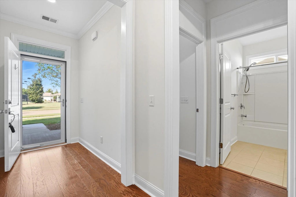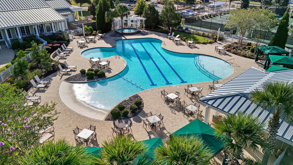 0.17 LOCATION, LOCATION, LOCATION!!! Beautiful single-level home located in the highly desirable Cresswind community at The Ponds, directly across from the amenities center. This well-designed floor plan features a spacious foyer, soaring ceilings in the great room, and an open kitchen with granite countertops, upgraded cabinetry with roll-out shelving, a pot-and-pan drawer, and premium appliances including a gas range, convection oven, and built-in microwave. A bright sunroom provides additional living space to enjoy year-round.The owner's suite offers a large bedroom, a spa-like bath with a glass-enclosed shower, and a generous walk-in closet with direct access to the laundry room for convenience. Secondary bedroom is separated for privacy.Upgrades include hardwood floors throughout, tankless gas water heater, full gutter system, and lawn irrigation. The back patio is perfect for outdoor entertaining, and the two-car garage offers custom shelving for storage. HOA covers lawn maintenance. Cresswind amenities include a clubhouse, pool, pickleball, tennis, and bocce courts, walking trails, and a YMCA within the neighborhood.