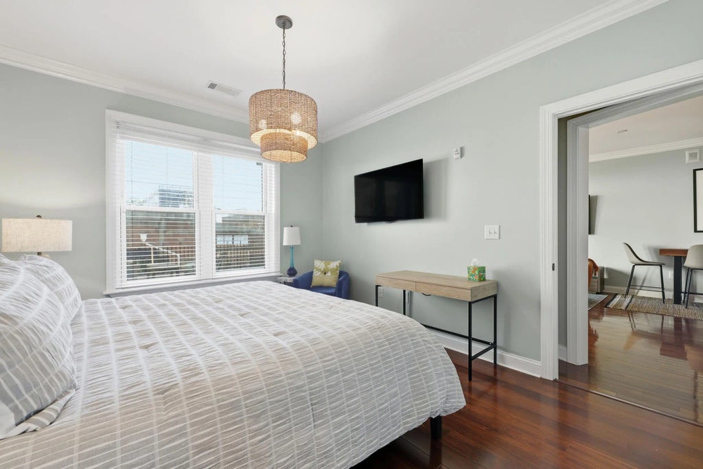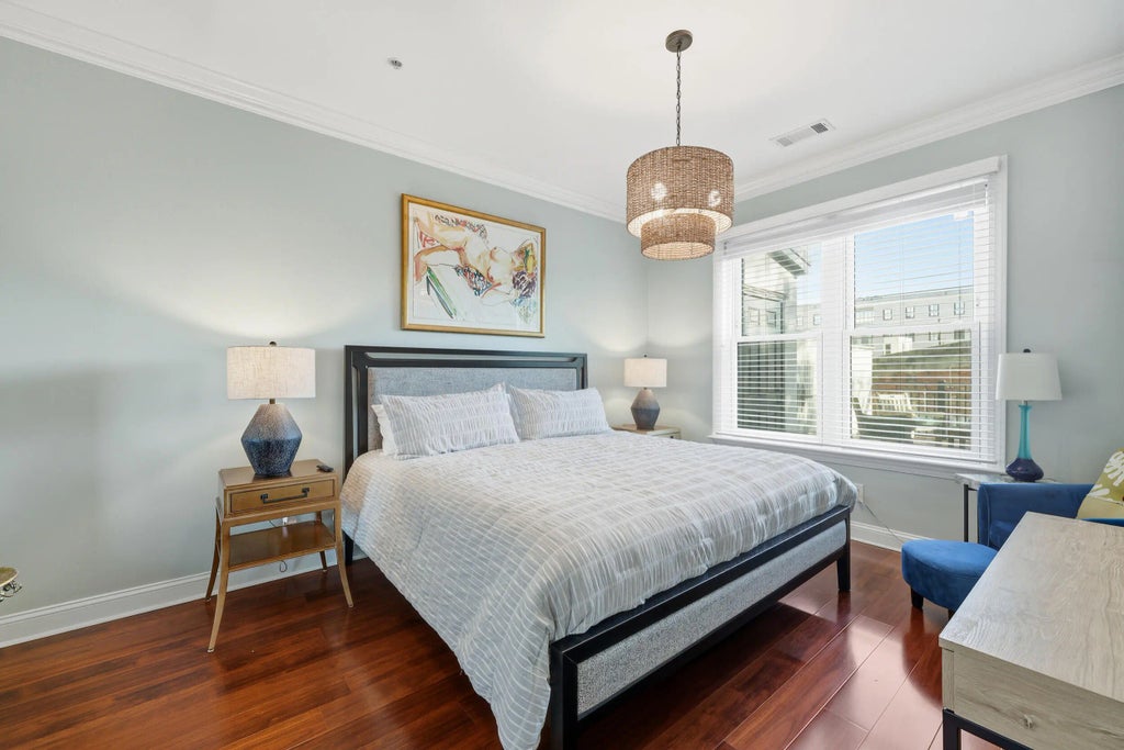 0.01 Rare find in the very heart of historic Charleston. Incomparable location, EXTRA LARGE PRIVATE TERRACE, and private gated in-building parking, this condominium is everything that makes Charleston the leading year round destination. The kitchen granite countertop is extended for barstool seating, and all appliances are stainless steel. The unit has hardwood floors throughout. Each bedroom is on opposite sides of the family room, offering more privacy. The master bedroom has an ensuite bathroom with tile floor, soaking tub, separate tiled shower, double vanity sink and spacious walk-in closet. The second bedroom offers a walk-in closet and a full bathroom right outside the door with tile flooring and tiled tub. Head up to the newly-renovated rooftop patio offering panaramic views.