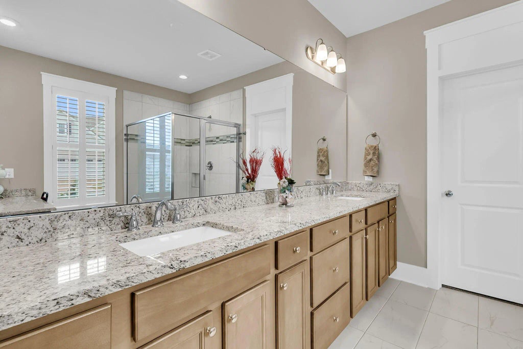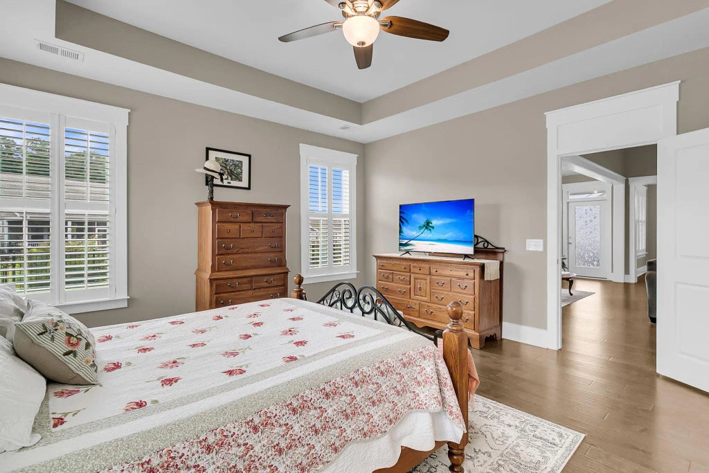 0.17 Lock-n-Leave! Stunning! Like-new! Discover this nearly new, immaculate 4-bedroom, 3.5-bath home located just one block from the award-winning Cresswind Community Center in the highly sought-after 55+ neighborhood of The Ponds! This home offers beautiful curb appeal, a fenced backyard, and a floor plan designed for both comfort and entertaining. Step inside to find gorgeous hardwood floors, craftsman trim, soaring ceilings, and 3'' plantation shutters throughout. The chef-inspired kitchen is a showstopper, featuring an island, gas cooktop, granite countertops, white cabinetry, stainless steel appliances, and a spacious walk-in pantry. The kitchen opens seamlessly to the oversized family room with a gas fireplace, creating a warmand inviting space for gatherings. A sunroom with a wall of windows fills the home with natural light, while a formal dining or flex room offers versatile options for entertaining or relaxing. The luxurious primary suite boasts a tray ceiling, ample space for a king-sized bed and furniture, and an incredible spa-inspired ensuite complete with an oversized tiled shower, dual vanities, a separate makeup vanity, elegant tile floors, and a massive walk-in closet. Two additional bedrooms share a stylish Jack-and-Jill bathperfect for guests or for use as an office, exercise room, or craft space. Upstairs, a fourth bedroom with dual walk-in closets and its own private full bath provides even more flexibility as a bedroom or second living area. Step outside to your private fenced backyard oasis, featuring a screened-in porch and patio ideal for grilling, relaxing, or entertaining. Just a short stroll to the Cresswind Community Center, where you'll enjoy a state-of-the-art fitness area, yoga/dance studio, art room, resort-style pool, hot tub, bocce ball, tennis, and pickleball courts. Plus, residents have full access to all The Ponds' amenities, trails, and social activities. This better-than-new home has it all-location, luxury, and lifestyle. Don't waitschedule your showing today, this one will not last!