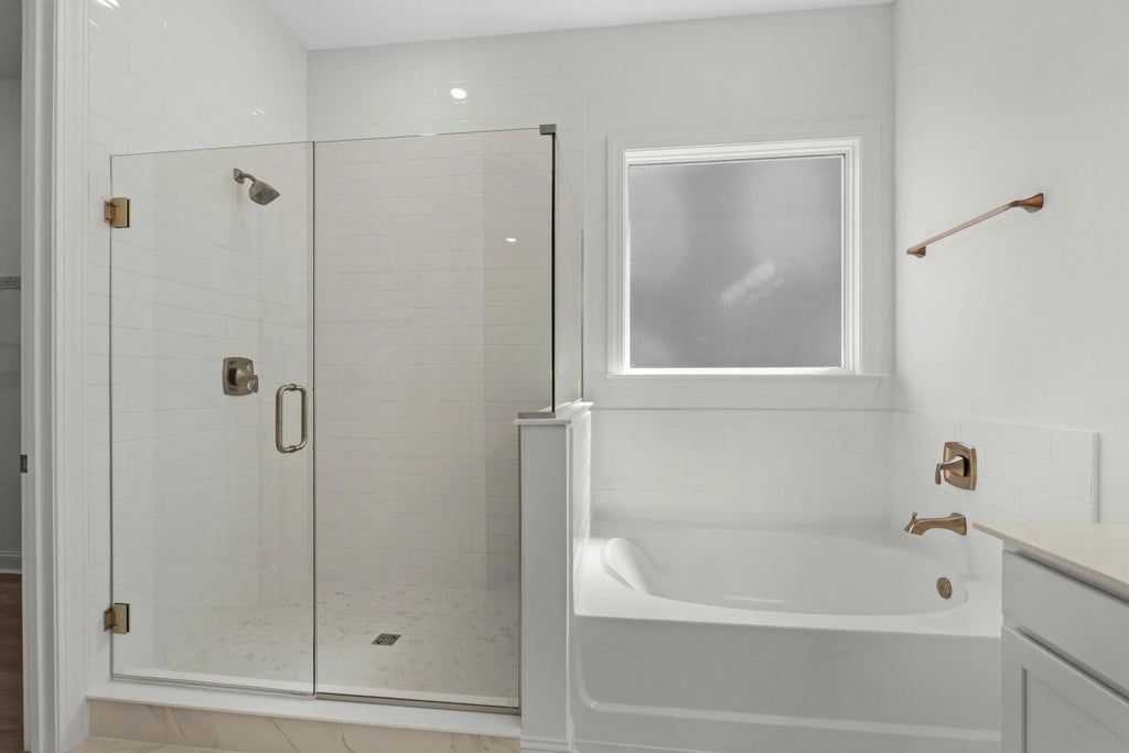 0.22 The Harrington gives you more space in all the right places, with 2,700 sq. ft. designed for comfort and flexibility. This 5 bedrooms makes iit a smart fit for households of any size. The first-floor owner's suite, tucked at the rear for privacy, includes a spa-like bath with soaking tub and step-in shower. A front flex room has been converted to become a second suite. The open-concept main level features 9-foot ceilings, abundant natural light, and a center island kitchen with walk-in pantry. The family room flows to a covered porch, with a fireplace for year-round enjoyment. Upstairs, three bedrooms share a full bath.