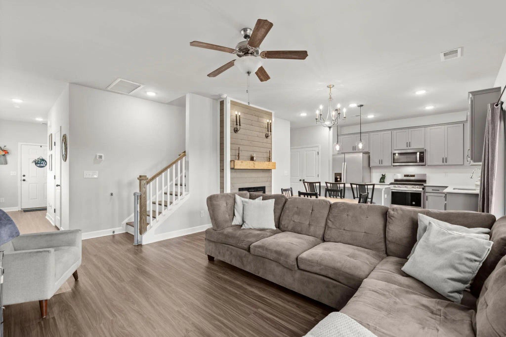 0.17 Welcome to 179 Lucca Drive, located in the sought-after Woodwinds section of Cane Bay Plantation! This stunning 3-bedroom, 2.5-bath Jackson floor plan offers the perfect blend of comfort, style, and functionality. The open-concept layout features a beautifully designed kitchen with painted cabinetry, quartz countertops, a stylish tile backsplash, and a large pantry with extra storage tucked under the stairs. The spacious living area is filled with natural light and centered around a custom shiplap fireplace that adds warmth and character.Upstairs, you'll find all three bedrooms and the laundry room for ultimate convenience. The primary suite includes a tray ceiling, dual vanities, and a luxurious tiled shower with a bench seat and double niche. Step outside to your screened-in porchperfect for morning coffee or evening relaxationand enjoy a private backyard setting. Located in one of Cane Bay's most desirable communities, this home offers access to miles of walking and biking trails, community pools, and playgrounds. Just minutes from shopping, dining, and award-winning schools, this home combines low-maintenance living with the lifestyle Cane Bay is known for.