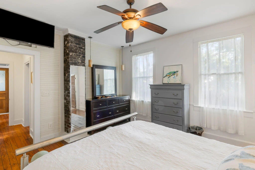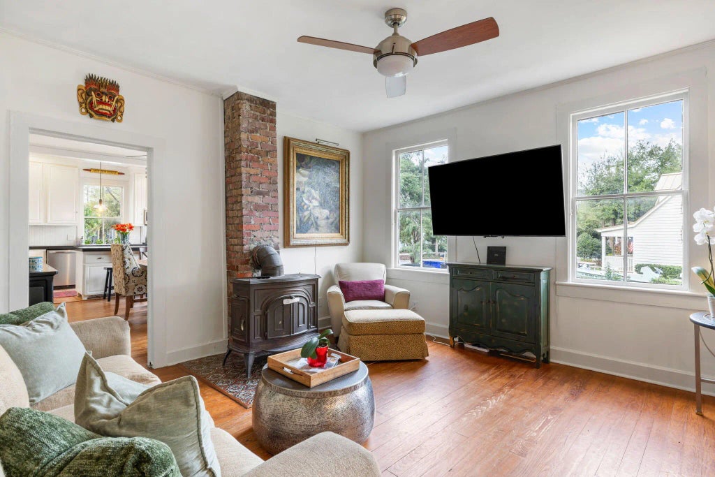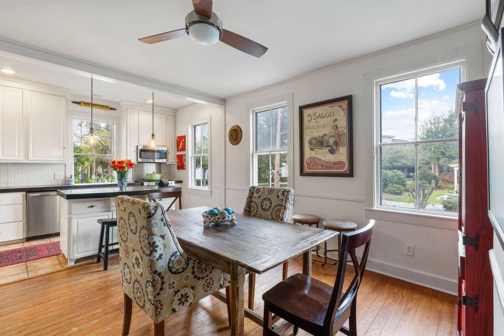 0.29 Charming historic home heart of Old Mount Pleasant offering so much character w 3/4 bedrooms, 4 full baths, high ceilings, original stained glass, large windows throughout providing an abundance of bright natural light, & beautiful antique pine floors. Ideally situated for walking/biking/golf cart riding to Shem Creek local shops, acclaimed restaurants, top-rated schools, shopping, tennis, pickleball, grocery stores & more. This home also offers easy access to Historic Downtown Charleston & nearby pristine beaches. Amazing floor plan w large eat-in kitchen & center Island perfect for entertaining & gatherings. Spacious downstairs primary bedroom w custom-built walk-in closet & primary bathroom w luxurious oversized soaking tub, large walk-in shower, & beautiful limestone tile.Charleston tax records show the home to be circa 1955. It is believed to have been built around 1912 as a schoolhouse near where the current Moultrie Middle School is located & was relocated in the 1950's to the current King Street address. Priced according to condition & seller prefers to sell AS-IS; homeowner's warranty can be transferred. Lot size of .29 acre is in X flood zone w no flood insurance required & offers plenty of room for additions, pool, garage, garden, etc. Experience the best of Old Mount Pleasant livinghistoric charm, unbeatable location, & endless potential.