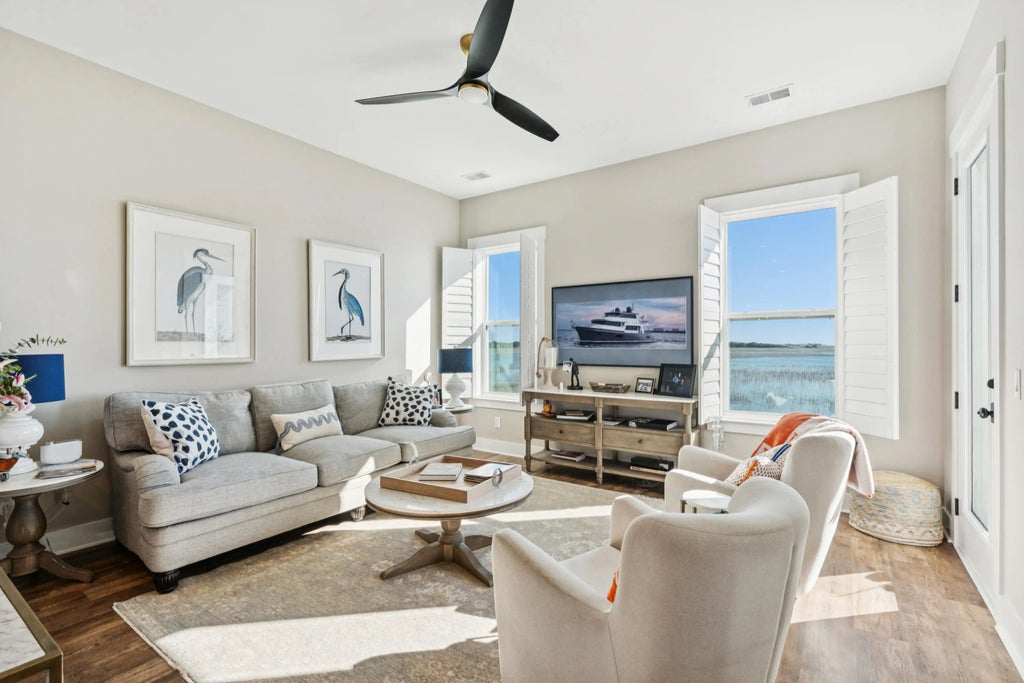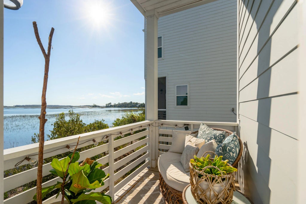 0.07 Amazing unobstructed views of both Folly Beach and Folly River from your rooftop deck. Views of the waterfront can also be enjoyed from every window in the home. Explore the natural surroundings with easy water access via the community dock, and Folly Beach is just a ten-minute bike ride away! Nestled on Bowen Island and just minutes to Folly Beach, this townhome, built in 2022 with a charming board and batten elevation and brick pavers. The elevated construction accommodates a two-car garage with ample storage for a golf cart, bikes, kayaks and more. The property has been updated and a list of features are noted in the documents section.The first floor of the home is bright and inviting with 10-foot ceilings, 8-foot doorways, updated lighting, plantation shutters and modern trim casing around doors and windows. The gourmet kitchen is complete with gas range and stainless-steel hood, double wall ovens and an expansive shiplap island with quartz counters. White cabinetry reaches the ceiling, and the oversized pantry provides even more storage space. While the island offers casual bar top seating space, formal dining space is located at the front of the home. An office (presently used as an exercise room) is next to the living room. The living room has access to the main level porch overlooking the marsh while the dining area has its own porch on the front of the home. A powder room completes this level. The second floor contains three bedrooms, each with tray ceilings as well as the laundry facilities. The primary bedroom is large with a custom California Closet system and the ensuite offers a quartz vanity with dual sinks and a large walk-in tiled shower with bench. The two guest rooms enjoy marsh views and one of the rooms has direct access to the guest hall bathroom with tile surround bathtub. Designed for maximum enjoyment of the surrounding marsh, the third-floor rooftop patio offers your own slice of paradise to enjoy anytime. Sliding doors open to the oversized deck with plenty space for outdoor furniture. The additional living space includes a full bathroom as well as a beverage cooler and dry bar. This property has an elevator shaft in place to all three floors which optimized additional storage with custom California Closet Systems. Access the home via the interior stairwell on the garage level. The home is in excellent condition and has been well maintained. Conveniently located to shops, restaurants, Harris Teeter, James Island library, county park at the end of Folly Beach as well as the brand-new Folly Pier.