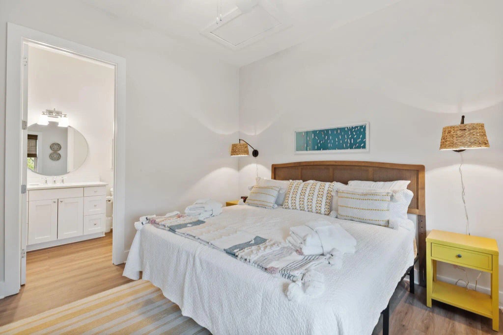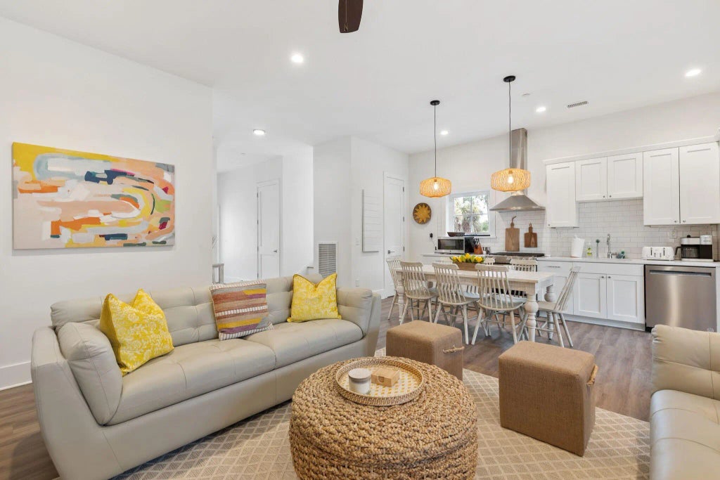 0.24 Lemon Twist is a newly constructed four-bedroom, four-bathroom home located just one block from Center Street and a short stroll to the beach. Part of the coveted Sea Breeze Collection, this beautifully designed property combines modern luxury with coastal charm and a prime location, making it an ideal primary residence, vacation home, or investment property.The open-concept living and dining areas feature a relaxed coastal design with high ceilings, abundant natural light, and seamless indoor-outdoor flow. A gourmet kitchen is equipped with modern appliances, generous counter space, and sleek cabinetry, creating the perfect setting for cooking and entertaining.The home also offers private parking for up to seven vehicles, smart-home features, and modern security for convenience and peace of mind. Located just steps from Center Street and a short walk to the beach, Mimosa Manor allows easy access to the best of Folly Beach living. Downtown Charleston is only a short drive away, providing world-class dining, culture, and entertainment within easy reach. Fully furnished and move-in ready, Mimosa Manor combines modern design, energy efficiency, and coastal charm in one exceptional homeperfect for those seeking a luxurious, low-maintenance lifestyle by the beach.