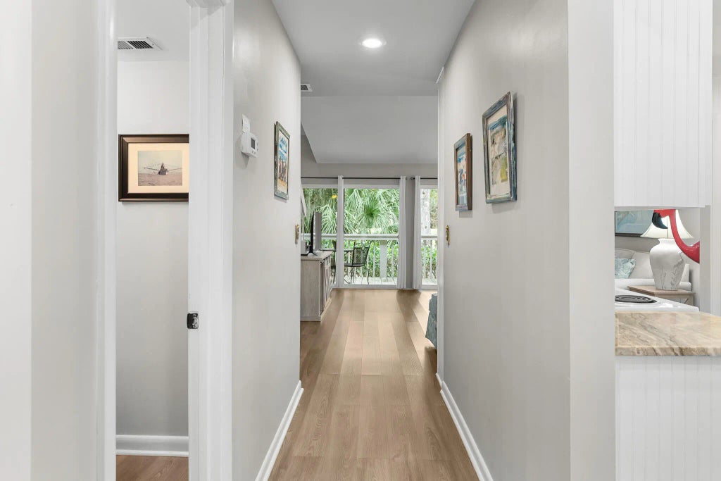 0.02 Tucked along a quiet corridor of Seabrook Island, this charming one bedroom, one and a half bath townhome offers the perfect blend of privacy, light, and Lowcountry tranquility. As an end unit, it enjoys a rare sense of seclusion, set away from the bustle of parking areas and walkways, yet moments from all that Seabrook has to offer. Inside, sunlight filters through the windows, illuminating spacious living areas framed by majestic oaks, swaying palmettos, and tranquil views of the Ocean Winds golf course. Whether you are enjoying morning coffee on the porch or unwinding after a day on the beach, every moment here feels like a retreat into nature. Currently on the rental program with an active short term rental license, this property offers exceptional flexibility.Imagine making it your piéd-à-terre, full time residence, or a continued rental. Many thoughtful updates make this a low maintenance purchase, including a freshly painted exterior in 2025, recently painted interior, and a beautifully updated kitchen completed in 2023. See the feature sheet for a full list of improvements. The townhome will convey turnkey, with just a few exclusions, ready for you or your guests to start enjoying Seabrook Island living from day one. Seabrook Island, nestled along the South Carolina coast, encompasses 2,200 acres of breathtaking natural beauty, inviting residents and visitors to embrace a tranquil coastal lifestyle. With its lush maritime forests, serene marshlands, and pristine beaches, Seabrook Island offers a sanctuary where generations have crafted enduring memories in a peaceful, semi-tropical setting. This private oceanfront destination boasts the prestigious SIC Audubon Sanctuary Golf Courses and holds the distinction of being an Audubon International Certified Sustainable Community. The island's commitment to preserving its natural habitat ensures that its serene sanctuaries thrive. Members of the Seabrook Island Club enjoy exclusive access to world-class amenities, including two championship golf courses, the Willard Byrd-designed Ocean Winds and the Robert Trent Jones, Sr.-designed Crooked Oaks. Additionally, there's a tournament-grade tennis center, pickleball courts, an equestrian center, fitness facilities, and aquatic options for leisure. Residents savor 4 miles of unspoiled beaches, along with diverse dining venues, shopping opportunities, and an array of social clubs and activities. Freshfields Village beckons with its exceptional shopping experience and a variety of dining options catering to every palate. For boating enthusiasts, Bohicket Marina stands as a full-service haven, offering 200 wet slips, 114 dry storage slips, a charming market, and delightful waterfront restaurants. Please note that the purchase of any property on Seabrook Island requires membership in the Seabrook Island Club. Additionally, buyers should be aware of the fees associated with the Seabrook Island Property Owners Association capital fund which is ½ of 1% of the purchase price as well a $250 transfer fee payable to SIPOA. Many regimes have capital contributions.
