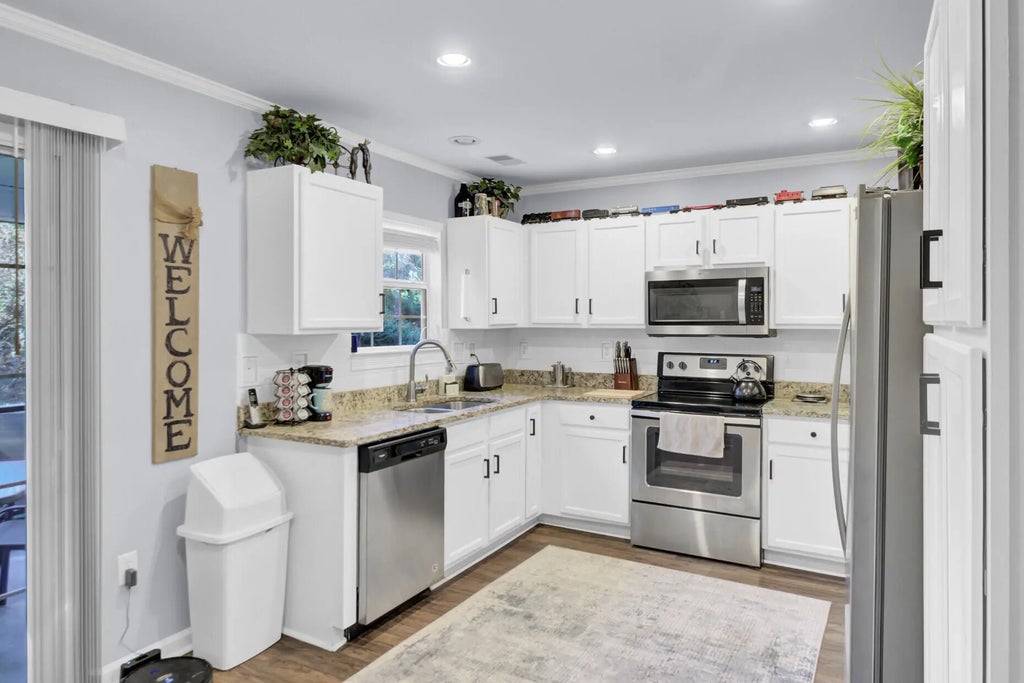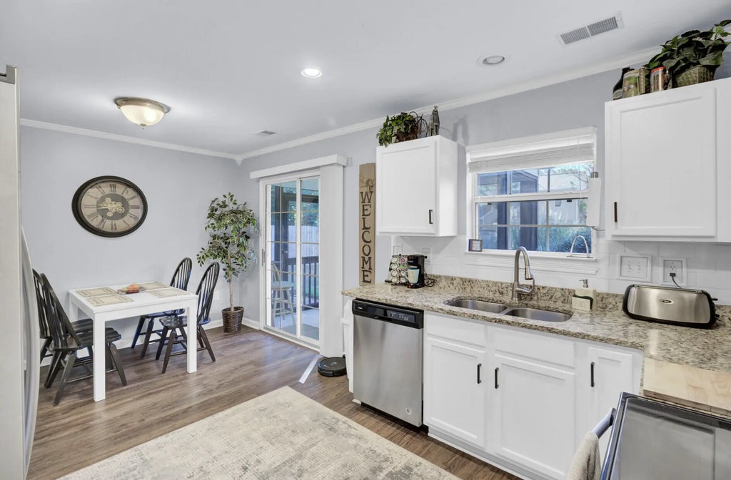 0.12 Welcome to this charming 4-bedroom, 2.5-bath home nestled in the desirable Peninsula subdivision. The bright and open living room greets you with an abundance of natural light, creating a warm and welcoming atmosphere.Step further into the home to find the updated eat-in kitchen, complete with granite countertops, stainless steel appliances, ample cabinet and counter space, and a stylish tile backsplash--perfect for both everyday meals and entertaining.The primary suite, conveniently located on the first floor, offers a relaxing retreat and features a tub/shower combination. Upstairs, you'll find three additional bedrooms that share a full bath, providing plenty of space for family, guests, or a home office.Enjoy the outdoors from the screened-in porch, ideal for morning coffee or evening gatherings, or step out onto the additional patio area overlooking the spacious backyard. Residents of The Peninsula enjoy access to community amenities including a neighborhood pool and playground. Conveniently located just minutes from local shopping and dining and a short drive to Charleston's beaches and historic downtown, this home offers the perfect blend of comfort, convenience, and Lowcountry charm. Use preferred lender to buy this home and receive an incentive towards your closing costs!