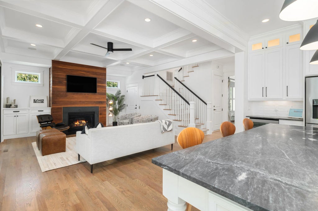 0.25 Stylish, VERSATILE family home:Front room - Step away from the rest of the family to read, chat on the phone, have a private conversation during a party, or work in a sun-drenched office closed off with one-of-a-kind custom wood doorsORBedrooms are plentiful in this home; however, this enclosed room has a closet and multiple windows to act as a bedroom, guest room, or a first floor playroom in a pinch.Kitchen/Butler's Pantry/Dining Room/Breakfast Room - New high-end appliances, timeless design, storage galore, and room for a massive Thanksgiving spread make these connected kitchen, dining & breakfast spaces convenient and cozy for basic meals as well as fancy feasts. Baking with the kids or impressing your coworkers with a gourmet meal is a piece of cake in this home.Back porch - Host a bubbly brunch or a football feast for family & friends in this spacious, beautifully lit outdoor living room. There's plenty of space for comfortable couch seating AS WELL AS a table for 6. The BEST fall features...a gas ignition wood-burning fireplace to set the mood & a gas grill (hook-up) just steps away. Living room - We all love gathering around a bright white shiplapped fireplace on a cool autumn evening on DI, but how about a warm, walnut-wrapped surround instead? Additionally, this living room can be furnished with a sofa & a handful of accent chairs OR dual sofas with a coffee table in between - your pick. BEST feature...this cozy space opens out onto the expansive back porch via a modern black-framed accordion door, doubling the space for a special event or a football Sunday with friends, 2 tvs, and 2 fireplaces. Primary bed & bath - How would you like a private retreat looking out over the waters of the Wando? You're on the second floor away from the clatter of the kitchen and the movie nights in the living room. Ramp up the mood with a glass of wine under the stars on the attached porch. Additionally, the spacious primary bath is tied for second with its free-standing soaker tub and frameless glass shower. Commercials have been shot in this space; it's so beautiful. Jack 'n Jill bedroom suite - If you have two "littles" or more, this is a practical solution. They're even on the same floor as Mom & Dad. However, teens or grandkids have another option - a cozy wood-paneled media room attached via a spacious bathroom to a separate shiplapped bedroom minus the distraction of their games, screens & the "dreaded blue light." Elevator - If you LOVE carrying groceries up to an elevated home, raise your hand! (Crickets!) The elevator in this home allows you to load your groceries in the rain-protected space of your garage and ride seamlessly up to the main floor. Grandmas & grandpas with their luggage or housekeepers with their supplies also appreciate the ease of traveling from the ground level to the first OR second level of this home in comfort. 3rd story suite - Spoil your teens, yourselves, or your guests with this DI "penthouse." Three stories up you have the most amazing view of the Wando River. Lovely angular walls and ceilings grace this suite that can be utilized as a teen pied-a-terre, a sky-high primary suite, or an exclusive guest getaway. The large private balcony with views of the Holy City skyline, a full bath, and a separate sitting area make this space one-of-a-kind in Smythe Park. Garage - It's likely you have a lovely multi-car garage, but how would you feel about a 5-bay garage with room for a home gym and storage to spare? Additionally, this Wando View garage has been fully encapsulated to provide a climate-controlled environment amidst Charleston's damp winter & summer days. Your holiday decor and sports gear are well-protected from the elements in this enormous dry space. FROG - A large studio apartment (644 SF not listed in total square footage) with abundant windows and space - that is how many would describe this spacious room, full bath, and full kitchen above the detached garage. It's perfect for a separate office space, a mother-in-law's suite, or an independent living space for a college-aged kiddo. Or, if you want a private air-conditioned space for working out, creating art, or hosting book club, this spot hits the mark. Lot/park - Mature trees and foliage adorn this generous lot lying adjacent to a quiet DI park. In addition to its situation on a corner, the home overlooks a gorgeous marsh that houses only deer, rabbits, and other DI wildlife. Never will your view be blocked by another home, and your backyard has room for a playset, a garden, and/or a fabulous swimming pool only you can imagine.. Please see pool plan and upgrade list in documents section.