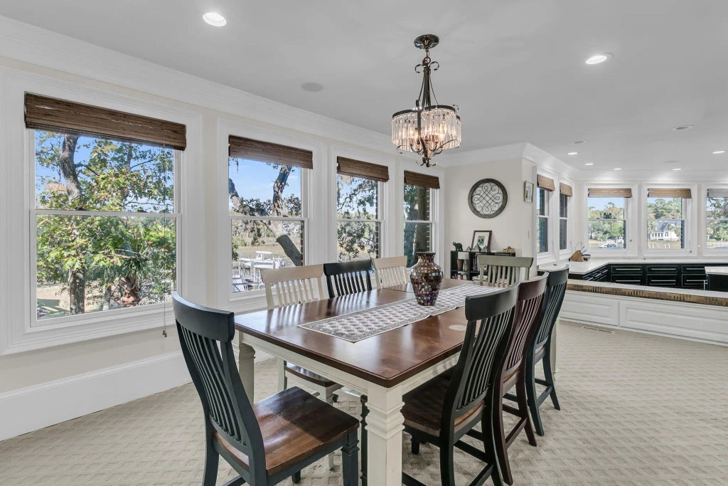 0.31 This magnificent 7,000-square-foot custom estate in Park West truly has it all--an exceptional location, breathtaking views, and every luxury imaginable. From the moment you step inside this stunning all-brick residence, you're greeted by soaring two-story windows that frame sweeping vistas of the tranquil marsh and shimmering water beyond. The elegant formal living room offers an inviting space for grand entertaining, with enough room in the foyer for a baby grand piano. Nearby, the formal dining room is enhanced by a beautifully detailed coffered ceiling, setting the tone for refined gatherings.The gourmet kitchen is a chef's dream, expertly designed to maximize the home's water views while flowing seamlessly into the spacious family room and a secondary dining area. Asthis was the builder's personal custom home, no expense was spared in crafting a space of unparalleled quality. The kitchen features a full Sub-Zero refrigerator and a full Sub-Zero freezer, a Viking gas cooktop and oven, granite countertops, a large central island, and dual pull-out drawer dishwashers. Off the kitchen, you'll find a well-appointed pantry and a convenient laundry room with a Miele washer and dryer, both of which convey with the home. Every detail speaks of craftsmanship and sophisticationfrom the textured faux-stucco walls to the African hardwood floors that grace much of the main level. There's also an elevator shaft ready for installation, adding future convenience. The primary suite on the main floor is a true sanctuary, featuring a cozy gas-log fireplace, a private sitting area, and elegant dual ceiling fans that lend a resort-like ambiance. The adjoining spa-inspired bathroom is simply spectacular, boasting bamboo flooring, Travertine stone finishes, an expansive walk-in shower, and a Jacuzzi whirlpool tub with a cascading waterfall feature. The custom walk-in closet is practically a room of its own, with built-in shoe cubbies, drawers, and glass-front cabinets for impeccable organization. Upstairs, you'll find four spacious bedrooms, including a second master suite ideal for guests, as well as a fifth flexible room perfect for a study or home office. Two of the bedrooms share a charming featurea built-in aquarium that glows softly at night, creating a magical touch for children's rooms. There's also an unfinished bonus space, ideal for conversion into a future media or game room. The ground level offers even more versatility, with a large secondary living area, a home gym, and an adjoining room already plumbed for a steam shower. The two-car garage provides ample storage and workspace. Yet, it's the outdoor living area that truly sets this home apart. Step outside to find a spectacular covered lounge and dining space overlooking the marsh, complete with a granite-topped bar, beverage refrigerator, and a full bathdesigned to accompany a future pool (plans available with the sale). Just steps from the home, a sprawling deck stretches the width of the property, leading to a floating bulkhead perfect for crabbing, fishing, or launching your boat. As the day winds down, relax with a glass of wine and watch dolphins play in the sparkling watersa fitting end to life in this extraordinary Lowcountry retreat.