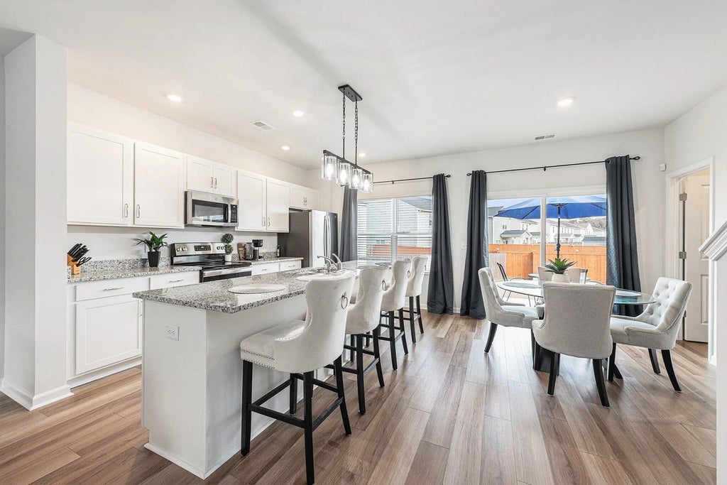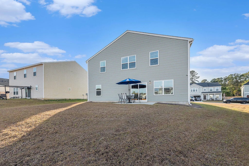 0.50 This stunning home located in the Petterson Meadows community on the outer skirts of Cane Bay. Minutes from I 26, Nexton, and the Cane Bay shopping area, offers both convenience and natural beauty with ponds, woods, and wetlands surrounding the neighborhood. Open floor plan with abundant natural light -- perfect for entertaining and everyday living. Spacious backyard with patio ideal for outdoor dining, relaxing, or hosting gatherings. Main floor: luxury vinyl plank flooring, white cabinets, granite countertops, dining area, kitchen island with chandelier, and a versatile bedroom/office plus half bath. Upstairs: 4 bedrooms including a primary suite with a large walk-in closet, garden tub/walk in shower. Loft and laundry room upstairs. Concessions up to $4000 towards closing cost consideredThis home combines modern finishes with a warm, inviting layout all in a community that offers both natural beauty and easy access to shopping, dining, and commuting routes.