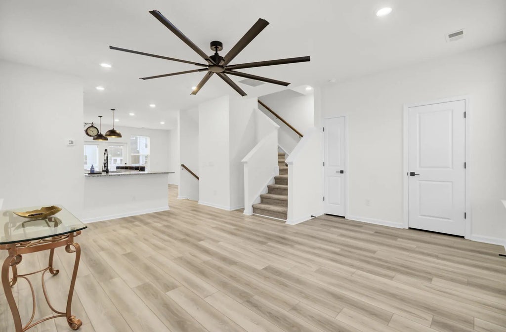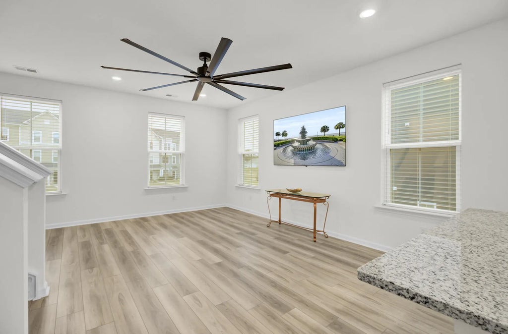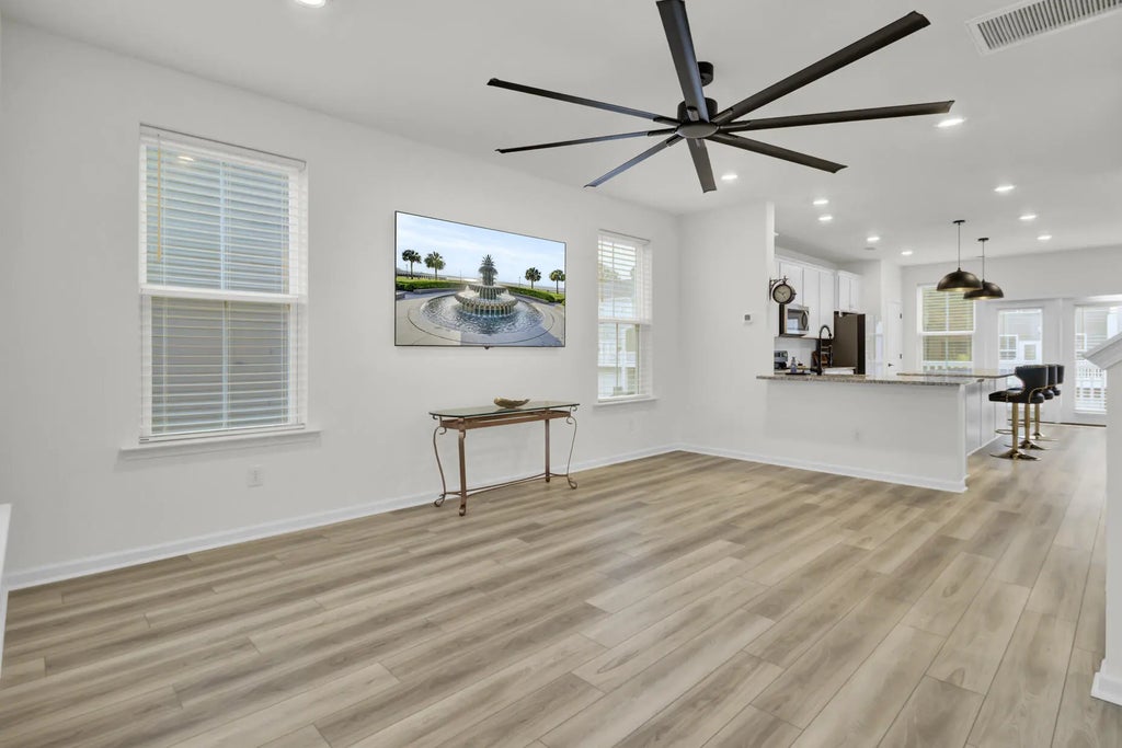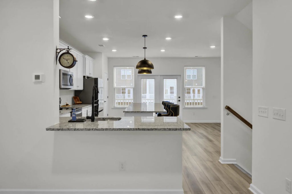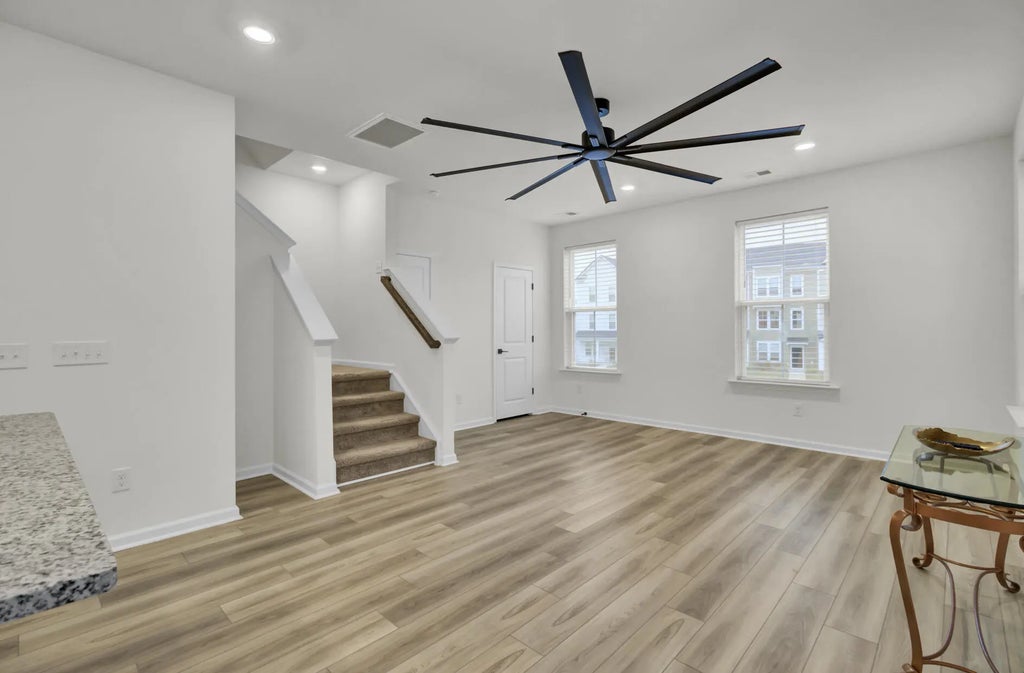 1900 Welcome home to a ready to move in, like-new 3-story townhome filled with modern upgrades and flexible living spaces. The first floor features a private study/bonus room with a full bathroom and access to the garage, which is equipped with a Della mini-split systema''perfect for a home gym or theater setup. A 55'' Samsung TV is already mounted and included. The garage also comes with a brand-new, in-box side-mount garage door opener for improved ceiling clearance, perfect for larger vehicles.The second floor offers an updated kitchen with LVP flooring, granite countertops, modern fixtures, and a Samsung white glass-front refrigerator. The bright, open living area includes a huge ceiling fan, two mounted 77'' Samsung TVs, and access to a balcony with peaceful lake and community pool view. All windows are ceramic tinted to help improve energy efficiency and reduce electric costs. The third floor includes two secondary bedrooms, an updated hall bathroom, a laundry room with a brand-new Samsung top-load washer and dryer, and a spacious primary suite. The primary bedroom offers a large walk-in closet, a huge ceiling fan, and a fully updated bathroom with an oversized stand-up shower. Community amenities include a pool, playground, dog park, fire pit area, and a dock with gazebo for fishing and relaxation. Conveniently located near shopping, dining, and everyday essentials.