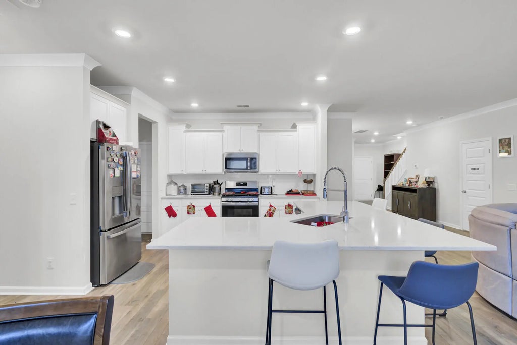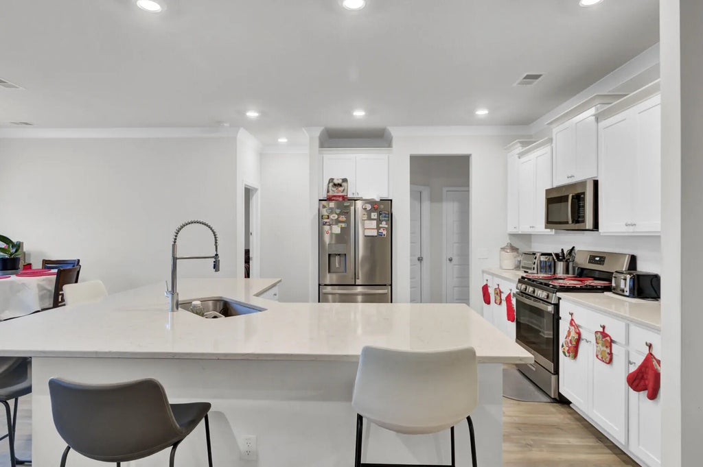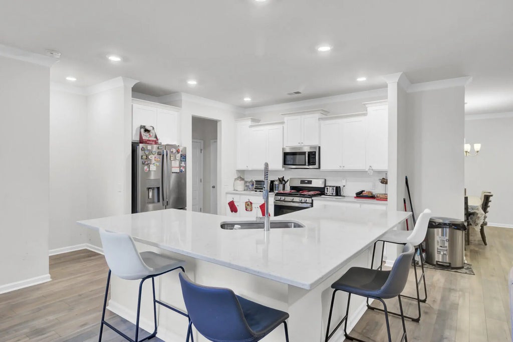 0.13 Impressive 5-Bedroom Home with Main-Floor Suite and Pond View! Why wait for new construction? This spacious 5-bedroom, 3.5-bath home offers the feel of a brand-new build, PRICED TO SELL and packed with upgrades. The main level features a mother-in-law suite, along with an open-concept living area perfect for gathering and entertaining.The modern kitchen stands out with its oversized island, granite countertops, stainless steel appliances, and a separate pantry for extra storage. You'll also find laminate flooring throughout the first floor, plus a dedicated office, and formal dining room.Upstairs are four generously sized bedrooms, providing plenty of space for family or friends as well as a separate laundry room. Enjoy peaceful mornings or relaxing evenings on the screened porch overlooking the pond. A 2-car garage completes this must-see home. Take advantage of this rare opportunity to purchase a large home for well under market value. Schedule your showing now!